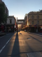 One of the great things about being in Melbourne os that the sun sets much later and much slower, so the chances of taking cool photos in the streets and laneways are much better than the fast twilight of Brisbane. Here’s one in Little Bourke Street…