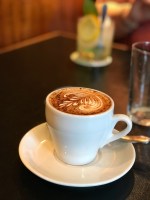 As lunchtime approached, we thought we would grab a coffee at one of the corner cafes a street or two back from Brunswick St. We chose a place I ordered a coffee, but when Debbie ordered her normal Chai Latte on Almond milk, we were informed that we were in an Espresso and Wine Bar, so that would not be available. Deb had a lemonade instead. In their defence, the coffee was good.