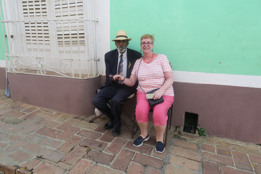 I’ll leave you with one last picture of Deb getting out and mixing it with the locals. This particular gentlemen is reputedly quite famous in Cuba for attending all the Cuba baseball games and getting himself on camera.