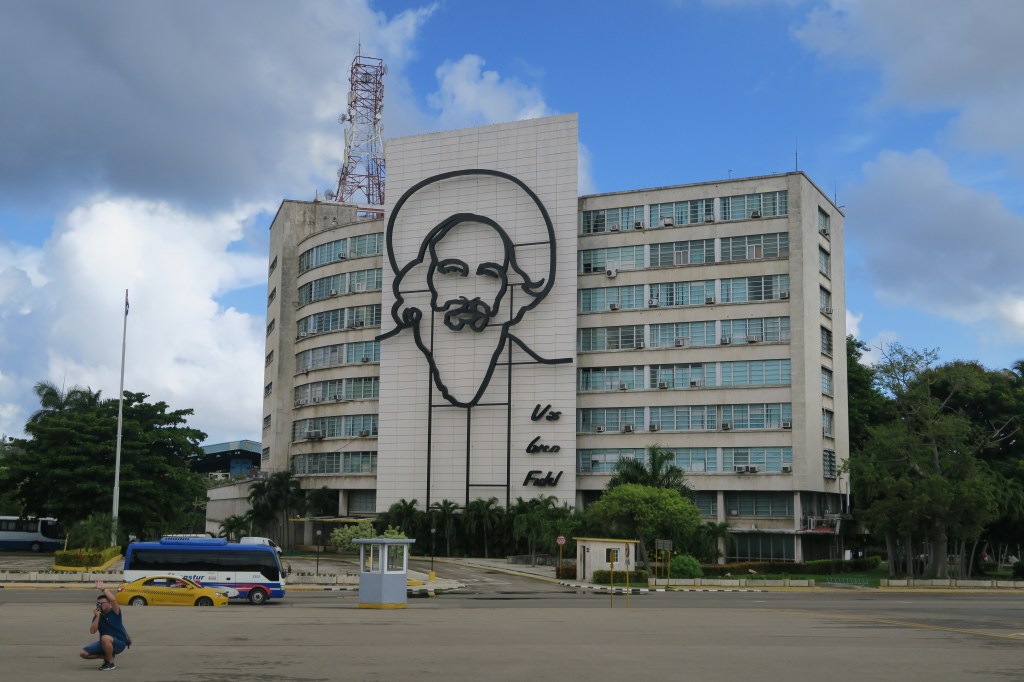 We then drove through lots of the different neighbourhoods in Havana. Again there were some quite opulent parts of Havana, prior to the revolution and the subsequent nationalisation of property. Eventually, we ended up at the Revolutionary Square where Fidel Castro delivered many speeches. There are also monuments to Che Guevara and Camilo Cienfuegos. These three are seen as the prime movers of the revolution. Central to the square is also a monument to Jose Marti who is everywhere as the initiator of independence from Spanish rule.