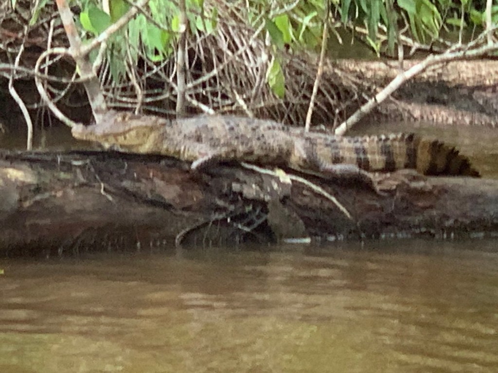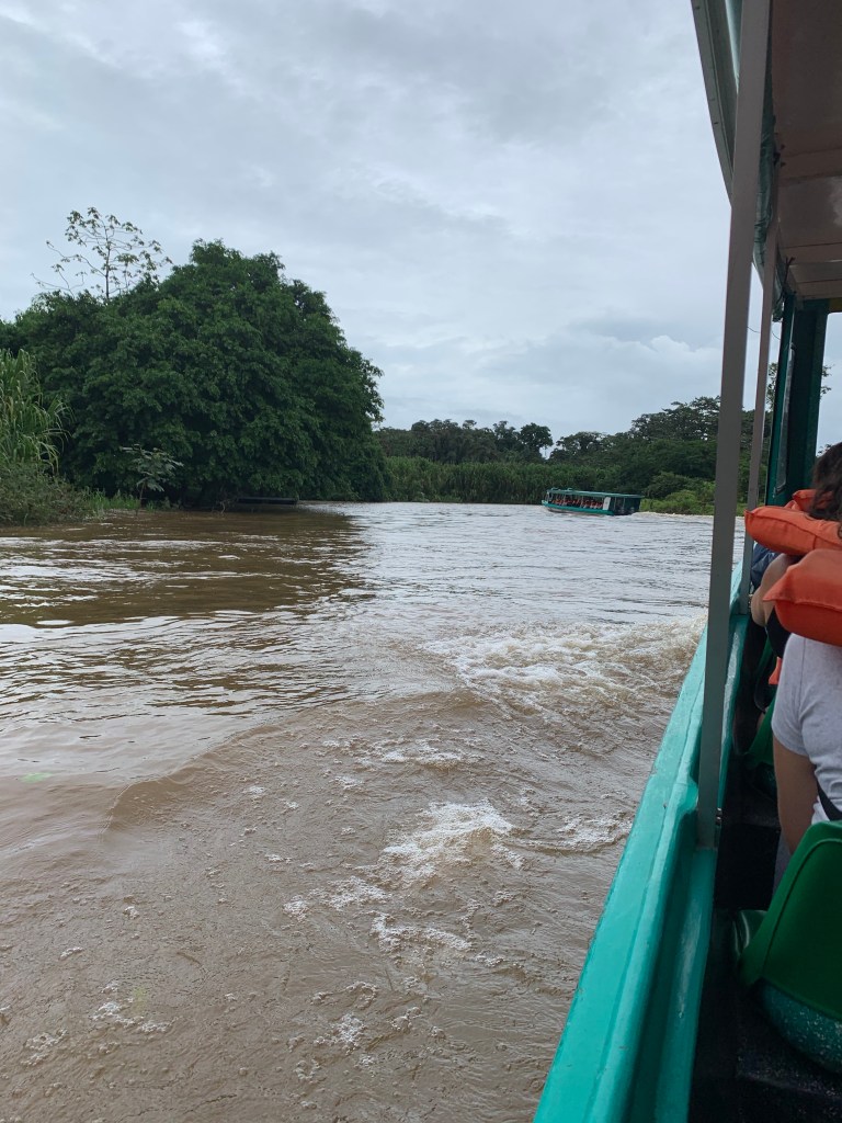 The lodges in the National Park are not accessible by road, so all the people on the buses have to get transferred to boats. It is quite miraculous how this all works, as you collect your bag from the bus and then put it on a boat. You then get on a different boat, but somehow it all ends up in the right place. There was lots of water flowing down the river from recent rain and the boats are quite old. The bigger ones have twin 115 HP outboards on the back, which they would need all of that power for the return trip. It is about 16 km down river to the lodge and there are are many boats on the water. I do have to say that they do seem to have worked out the logistics pretty well.