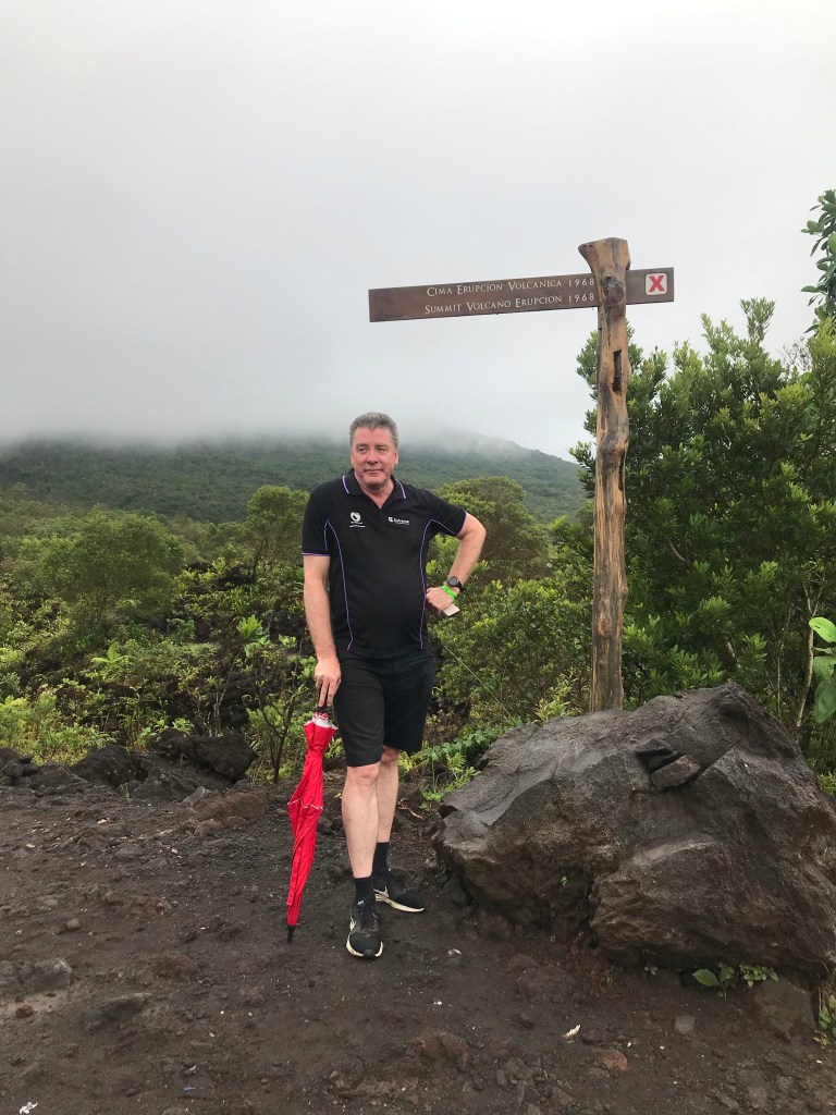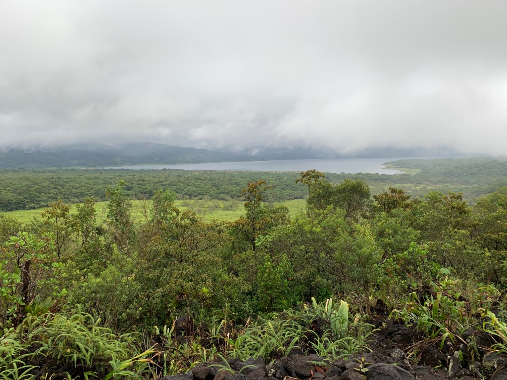 After lunch we went on another tour where we walked part way up the Arenal volcano through the lava fields from the last big eruption in 1968. It is mainly loose stony basalt which has new growth trees and grasses on it, but there is no forest here. It is mainly occupied by birds and small animals, like bats because the rainforest has not yet regenerated in 50 years. There were some good views of the Arenal Lake, which was built to provide Hydro power and currently provides about 30% of Costa Rica’s power needs. The clouds did not lift for any views of the Volcano, but that only happens about 60 days per year… so we can count ourselves lucky for the couple of shots we got yesterday.