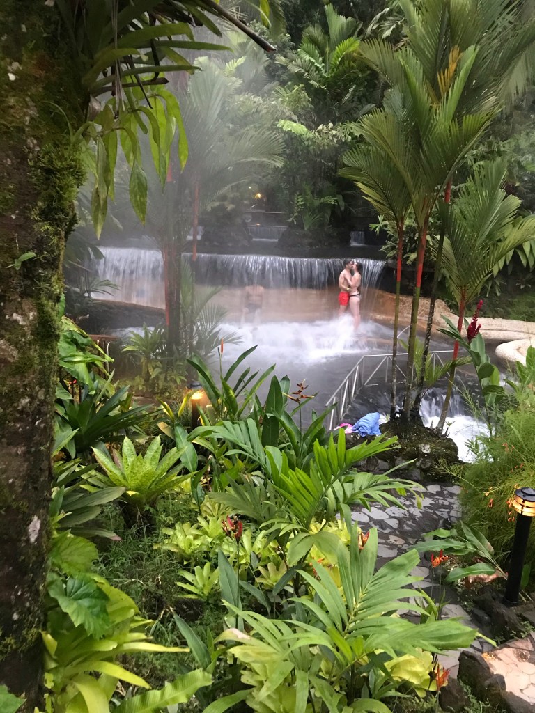 Following the walk, we needed to relax and the tour dropped us off at the Tabacon Thermal Springs. This was an amazing collection of hot pools of different depths and temperatures and cascades you could even stand under. The water comes directly from springs under the Arenal Volcano and was by far the most interesting hot pool experience I have had… even though we’ve done hot pools recently in Taiwan and New Zealand (Hanmer Springs). This place a doubly amazing with the number of beautiful people adding to the atmosphere… how romantic!