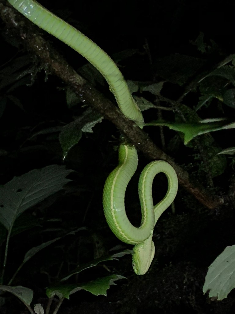 We settled into the hotel which is a unique property built on the side of a hill. It has all the usual things, except a working fridge and air-conditioning. The rooms are large and functional. Tonight’s activity was a night walk followed by dinner at the restaurant. The night walk was led by a local guide who knew all the good places to find all sorts of insects and other creatures in the night. He was knowledgeable and we were amazed by the number of things he was able to show us. Incidentally, the snake is viper and is a poisonous one.