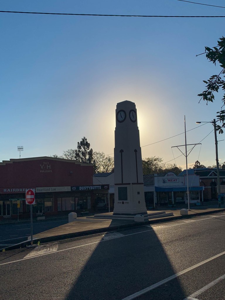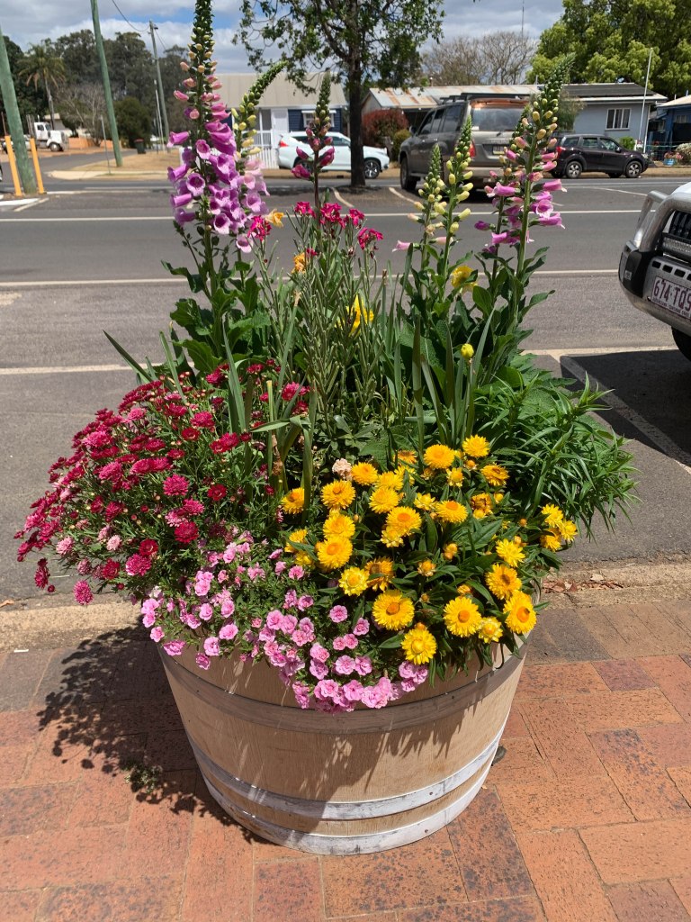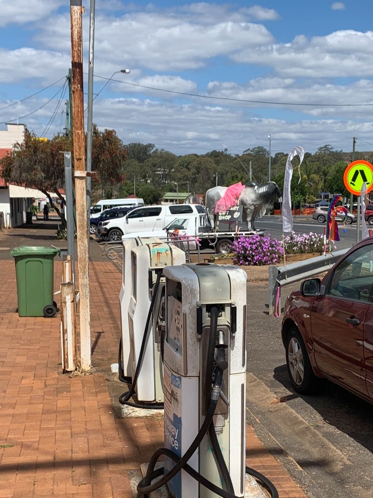 Some of the little towns along the road are really trying hard to show their best in this time when we can’t travel interstate. The town of Blackbutt has lots of flowers in tubs adorning the footpaths. Yarraman has embraced the ‘pink’ breast cancer awareness message. I had not previously seen a cow in tutu on the back of a truck. We stopped for lunch in Yarraman, but the options were a bit thin, so it was a beer at the pub, a pie at the bakery and gelato at the coffee shop.