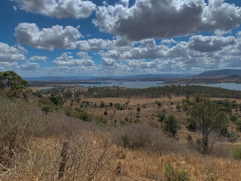 So we are heading up through the South Burnett Region and will spend a few days on the beach on the way home. So today, we left home once we got mobile this morning, not feeling pressured by airline schedules and other predetermined things. We had breakfast at Spokes Cafe in Samford to get started and then took the Mt Glorious road to head west. We stopped at a lookout that provides great views of Lake Wivenhoe, which supplies Brisbane most of it’s drinking water, before driving past Lake Somerset.