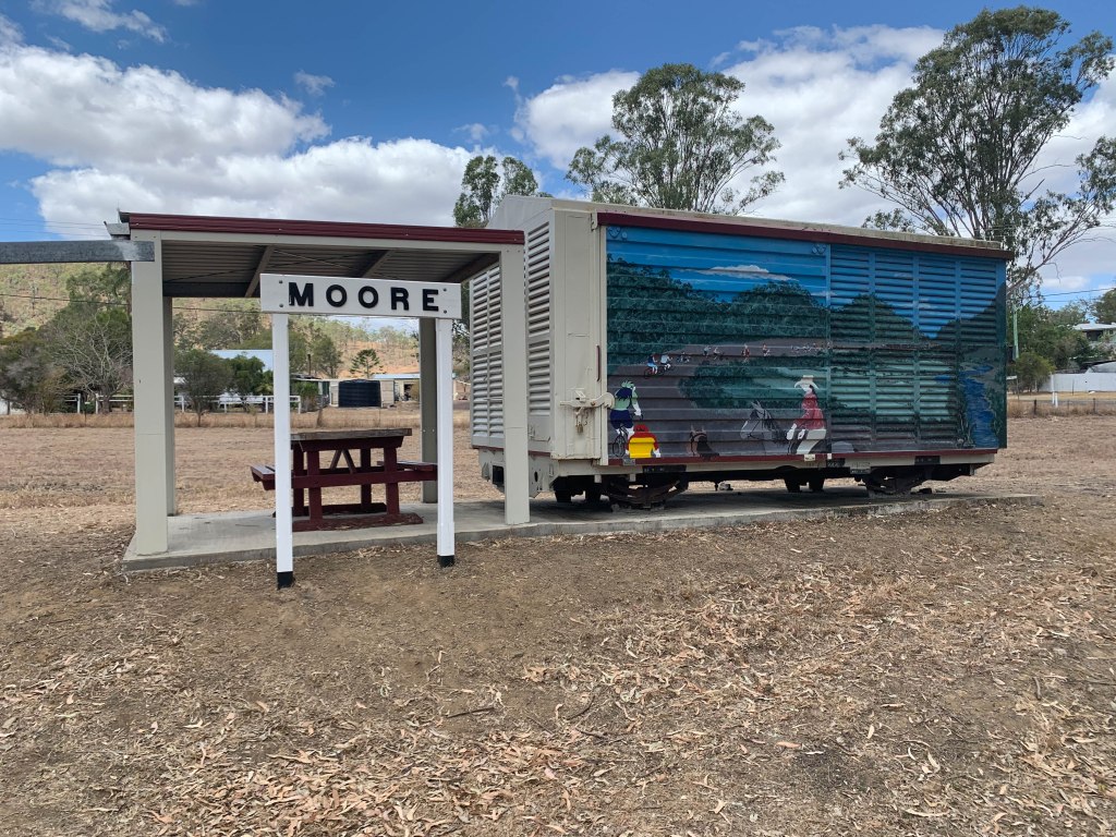 From Kilcoy we continue up the highway, stopping for another gallery visit in an old church in the town of Moore. It’s a pretty small place these days, but was once an important part of the logging industry. The old train lines in this area have all been converted to bike trails.