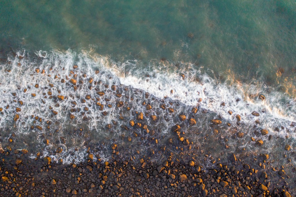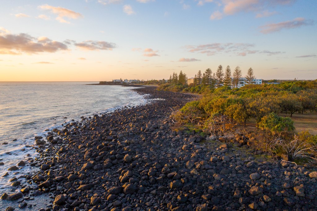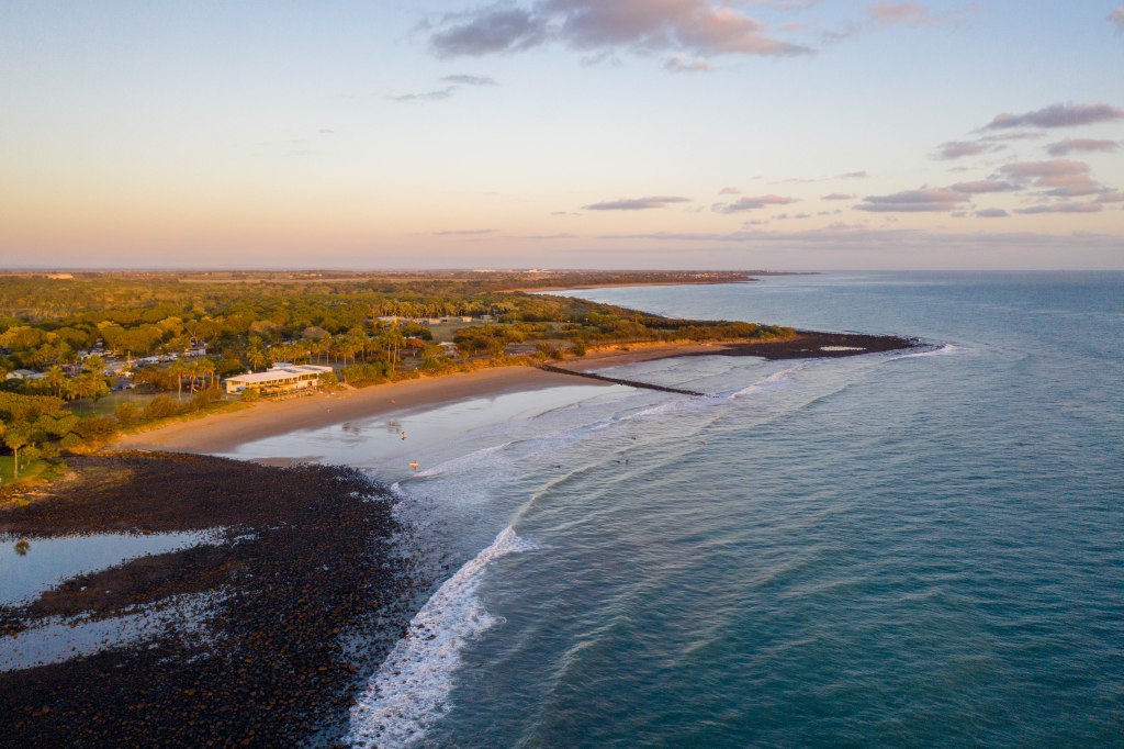 I took some more photos north towards Mon Repos and south along Neilsons Beach, Bargara as well as a ‘top down’ over the rocks.
