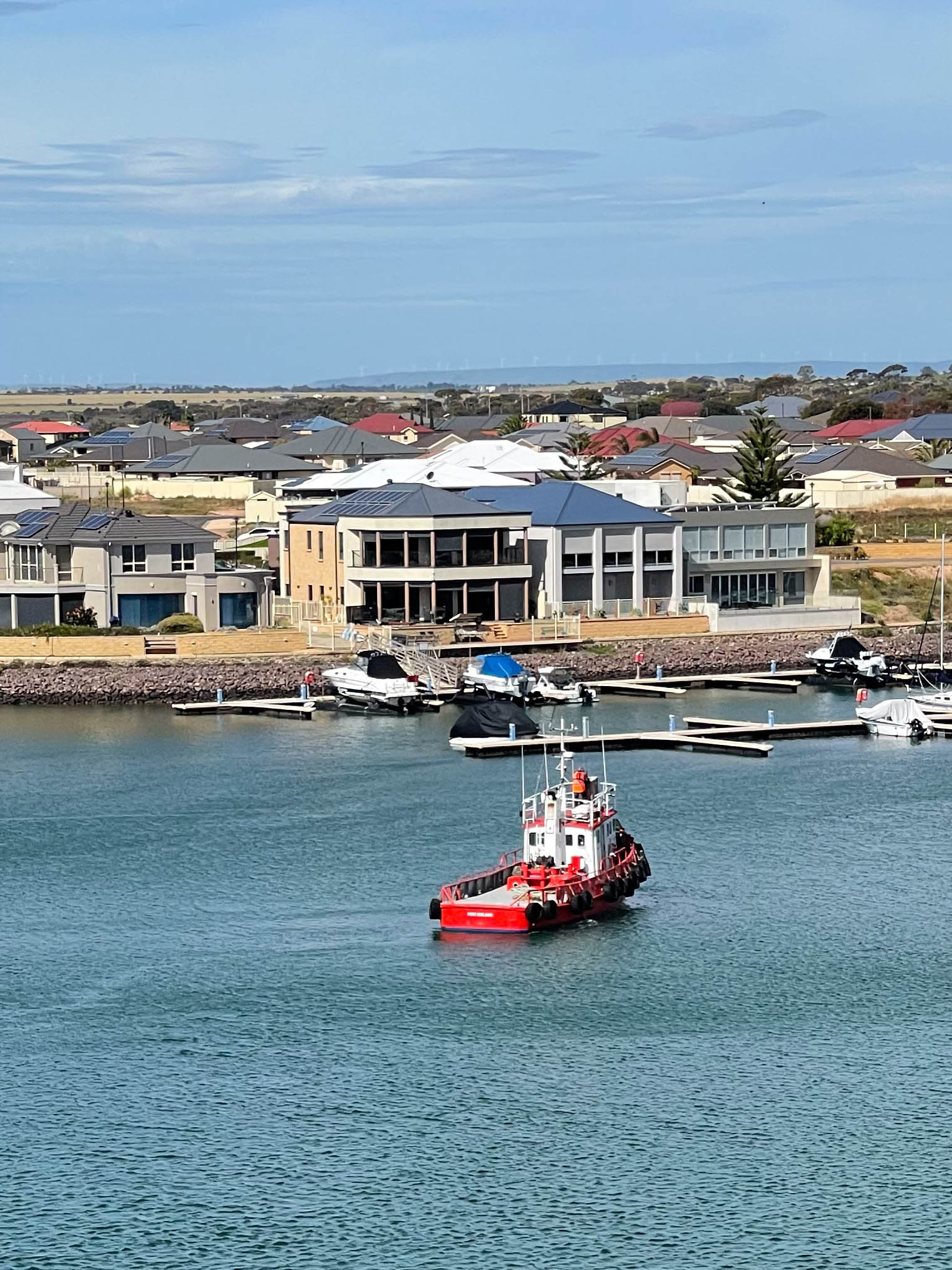 Curiously, we are staying in a new hotel amongst a lot of new development of tourist / resort style houses on canals. Large houses with large boats seem to be standard. All of this situated right next to the grain terminal. I guess time will tell if the push to create a ‘Gold Coast’ 160 km from Adelaide will pay dividends. We did however see a nice sunset out of the apartment window tonight.