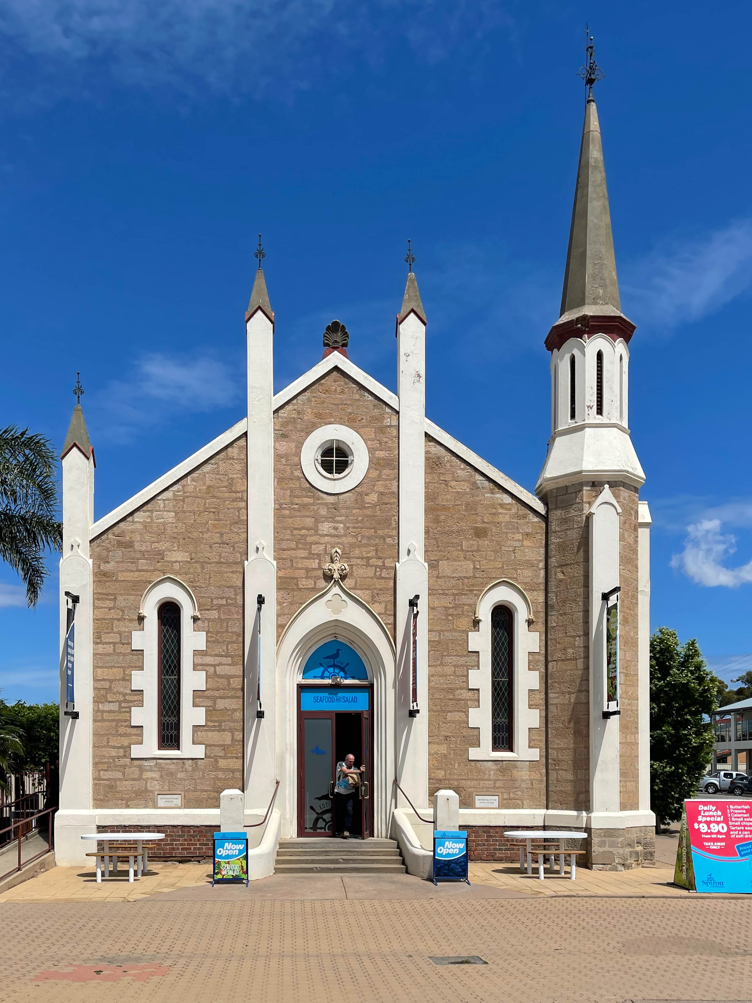 It had been over 25 years since I had been to Port Pirie a town not only famous for being a permanent Top 10 listing in ‘Shit Towns of Australia’, but also a a major grain port and home to a metals smelting facility. This facility was upgraded with a government grant to reduce emissions, but the blood lead levels in residents are still elevated. It was originally run by BHP because there was a direct rail connection from Port Pirie to Broken Hill. As usual Deb did her search for churches, but mainly found churches that had been converted to cafes or fish and chip shops.