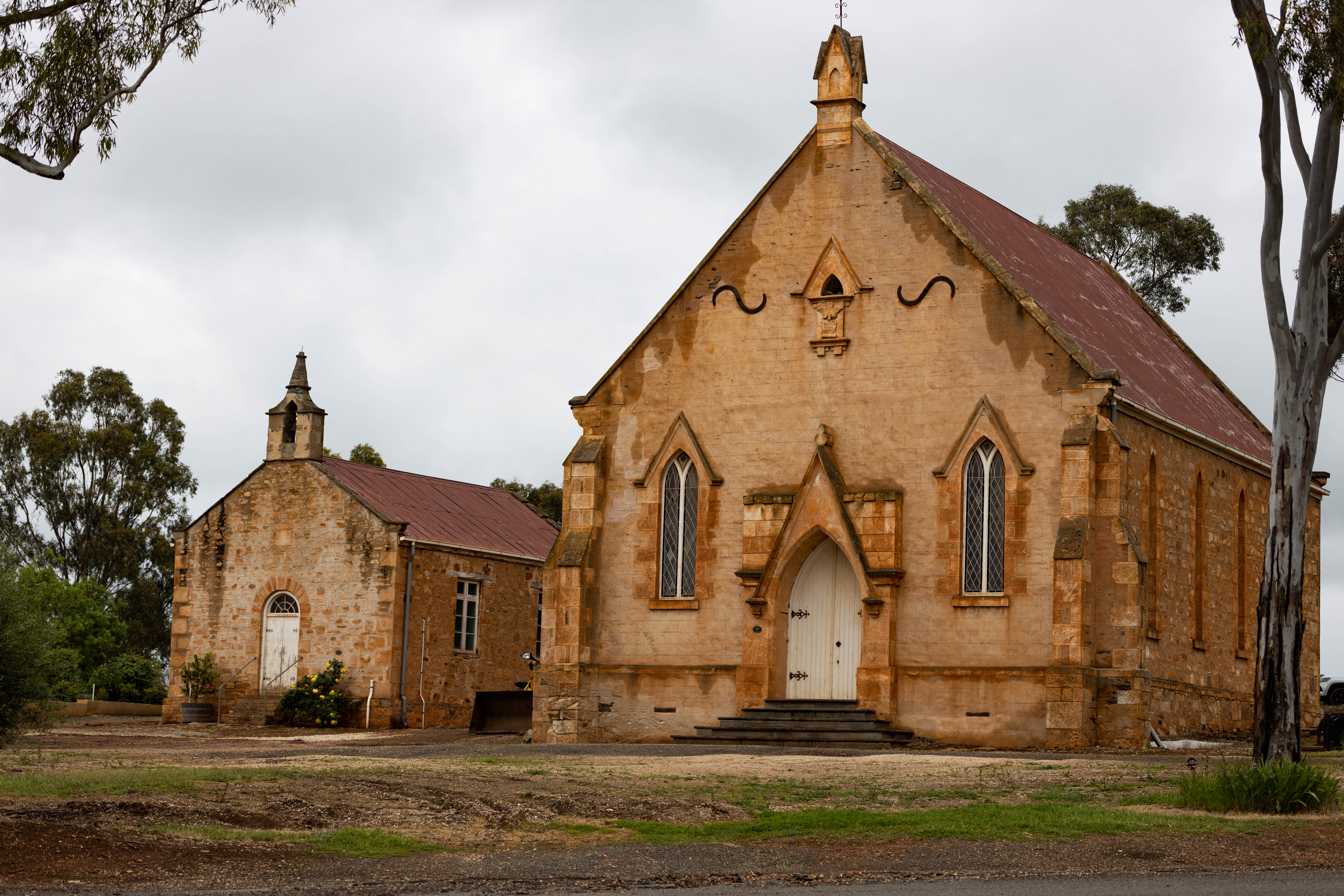 After lunch, we’d decided to take a rest from the wineries and head to the historical town of Mintaro which was established in 1849 as a stopping place for bullock teams carting copper from Burra. It is also the home of Martindale House, the location for the filming of the movie ‘Picnic at Hanging Rock’. Unfortunately we couldn’t get there because of some minor flooding. We’ll try again tomorrow if the rain stops. Today, we were still able to find a few other photography targets including the oldest Jesuit Church in Australia.