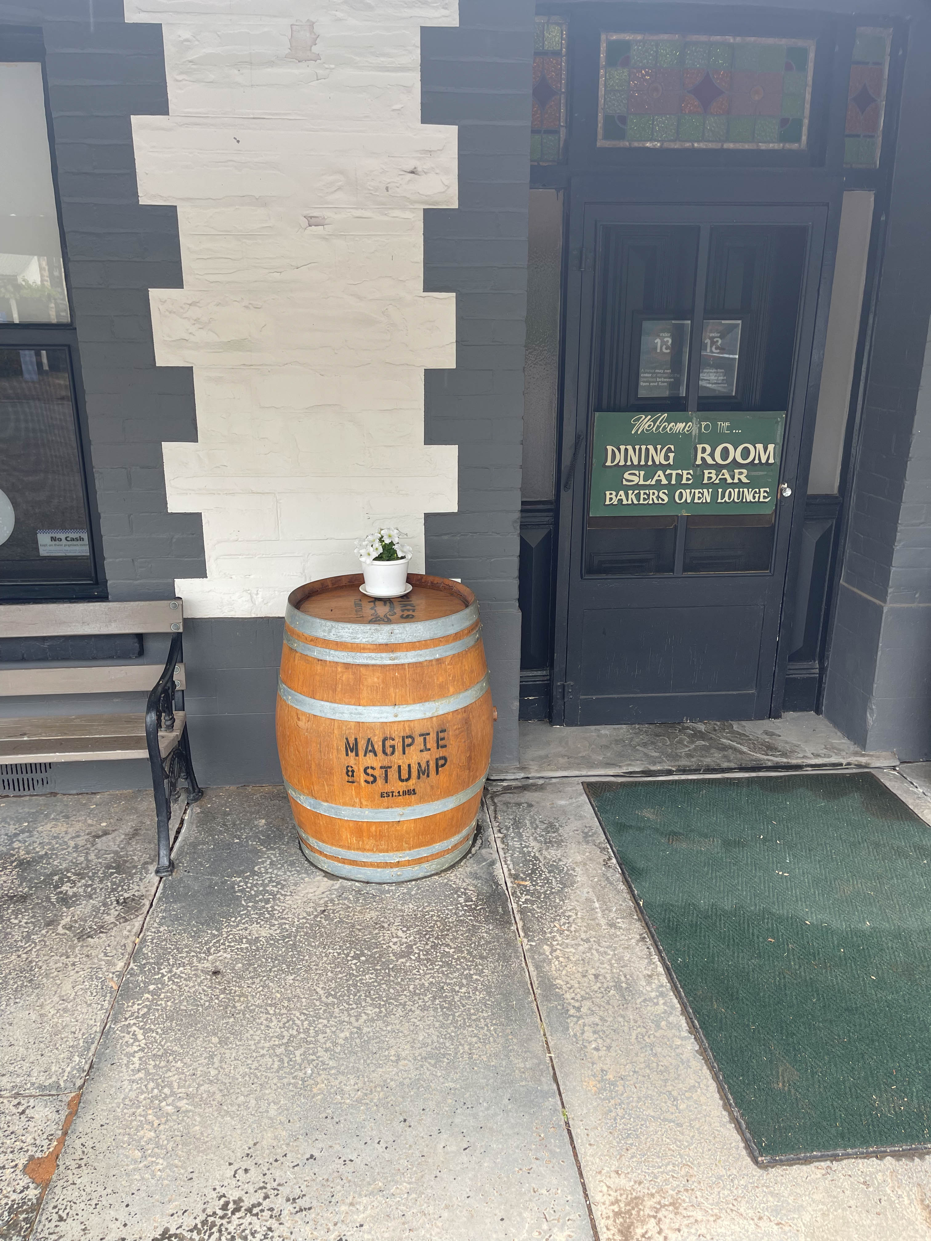 Our research had revealed that there was very little open in the way of good food on a Sunday night in Clare, so we decided that our big meal of the day would be at the Sevenhill Hotel. This hotel recently won an award for the best hotel food in regional South Australia and had been recommended by a number of people at the wineries. Deb had a kangaroo fillet, I had steak (surprisingly with pepper sauce). Some say it is good to be predictable.