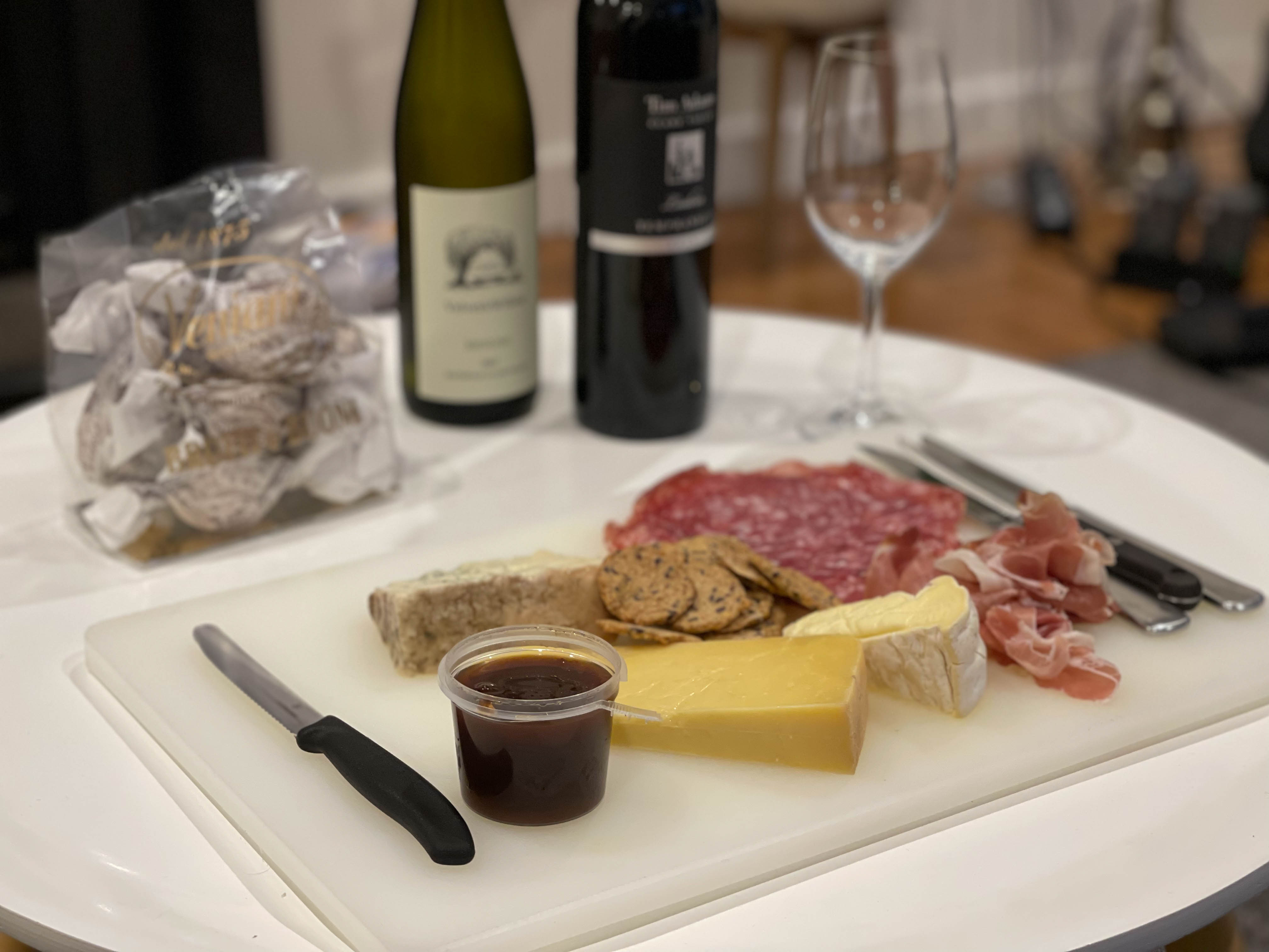Tonight’s dinner is a platter inside the apartment – just as well because it’s not yet stopped raining.