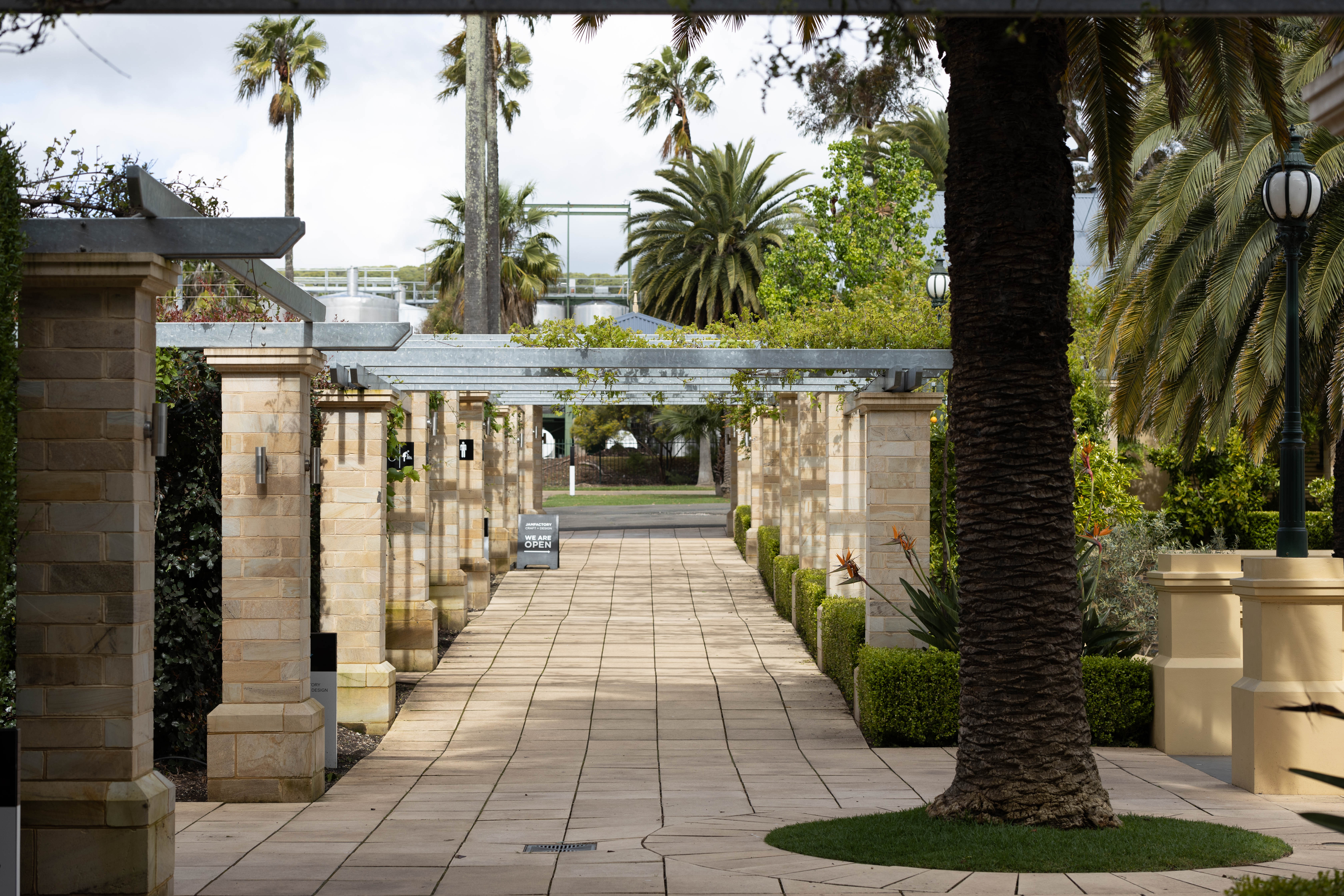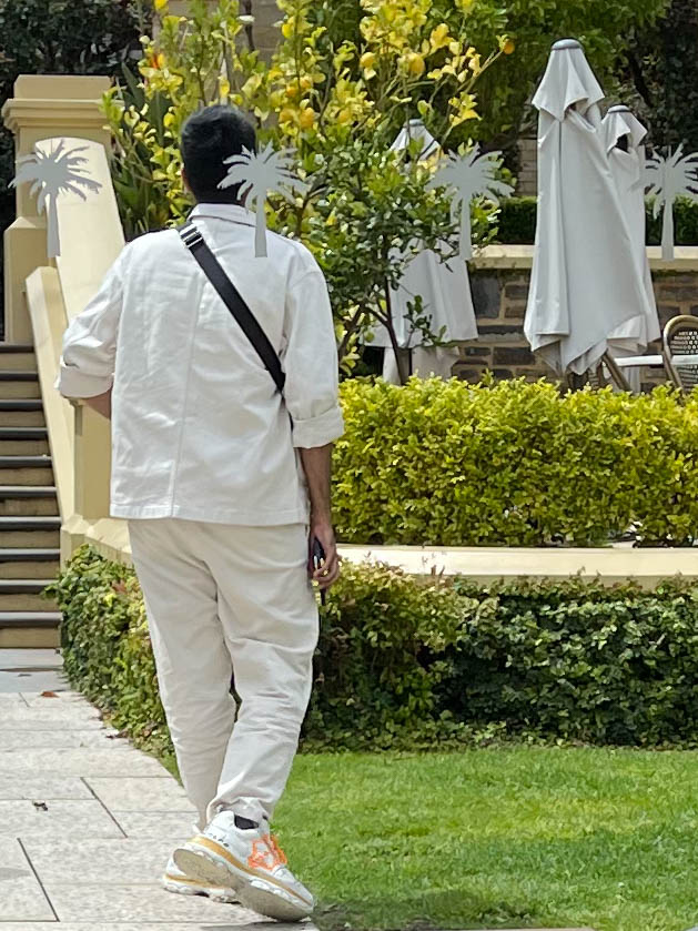 Fino, a restaurant in The Seppeltsfield Winery was the venue for today’s lunch. This winery is a sprawling site that pays homage to it’s history well. Wine was first made here in the 1850s when Joseph Seppelt acquired 100 acres of land to establish his wine business. The new section where the restaurant had more of a 1990s Gold Coast feel and the public toilets dated back beyond the redevelopment, so were a little on the nose. More importantly we were free to watch people and there were many different people to watch as the busloads and private tours came through. See the man with the biggest white shoes I’ve ever seen.