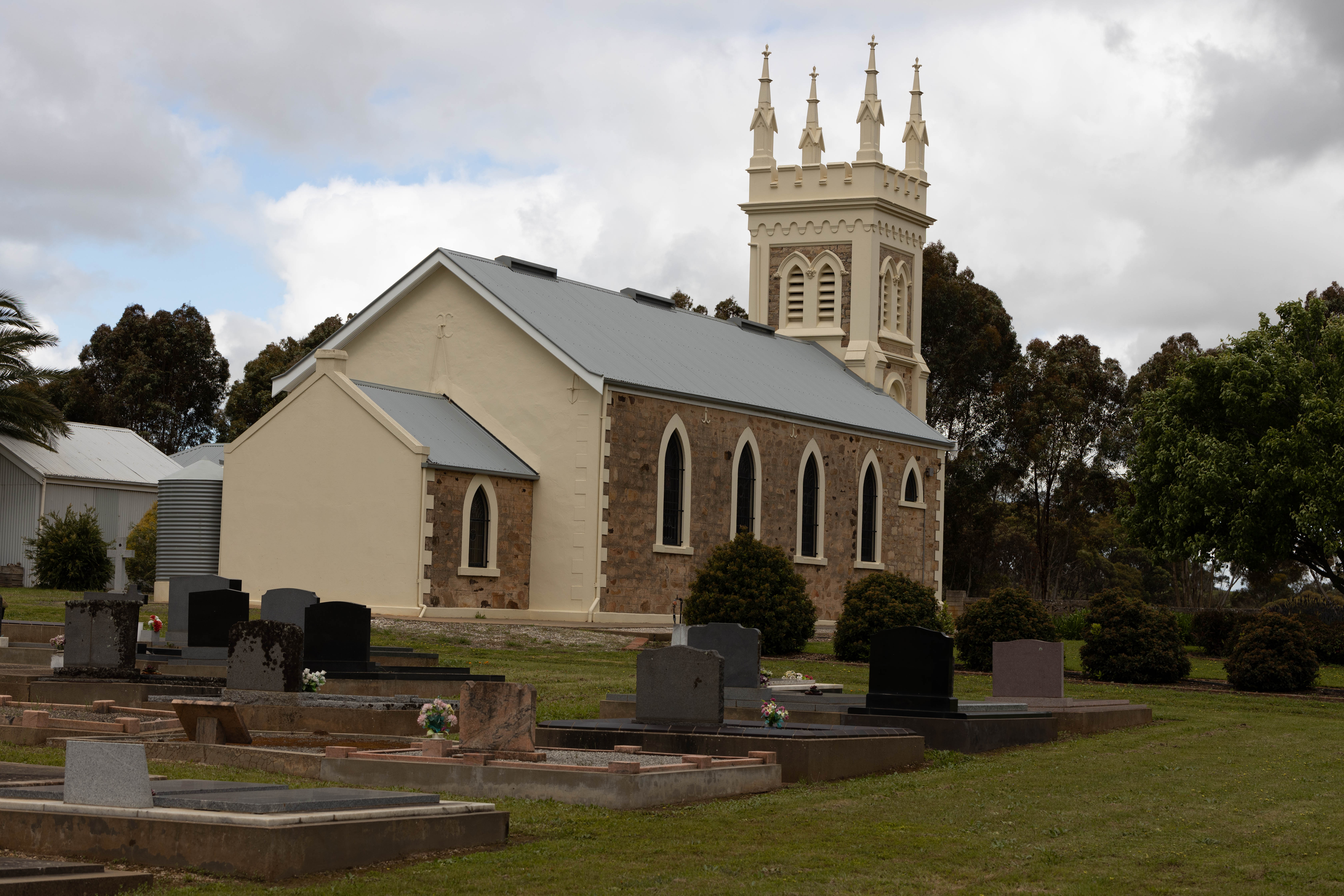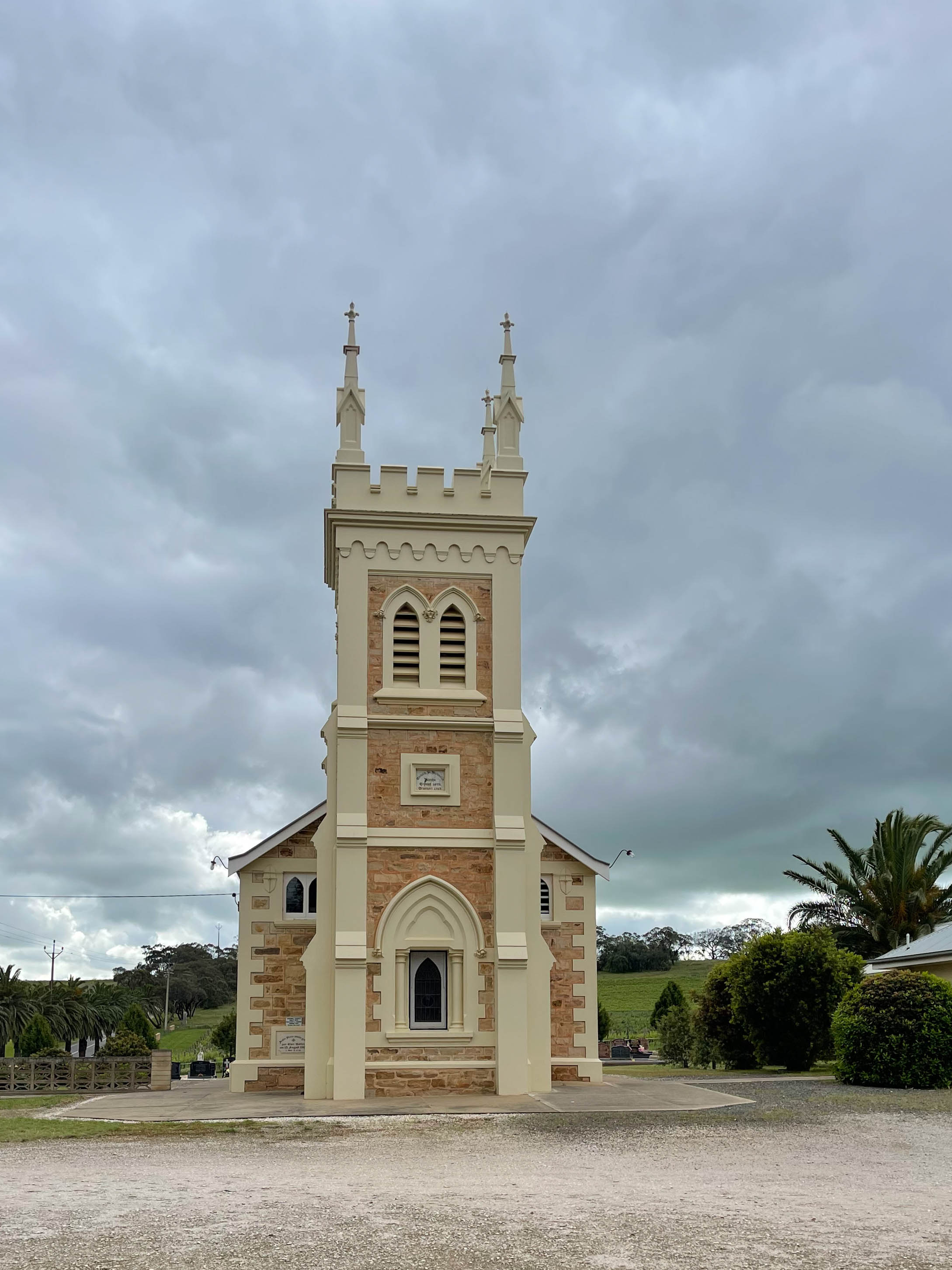 I think I’m beginning to remember one of the reasons I was happy to move back to Brisbane in 1998 and it had a bit to do with the weather. We woke up to another rainy day as the showers kept blowing through. As it is our last full day in the Barossa today, we had a bit of a list of things to get through. The first was to drive to Nuriootpa for the now obligatory church photos.