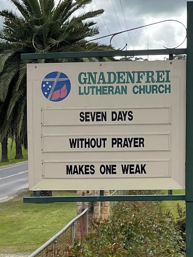 Nuriootpa is the third and largest of the major towns that make up the Barossa and it seems that it is no stranger to hosting an event, having hosted the Australian Grand Prix in 1950, a visit from the Queen in 1977 and the Tour Down Under bicycle race in 2014. Today though, the only event in town was our visit, which was only noticed by one of the parishioners at the Anglican Church who shared with us that the congregation was now about 30 people because the young people either go to the ‘new style’ churches or don’t go to church at all (like us).