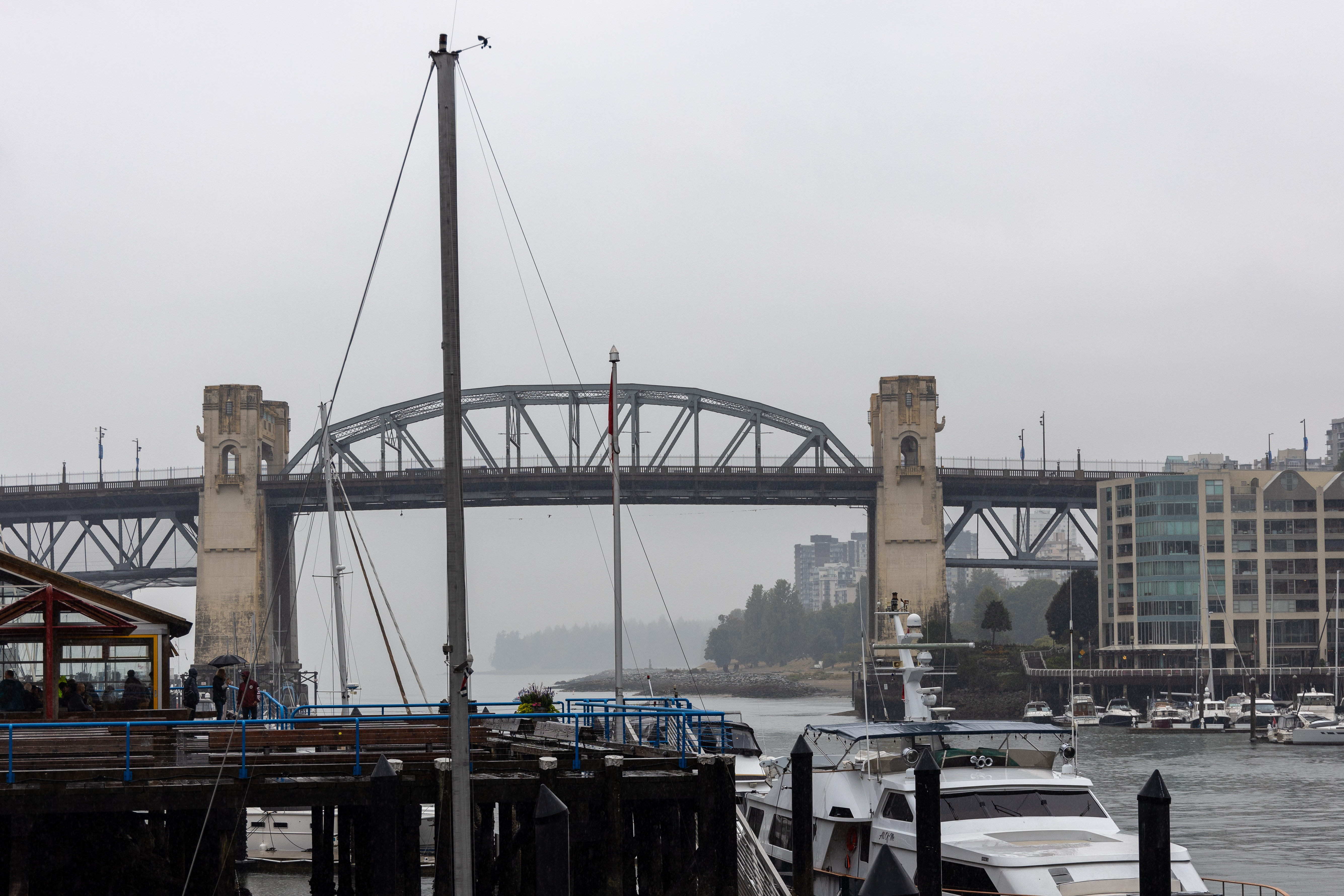 We departed Brisbane at 11:50 on Monday night to Singapore and then to Vancouver… a total of 22 hours flying. We were able to clear customs quickly, but our second bag took over an hour to make it onto the baggage carousel. It’s one thing to paint your suitcases so they can be easily recognised, but another thing entirely to have the baggage handlers put it on the carousel. We cabbed from the airport to the hotel which is in the Vancouver casino precinct. It is very nice, but we were not so sure whether it delivered on all fronts. We paid an extra night so we could shower before having a ‘jetlag day’ of doing something while trying to stay awake. Vancouver was living up to it’s alternate name of ‘Raincouver’. We caught a ferry to Granville Island, primarily to buy some Lee’s Donuts, but also to check out the public markets which are known for their wide selection of fruit, vegatables, seafood, chocolate and baked goods.