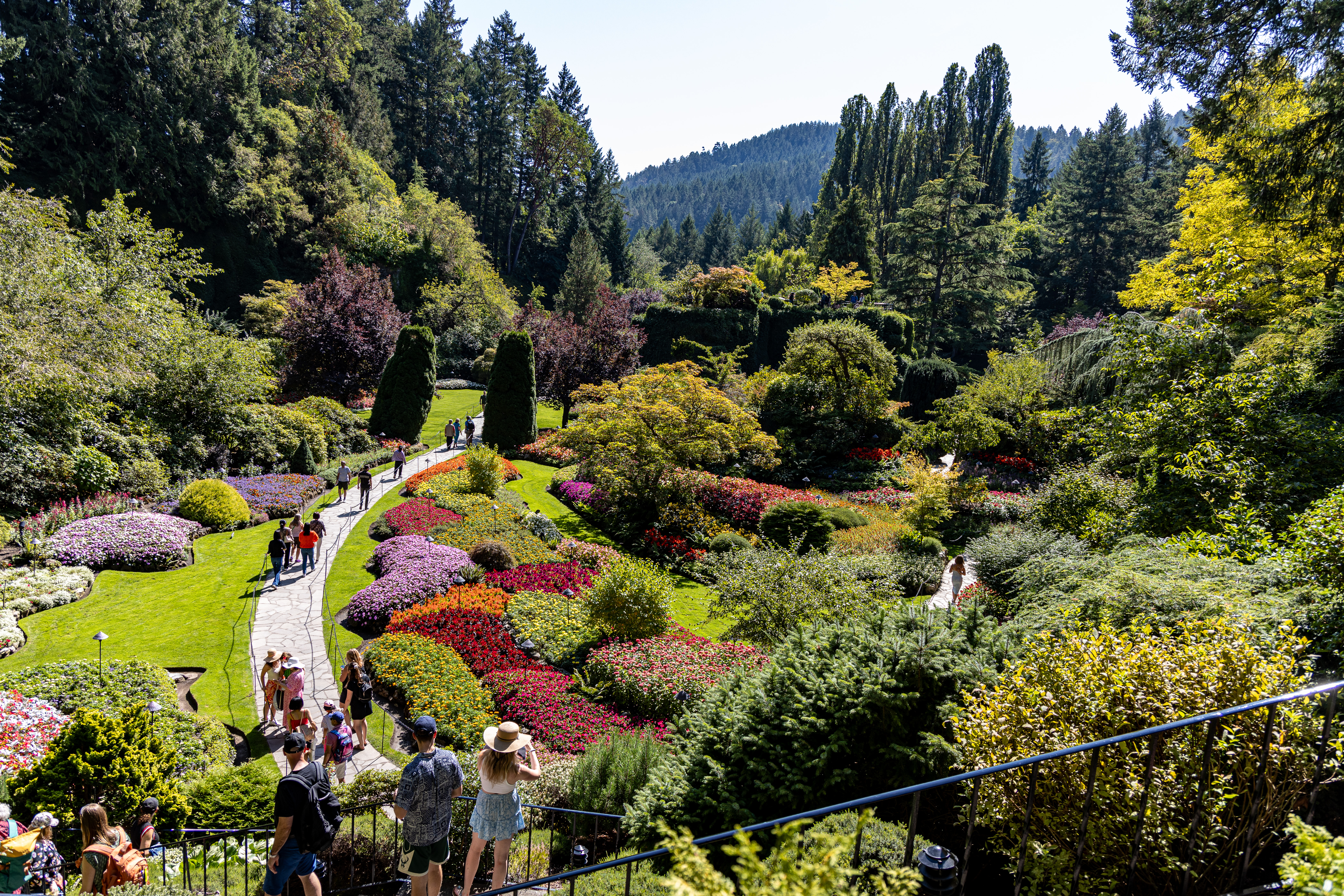 The Butchart family started manufacturing concrete in Ontario in 1888, but moved operations to Vancouver Island in 1904 to exploit the rich limestone deposits on the Saanich Peninsula. In 1907, Isaburo Kishida, a famous garden designer from Yokohama, Japan, came to Victoria to work on another project which became wildly popular. Several prominent citizens, Jennie Butchart among them, commissioned Kishida to build Japanese gardens for their estates. In 1909, when the limestone mine was exhausted, Jennie started to build the gardens as they stand today. These gardens are among the best I’ve seen and although I’m not really a gardener I certainly can appreciate the beauty of this garden. By the numbers … there are 55 acres of gardens, 900 plant varieties, 26 greenhouses and 50 full time gardeners!