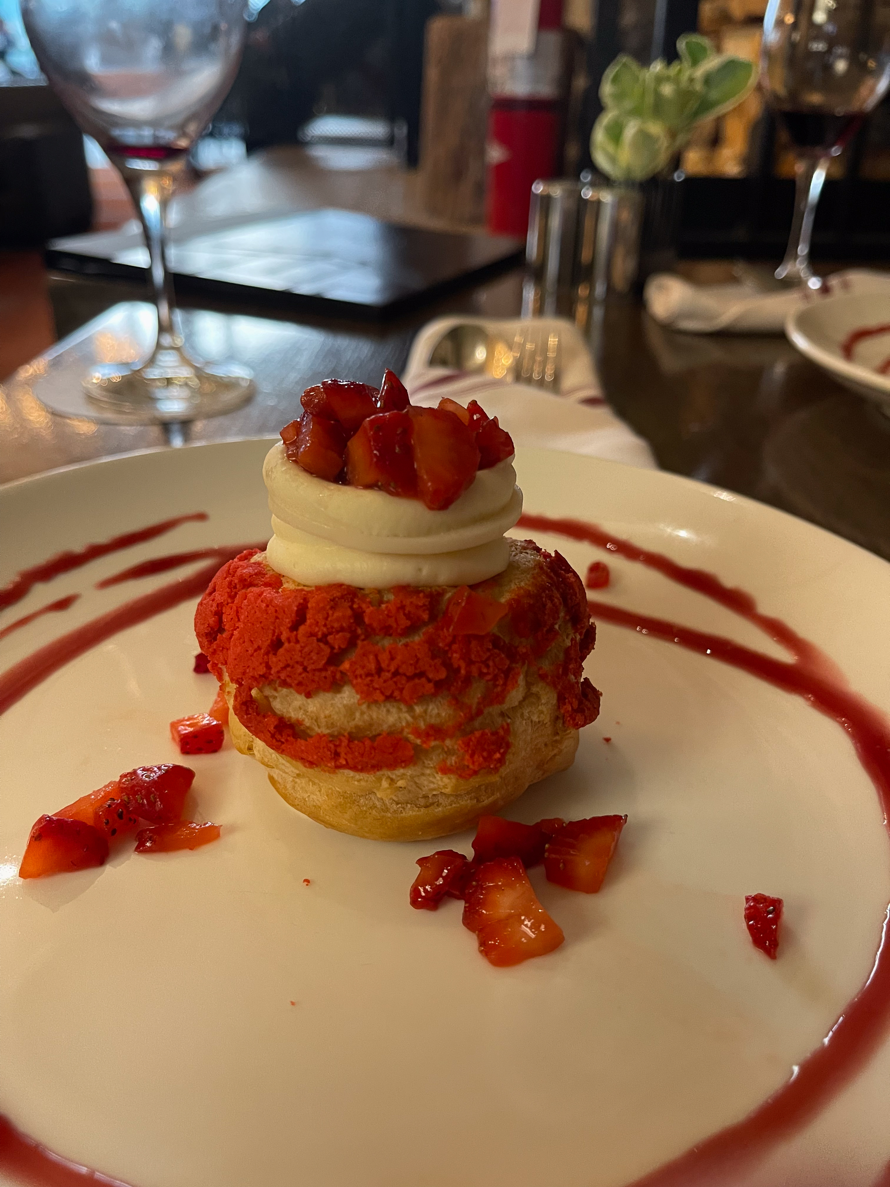 Our accommodation in Jasper is another Fairmont property. It is a bit dated in some ways, but still very nice. Once settled in, we went to the main lobby bar and have a cleansing ale or cider and some dinner of Fish Tacos, Pork Belly and a Profiterole. Deb shared the fish tacos and had a lobster roll for her main. The food was good and the people watching even better!