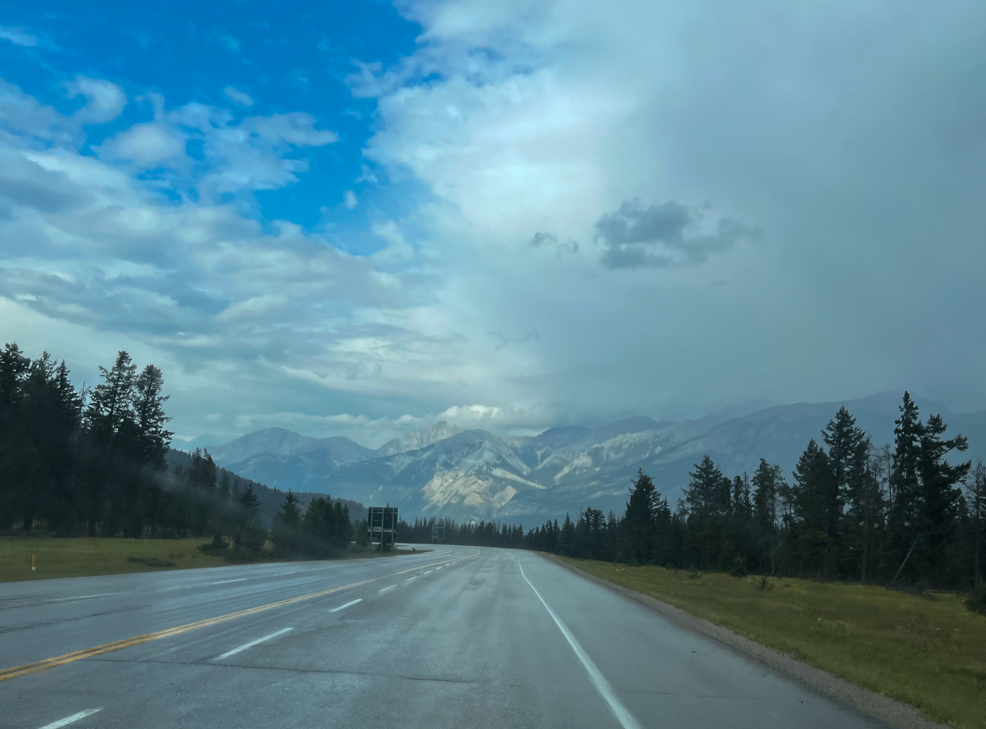 Today was always going to be about driving. The plan was to drive from Sun Peaks to Jasper, which is about 450 kms. All the youtube videos we watched suggested that things would be a little quieter in Jasper, so I’d thought the drive might be a bit quieter. As it turned out, I was wrong and it was busy pretty much from end-to-end and there was some pretty heavy rain at times. Added to that was the loss of an hour today because we crossed into Alberta and changed time zones. One of the observations we made was that it is pretty easy to get out of town in Australia and have the road to yourself. It is definitely much harder to do that in Canada!