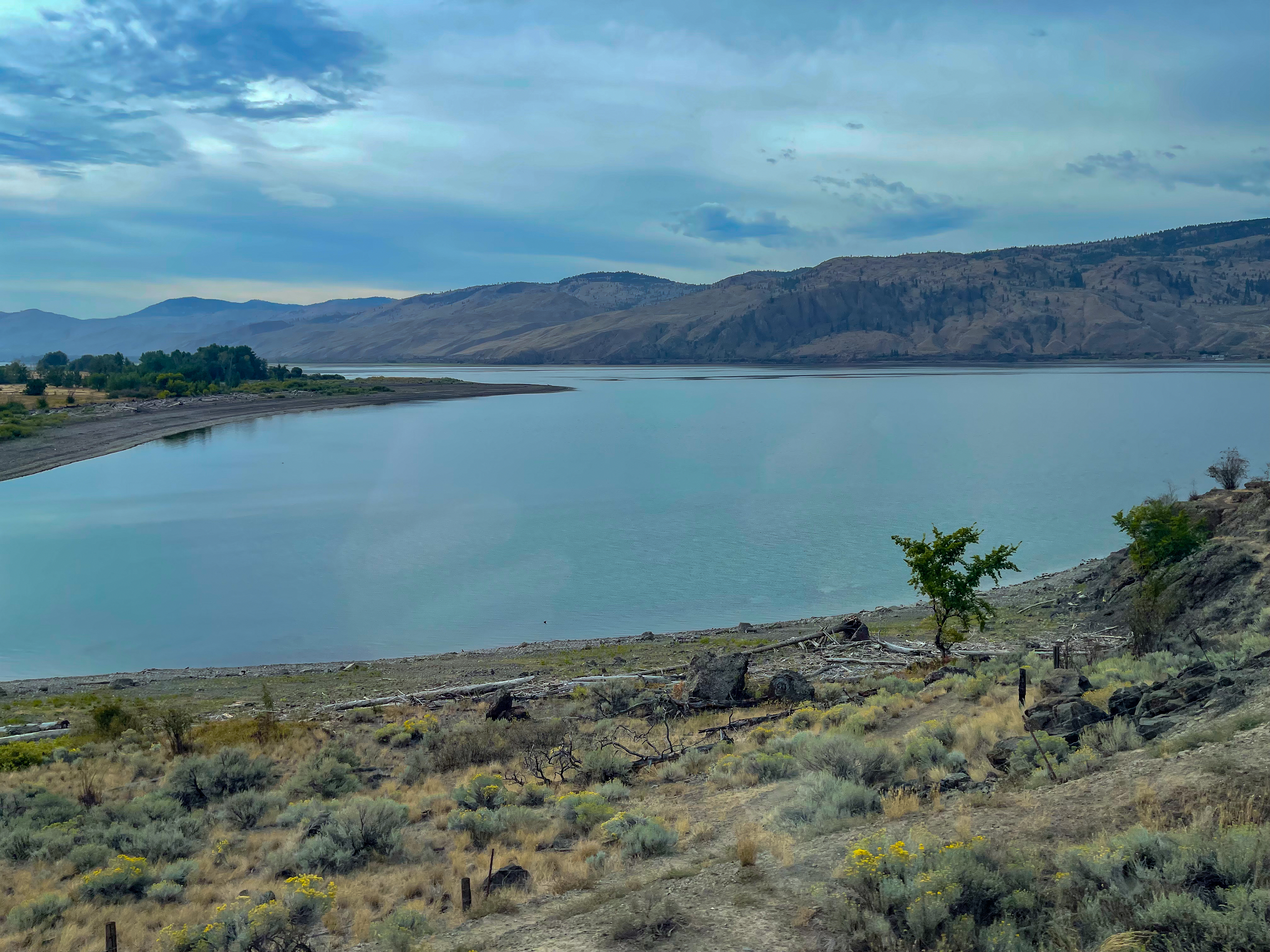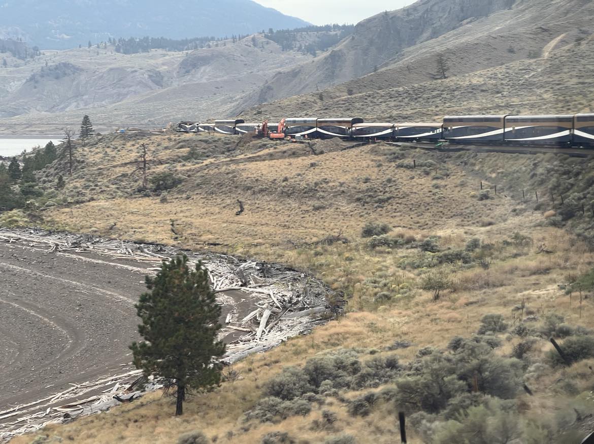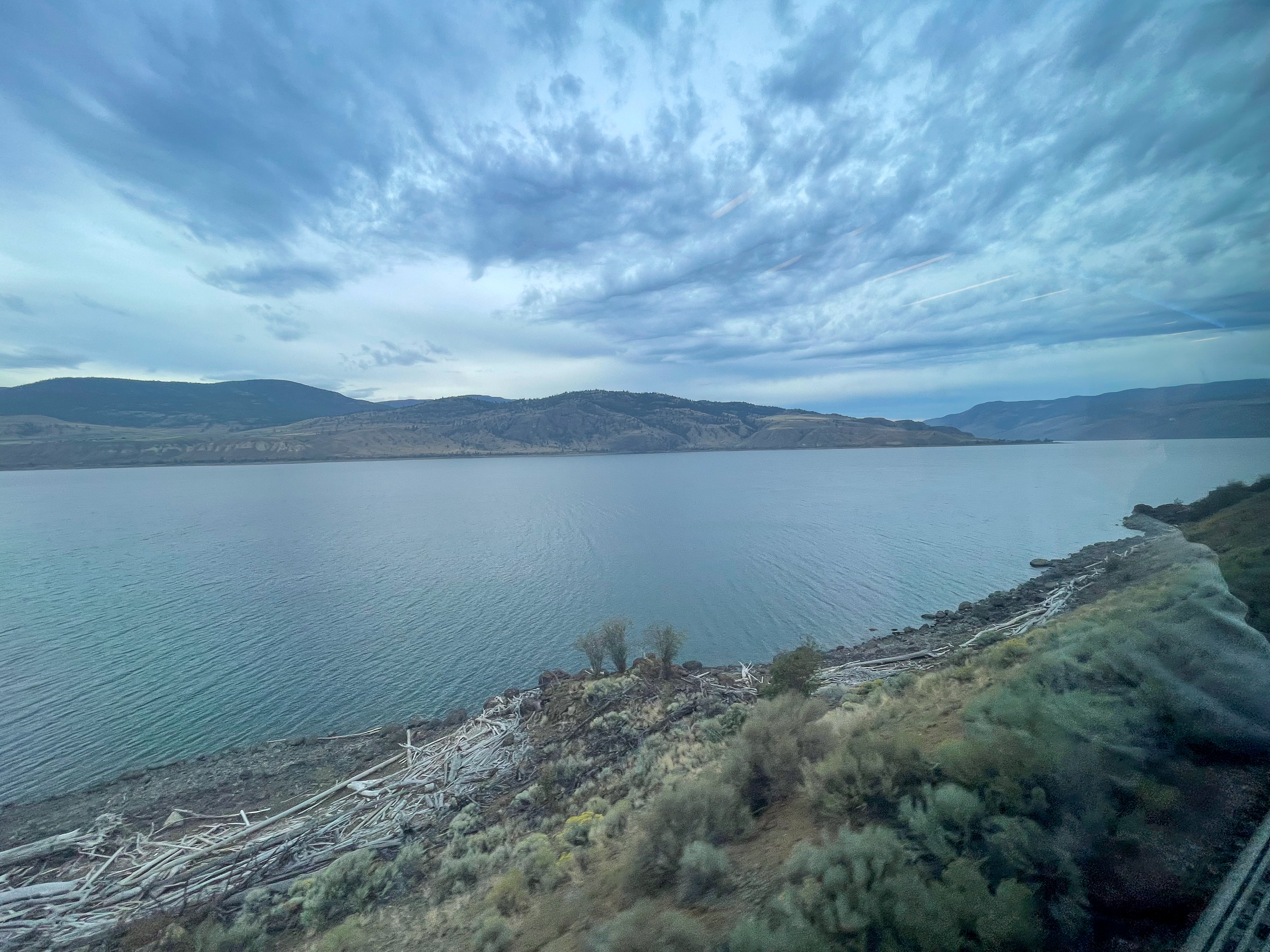 We were taken from the hotel to the rail yard by the same bus driver who delivered us last night. His name was Jeff and he had a resemblance to Jeff Bridges (Big Lebowski style) with shoulder length hair and a similarly gravelly voice. Throughout the 20 minute trip, he imparted some interesting information about Kamloops, the most striking of which is that the summer temperatures frequently reach 40 degrees and the winter temperatures can dip as low as -20 degrees. Apart from being the place where the major highways and railways meet, Kamloops is promoted as the Tournament Capital of Canada. It hosts more than 100 sporting tournaments each year in sports such as hockey, baseball and curling to name a few. It’s major industries are logging, beef cattle, vegetable farming, transportation, viticulture, health care and tourism. It is situated at the confluence of the North and South Thompson Rivers that then flow into Kamloops Lake, which has lots of small settlements around it and some abundant wildlife. We saw a number of Bald Eagles and some Big Horned sheep.
