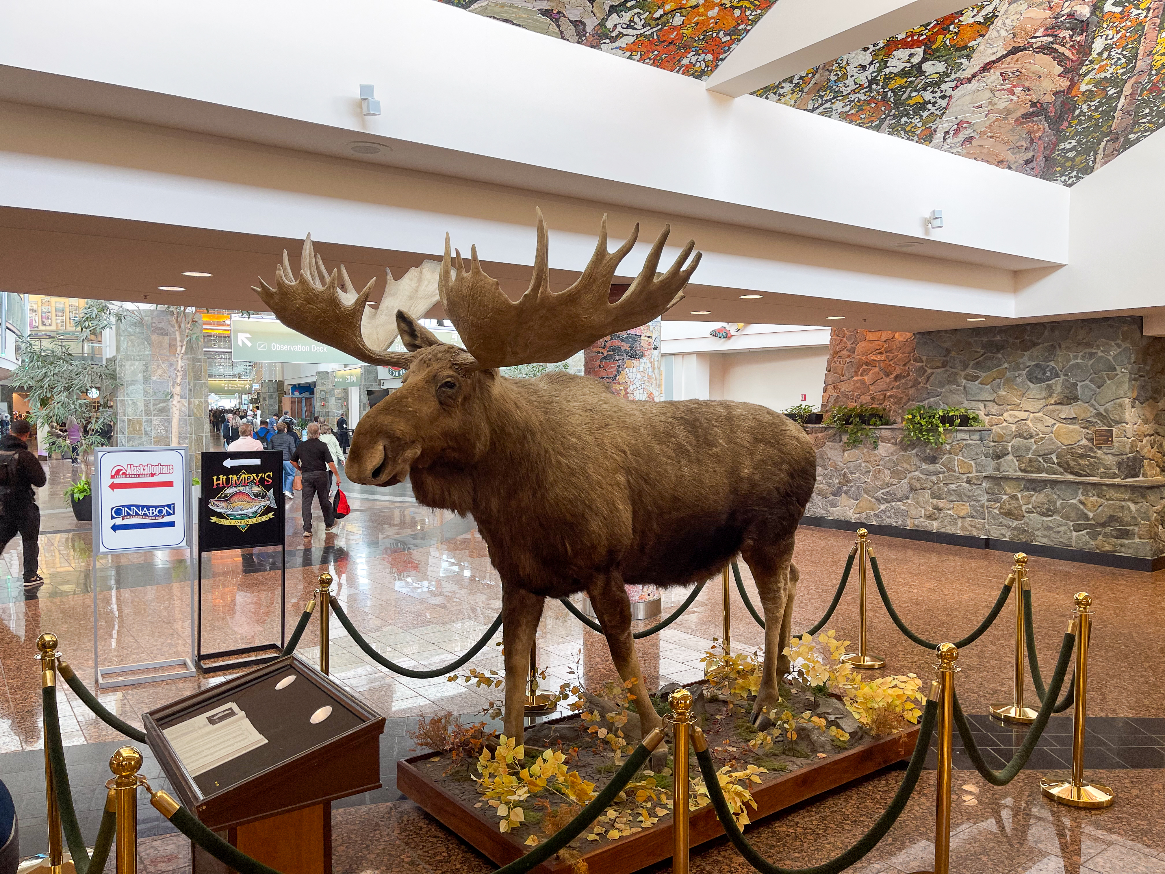 It is a much easier immigration control experience going from Canada to the US. They actually do all the passport control work at Vancouver Airport and don’t bother with fingerprints and yelling at you, like they do in LA. There are no additional checks upon arrival at Anchorage Airport which incidentally is probably the best looking building in all of Anchorage. It even has its own moose.