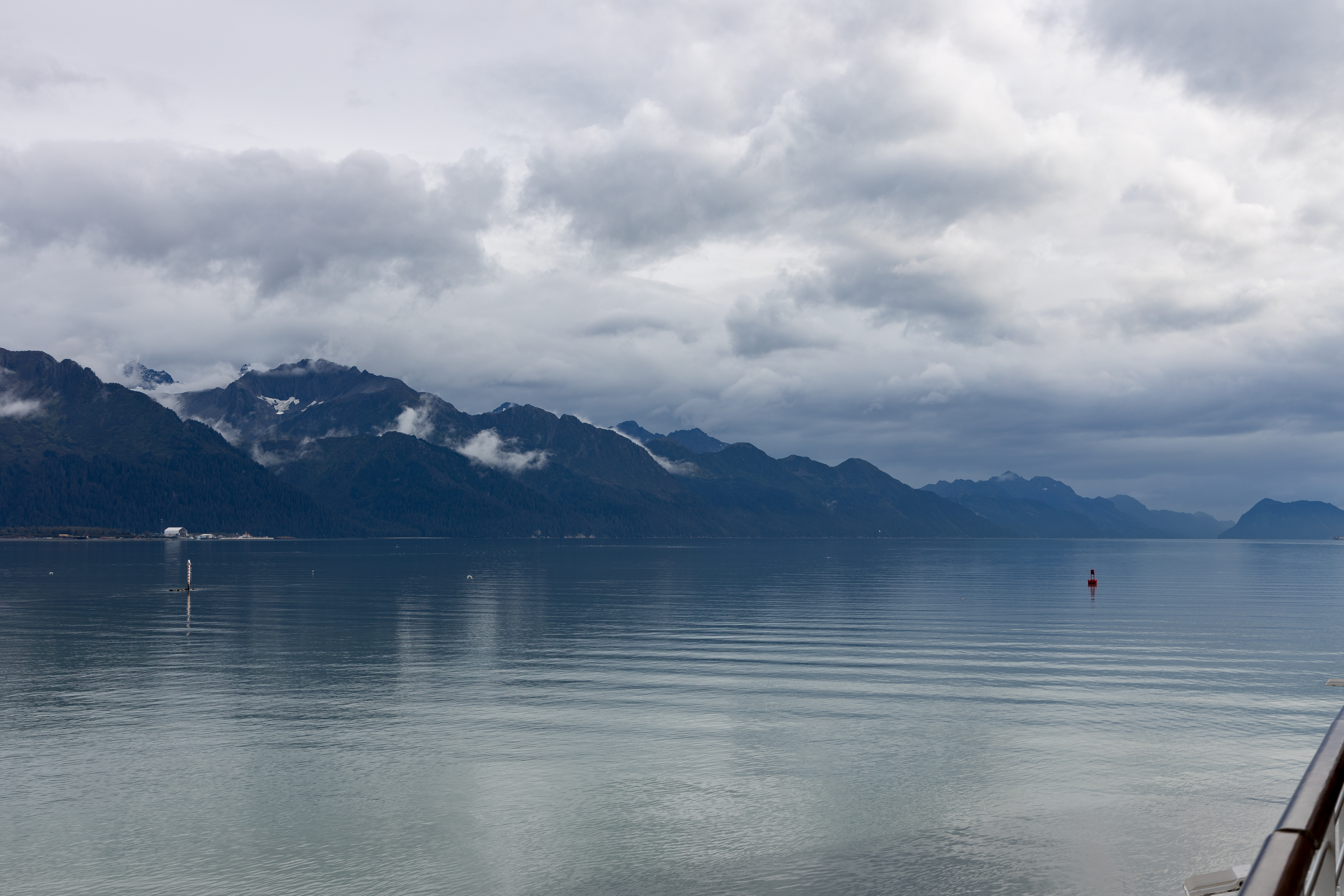 I have to apologise, because a fair bit of today involves more travelling. We had an included breakfast where our coach times were assigned for our transfer to Seward, which is the cruise ship terminal that serves Anchorage. It actually isn’t very close to Anchorage, taking three hours in a bus. The drive takes a route along Cook Inlet, so named after Captain Cook, who really got around, having completed voyages all over the pacific, including Australia and New Zealand, and fathering eight children during his infrequent home visits. Cook Inlet was named by George Vancouver in 1794, six years after Cook’s death. The drive to Seward is quite scenic , featuring snow-capped mountains, inlets, rivers and lakes.