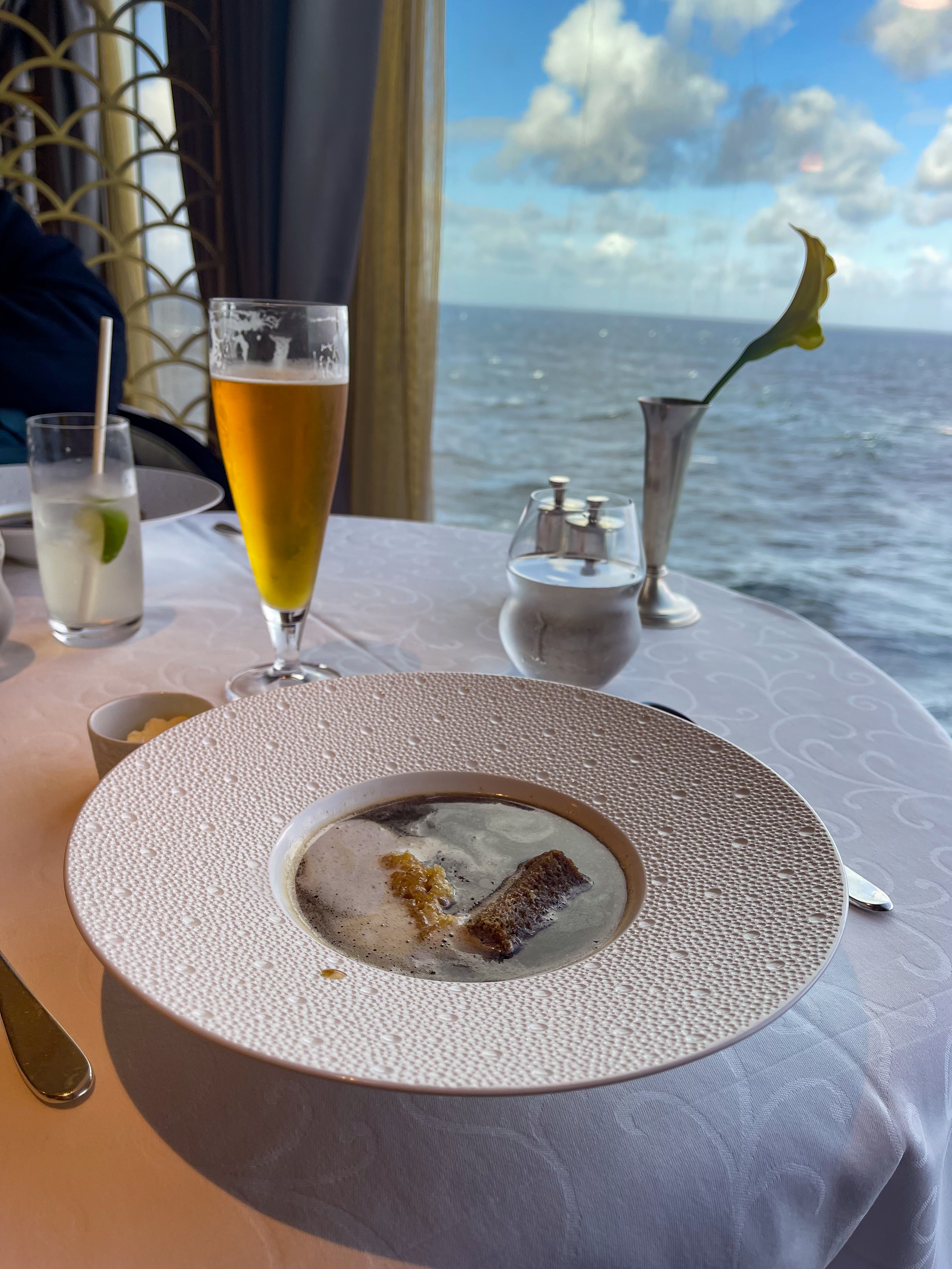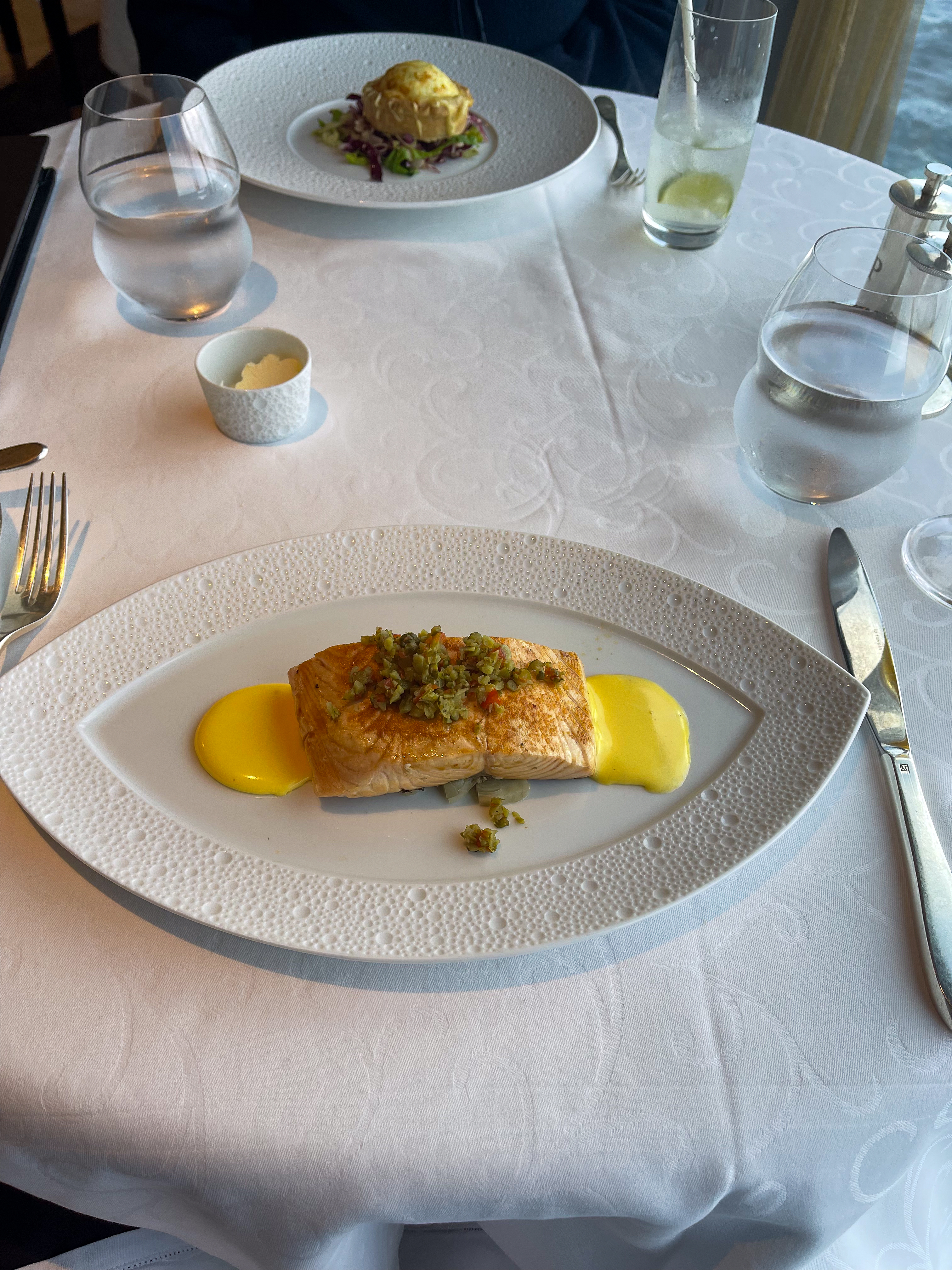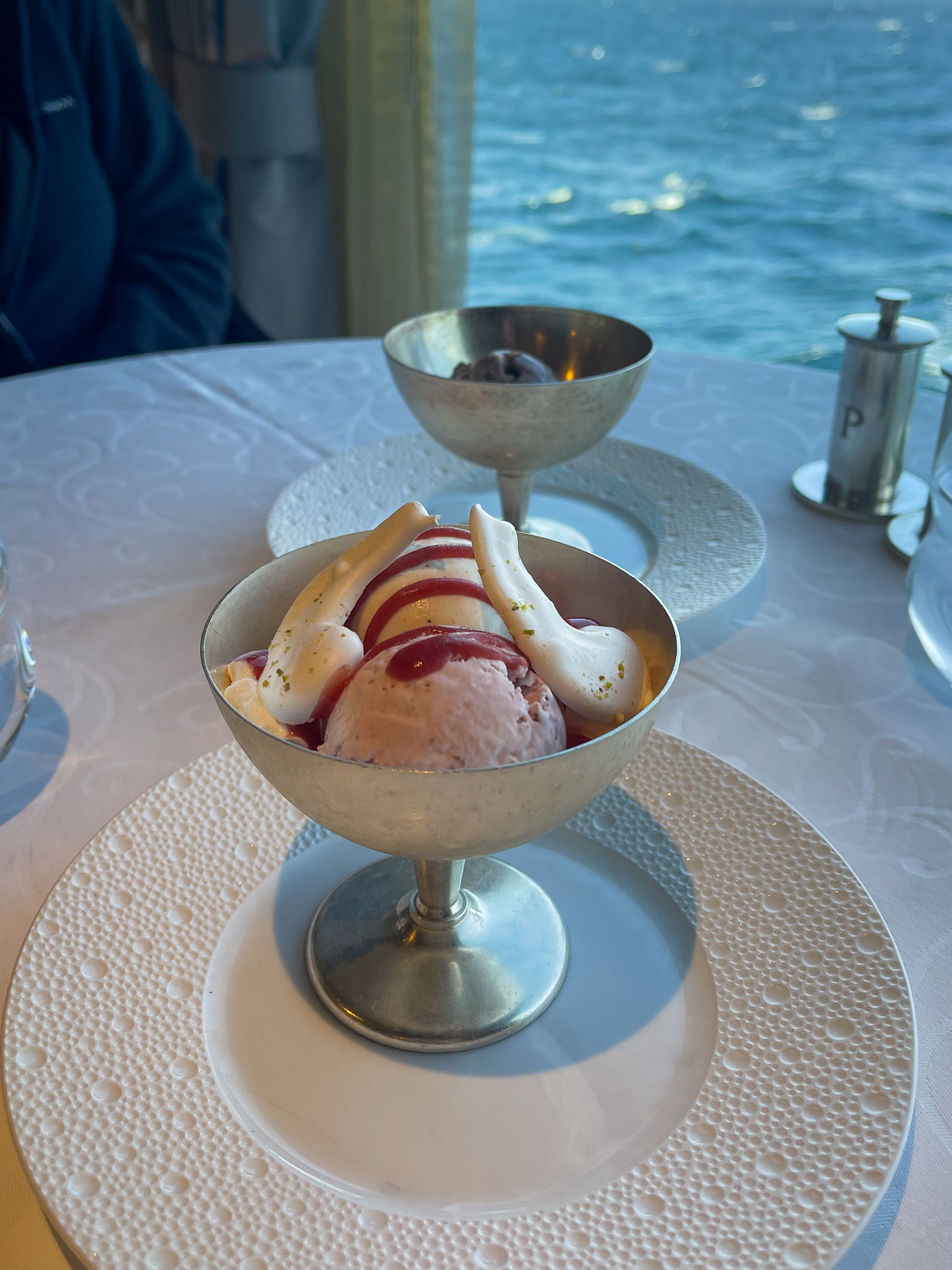 With the above mentioned treatments improving my demeanour, I caught up on some life-admin and then before we knew it, it was time to eat again. This time the venue was Chartruese which is a French-themed restaurant. Again, we had a window seat and settled in for a nice meal. We both had a delicious French Onion Soup for starters and then I had Salmon while Deb a Leek and Gruyere Tart. I finished with a Pavlova, fruit and ice-cream while Deb had Rocky Road Ice-cream. With the poor sleep last night we had a quiet afternoon in the cabin catching up on some rest.