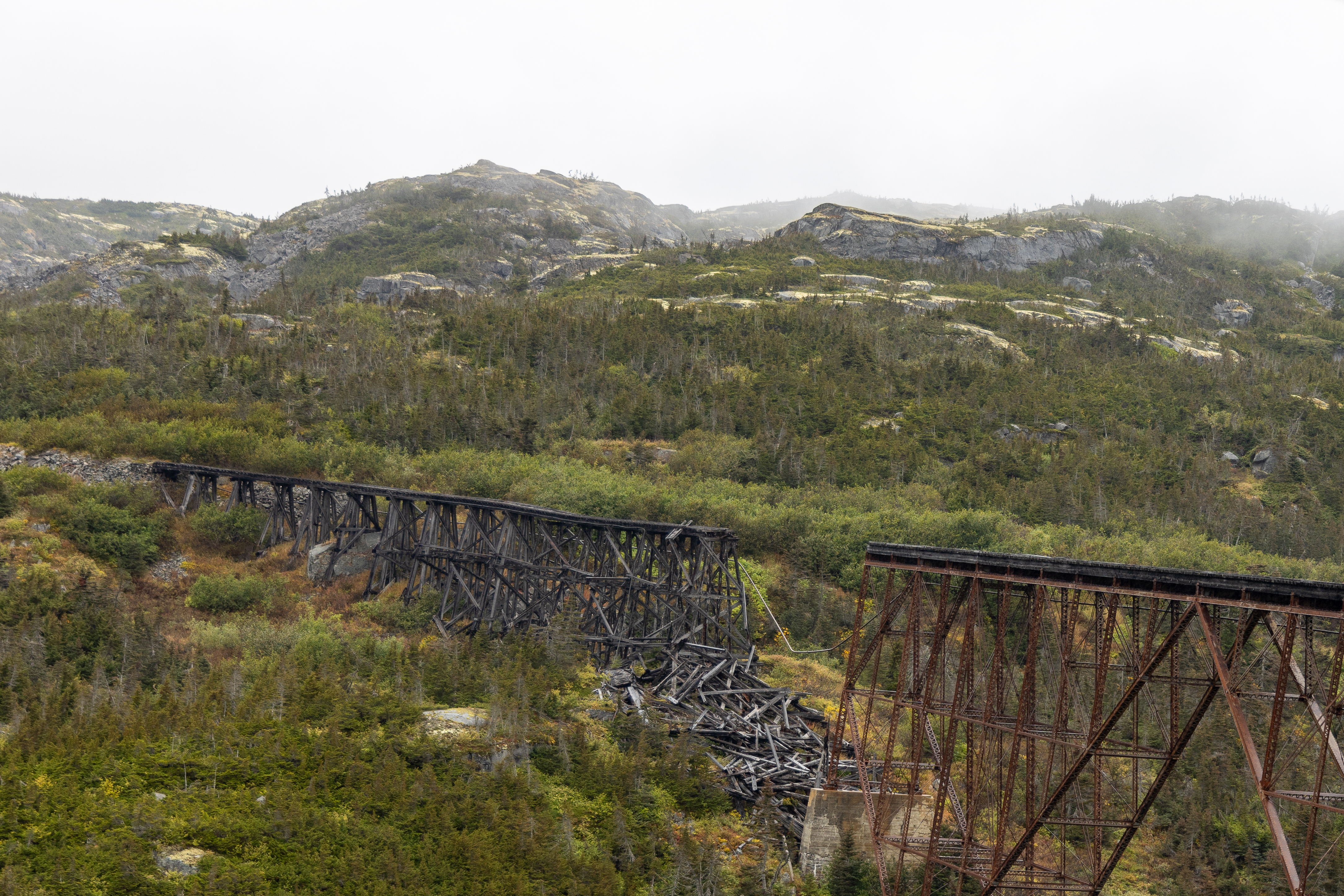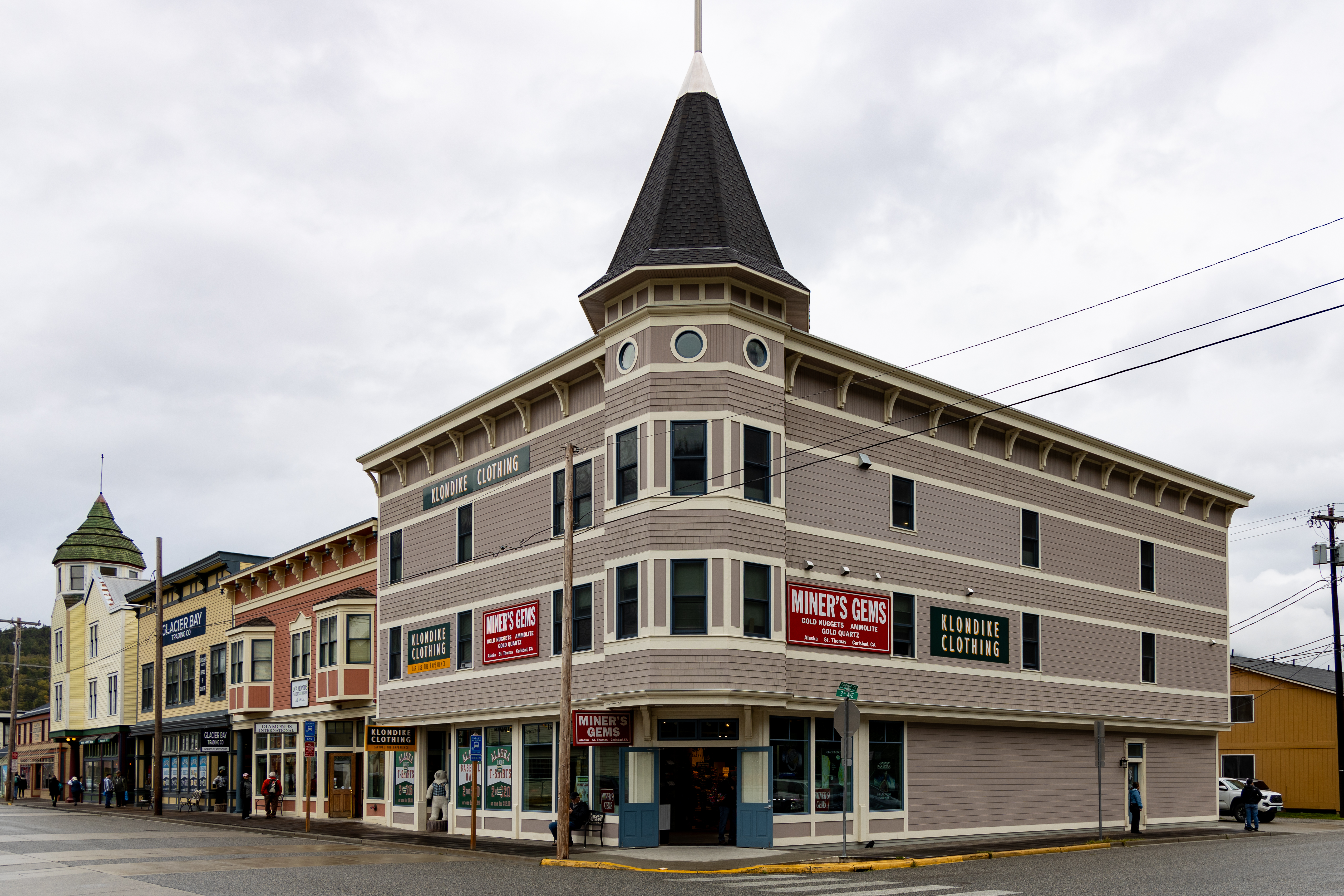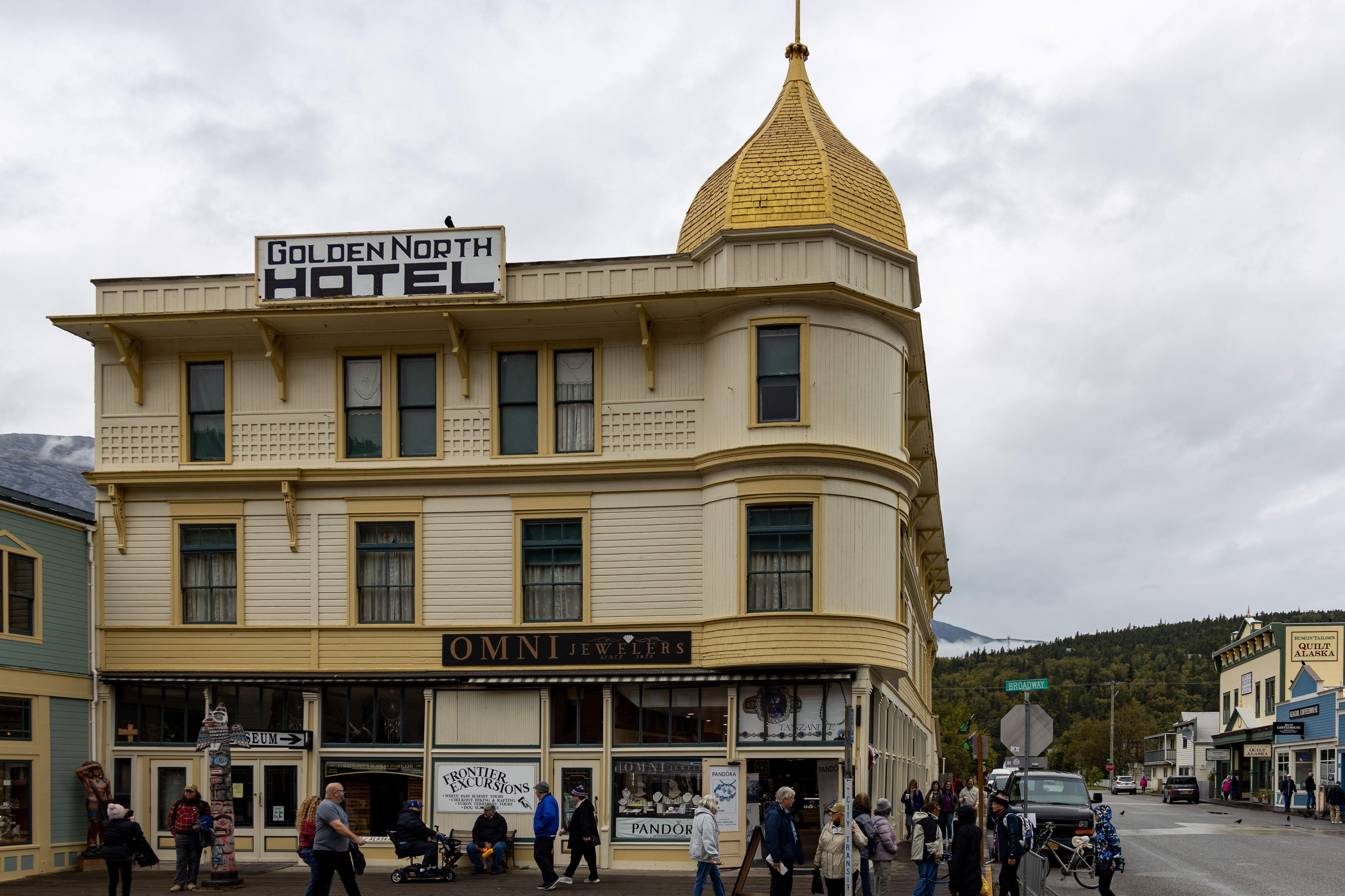 When we woke up this morning to the ship slowing down on the approach to Skagway which was an important port during the Klondike Gold Rush which was a migration by up to 100,000 prospectors between 1896 and 1899. Gold was discovered there by local miners on August 16, 1896 and when news reached Seattle and San Francisco the following year, it triggered a stampede of prospectors. Some became wealthy, but the majority went in vain. Skagway is a popular stop for cruise ships, and the tourist trade is a big part of business. The main street features pubs, jewelry store, fur traders and food. With Deb still feeling the effects of her cold, I had a wander ‘downtown’ and we agreed to meet up for today’s excursion. It was a dangerous trip though. You have to get a shuttle from the ship to end of the pier because there has been a number of rock falls, which you are apparently more likely to survive if you’re in a shuttle.