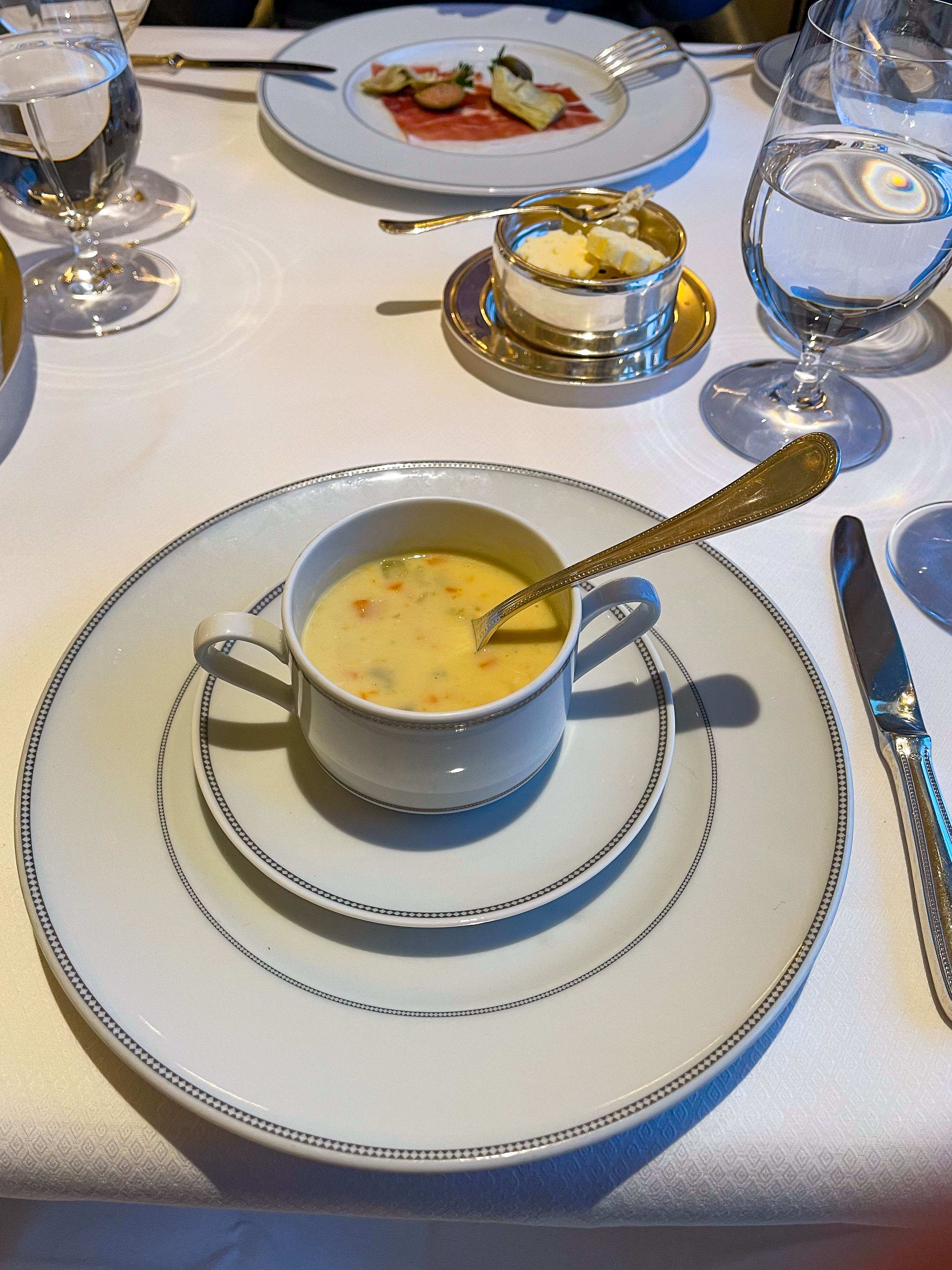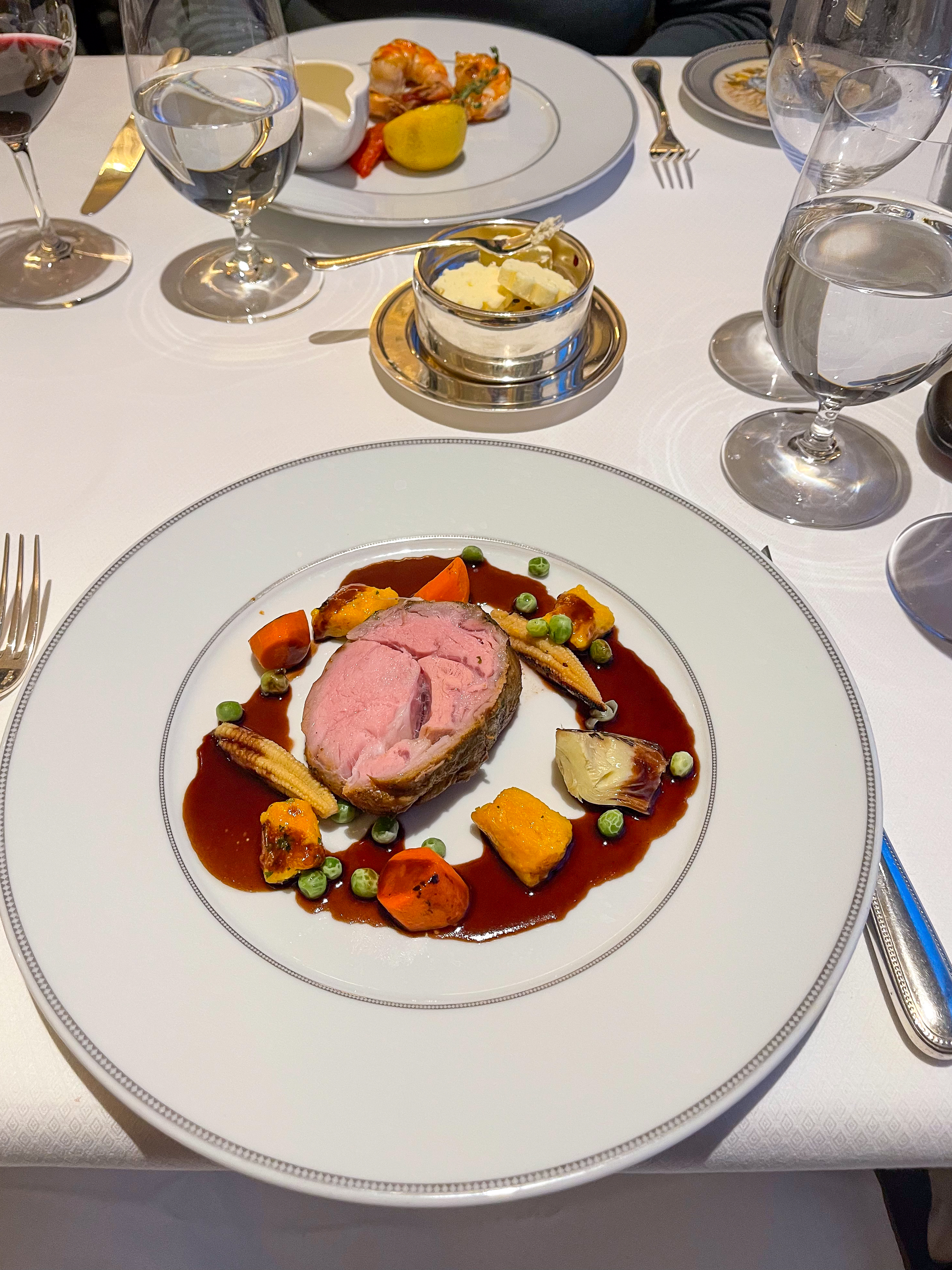For us, this meant we were back at Compass Rose with our favourite server Felymar. She has served us a number of meals across many of the restaurants. Tonight I had a Halibut Chowder while Deb had some Jamon Iberico for a starter. Then I had veal while Deb had ‘Jumbo Shrimp’ which was like our King Prawns. For dessert we both had Baked Alaska, which seemed appropriate… Baked Alaska in Alaska!