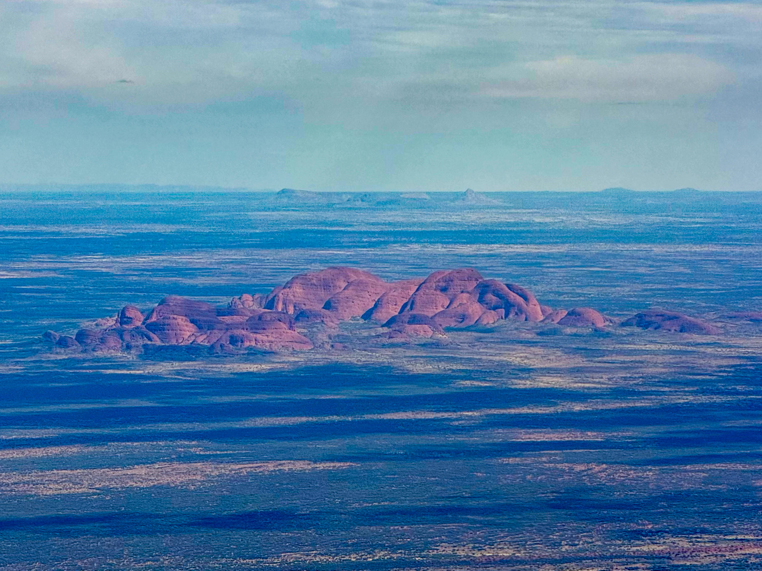 We had an early flight out of Brisbane, firstly to Sydney and then a 3.5 hour flight to Yulara, which is the resort town just outside the National Park. The flight over was uneventful, although a little bumpy at times. There were plenty of spare seats so Deb took the window seat and snapped a couple of good shots of Kata Tjuta and Uluru on the way in.