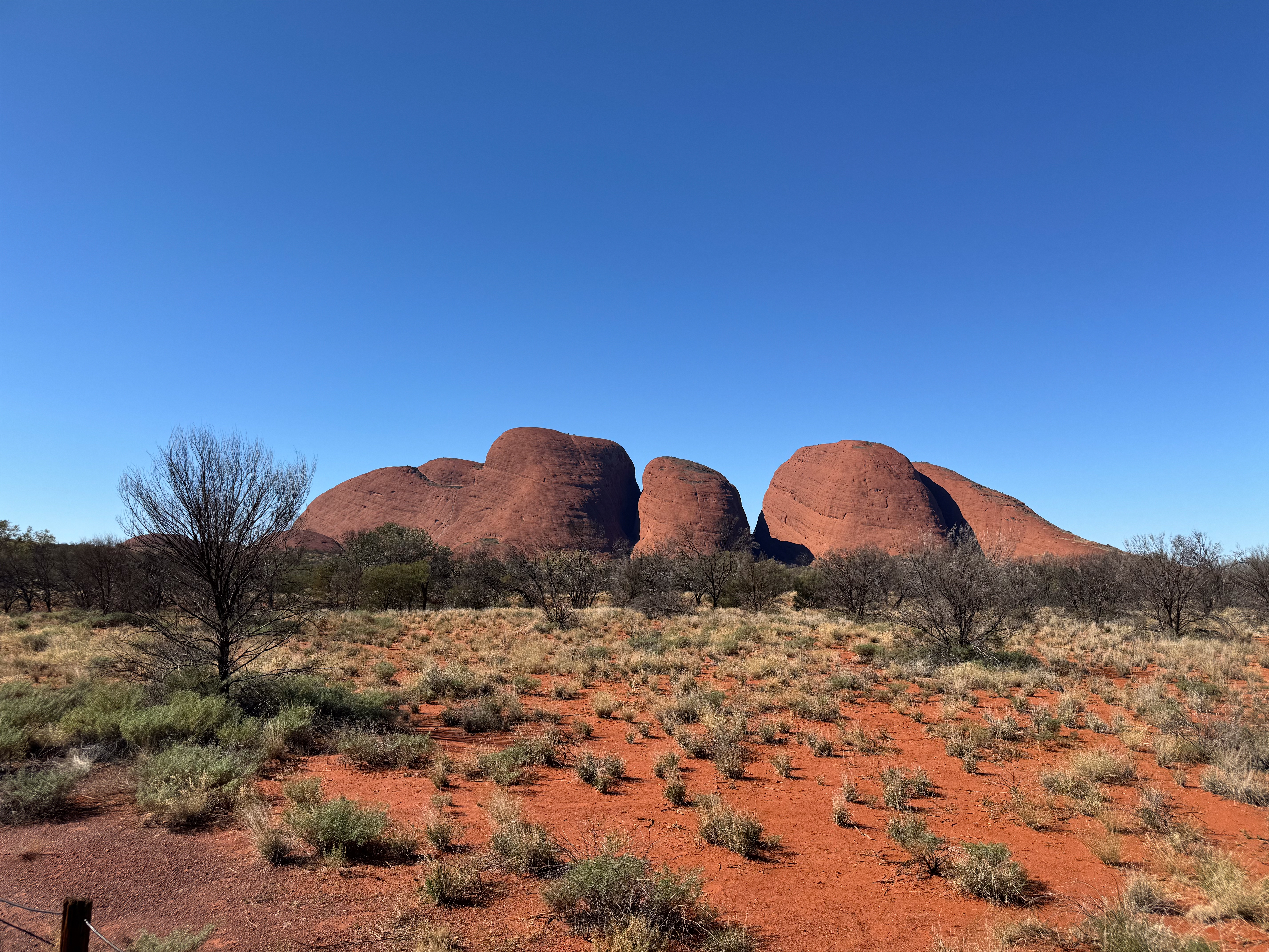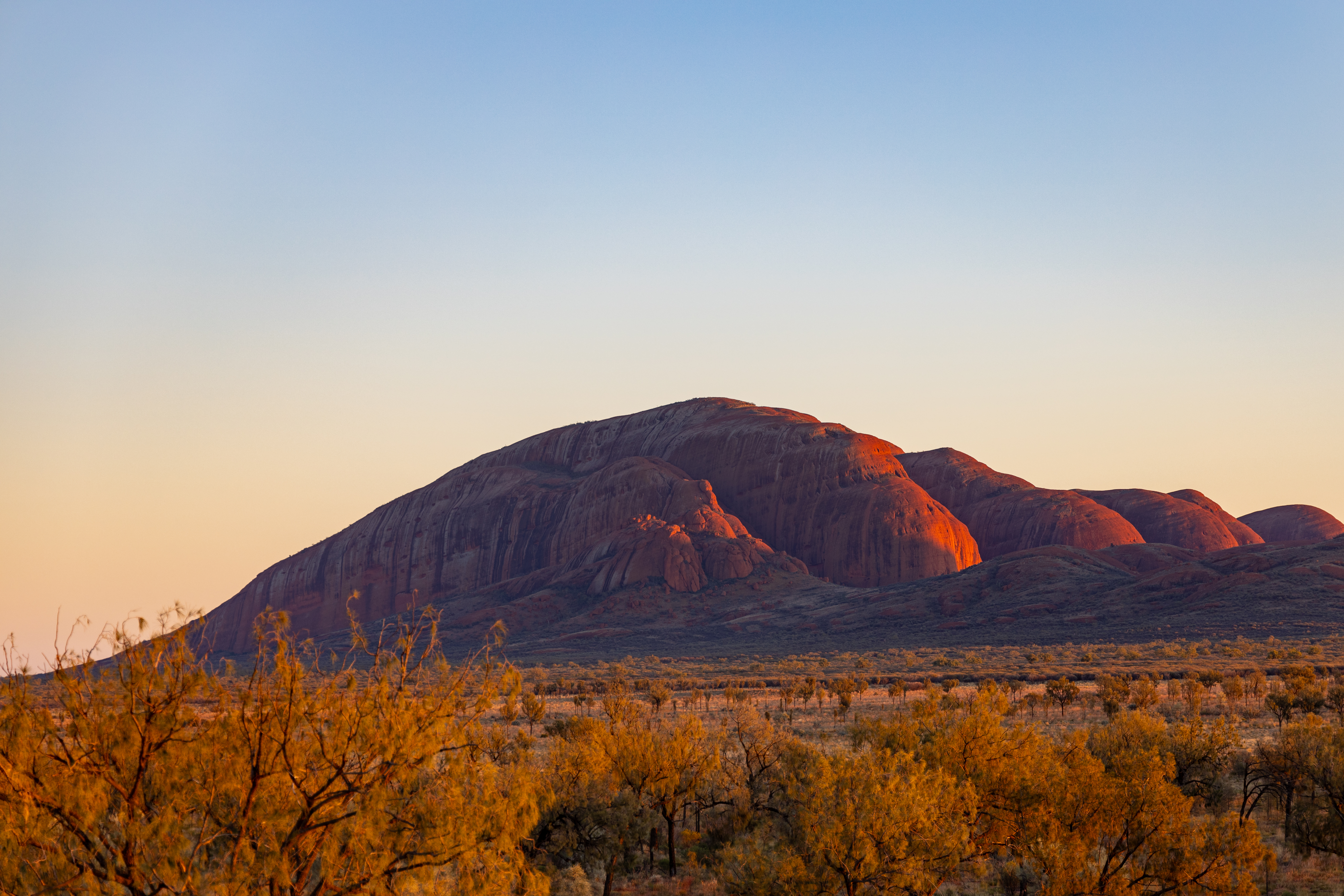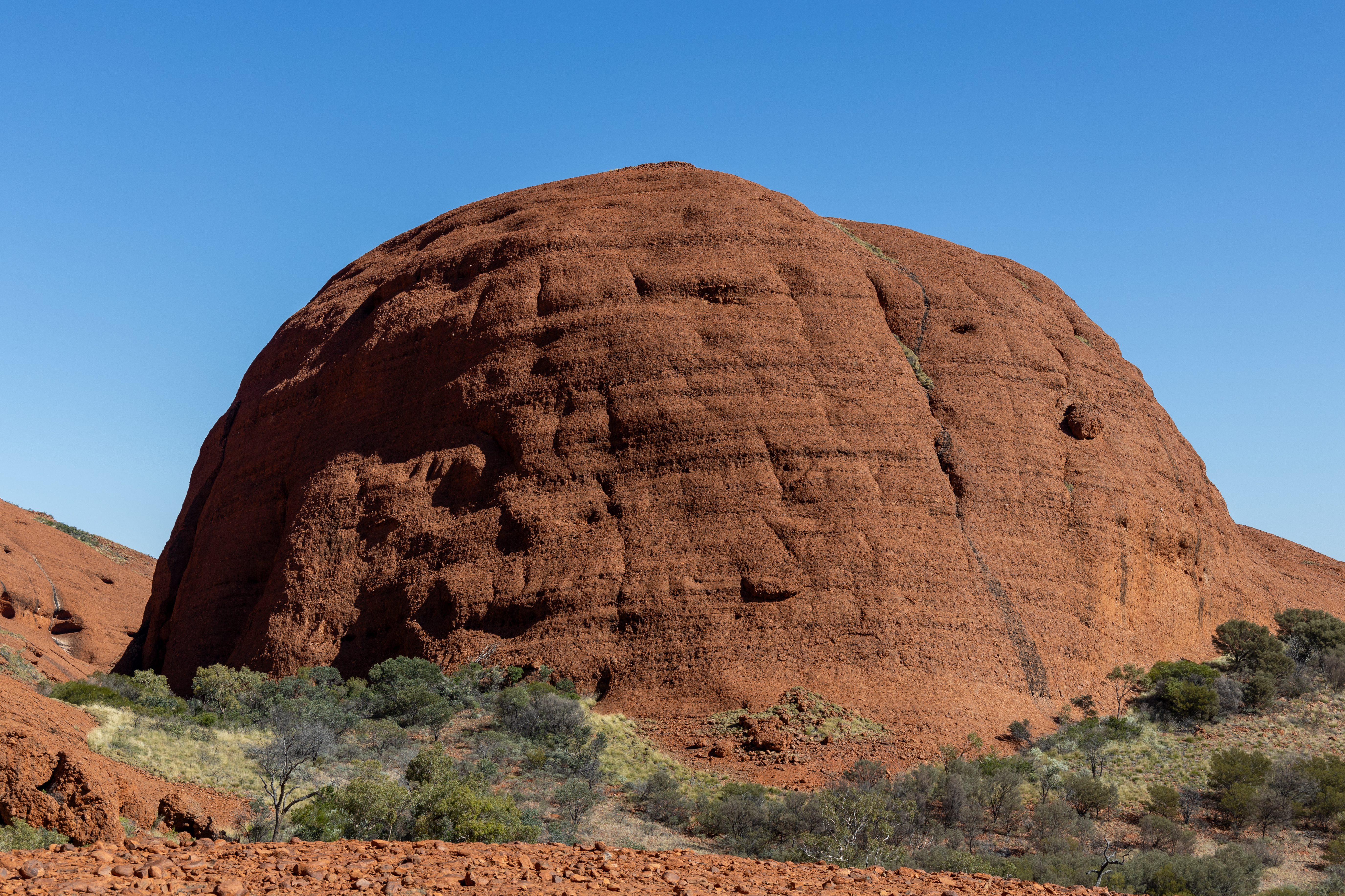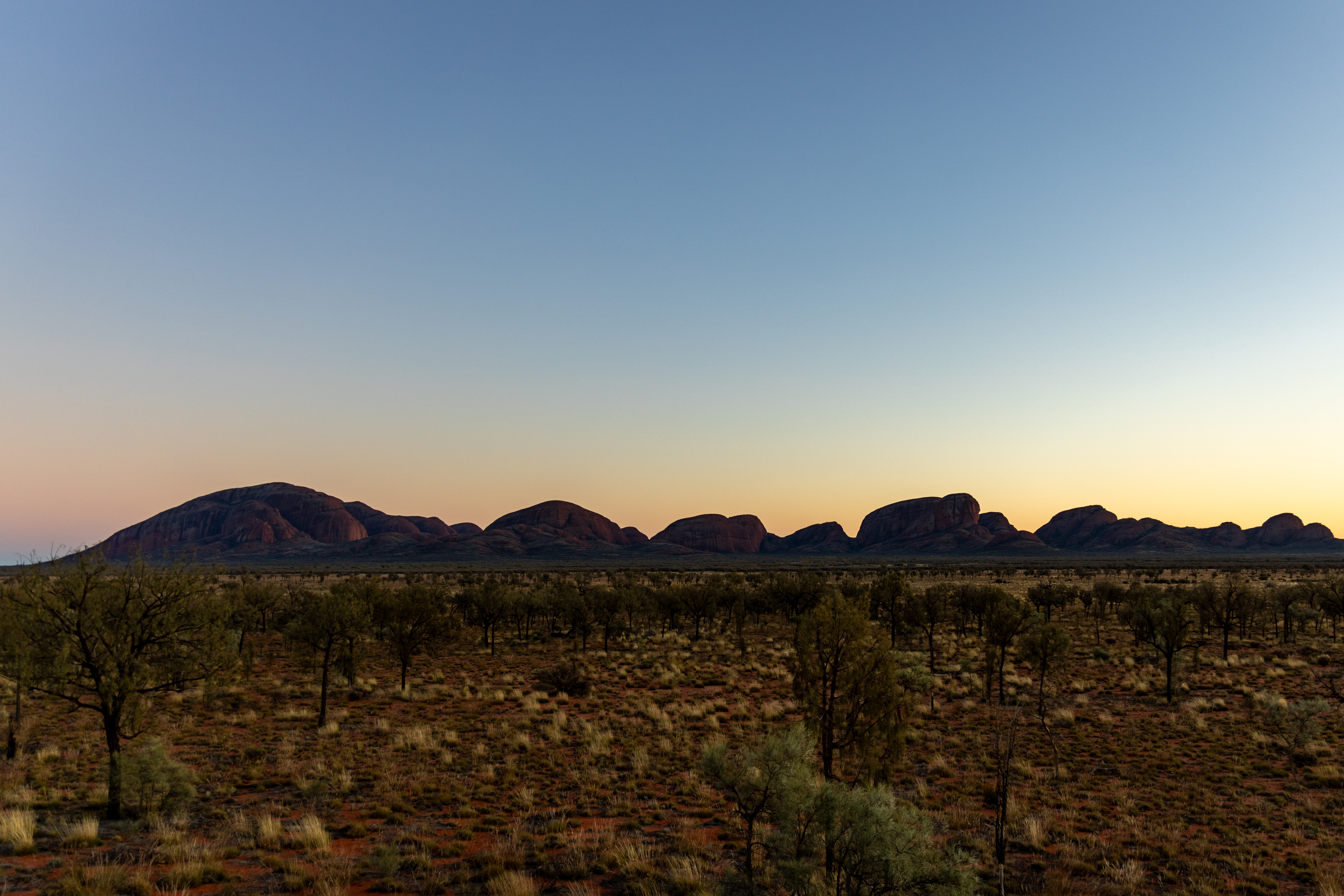 I think I mentioned yesterday that sunrise here is quite late. Neither of us slept particularly well, which for me is a common experience on the first night away. We decided we head Kata Tjuta for some sunrise photos. We arrived at the park entrance a little early, so had to wait in a queue for about 10 minutes and missed the turn, which required a bit of a back track, but we still arrived in plenty of time. Kata Tjuta used to be known as the Olgas, but has now reverted to its traditional name. It is a set of 36 rocky domes across 21 square kilometres that holds cultural significance to the local indigenous communities. The domes are spectacular and unique.
