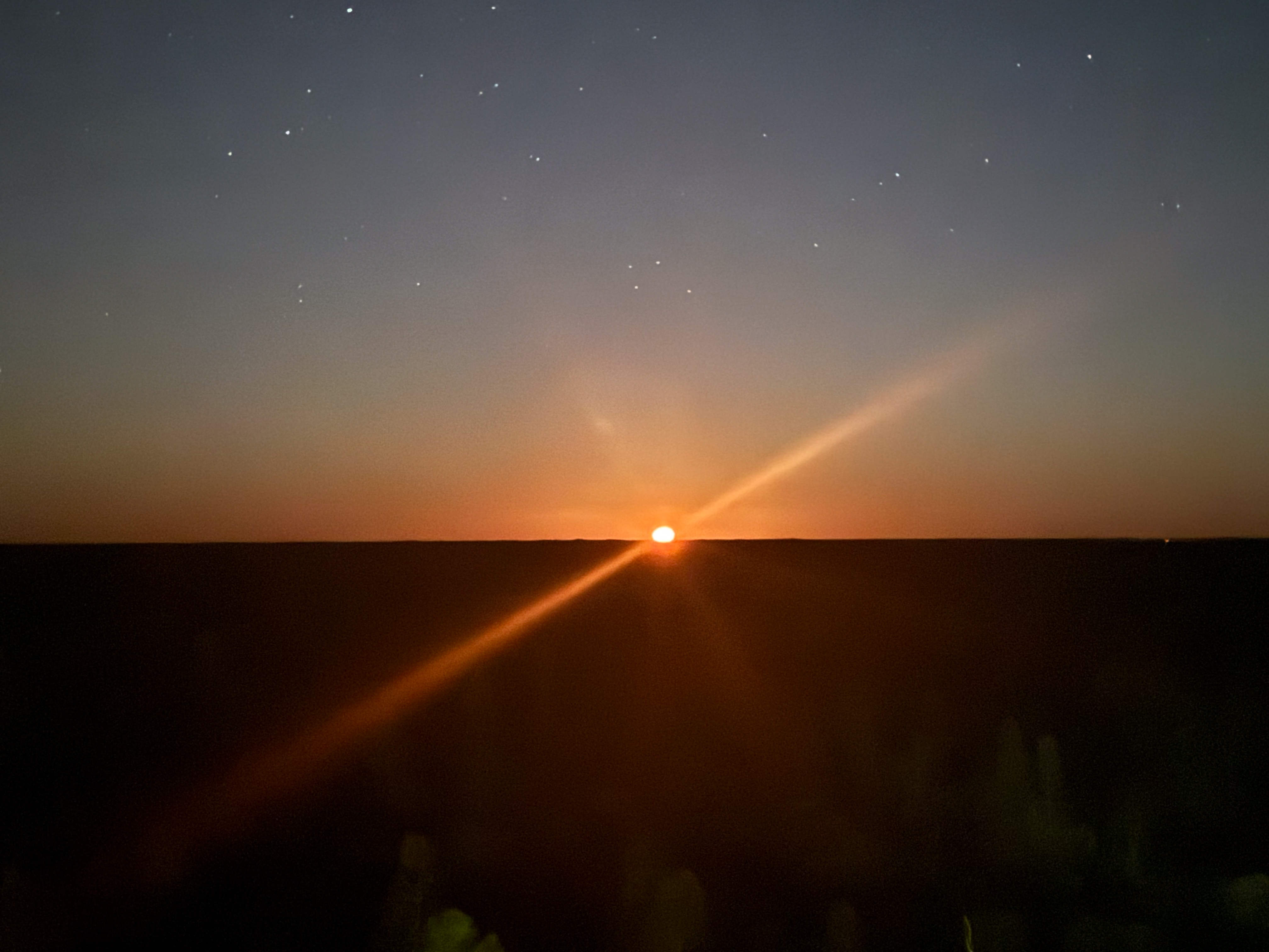 Tonight we had an amazing dinner under the stars. In the words of Chris Martin (Coldplay) and his ‘Sky full of stars’, being so far from any major city there is a huge difference. The dinner itself was held on top of one of the highest dunes in the areas and had great views. The meal was spectacular and served with premium wines including a Penfolds Bin 407. Deb chose Moreton Bay Bugs and then Wagyu steak for main while I had the Lamb Loin for entree and also the Wagyu steak. Everything was accompanied by local bush foods and was delicious. We were also treated to seeing an almost full moon rise as we finished our meal.