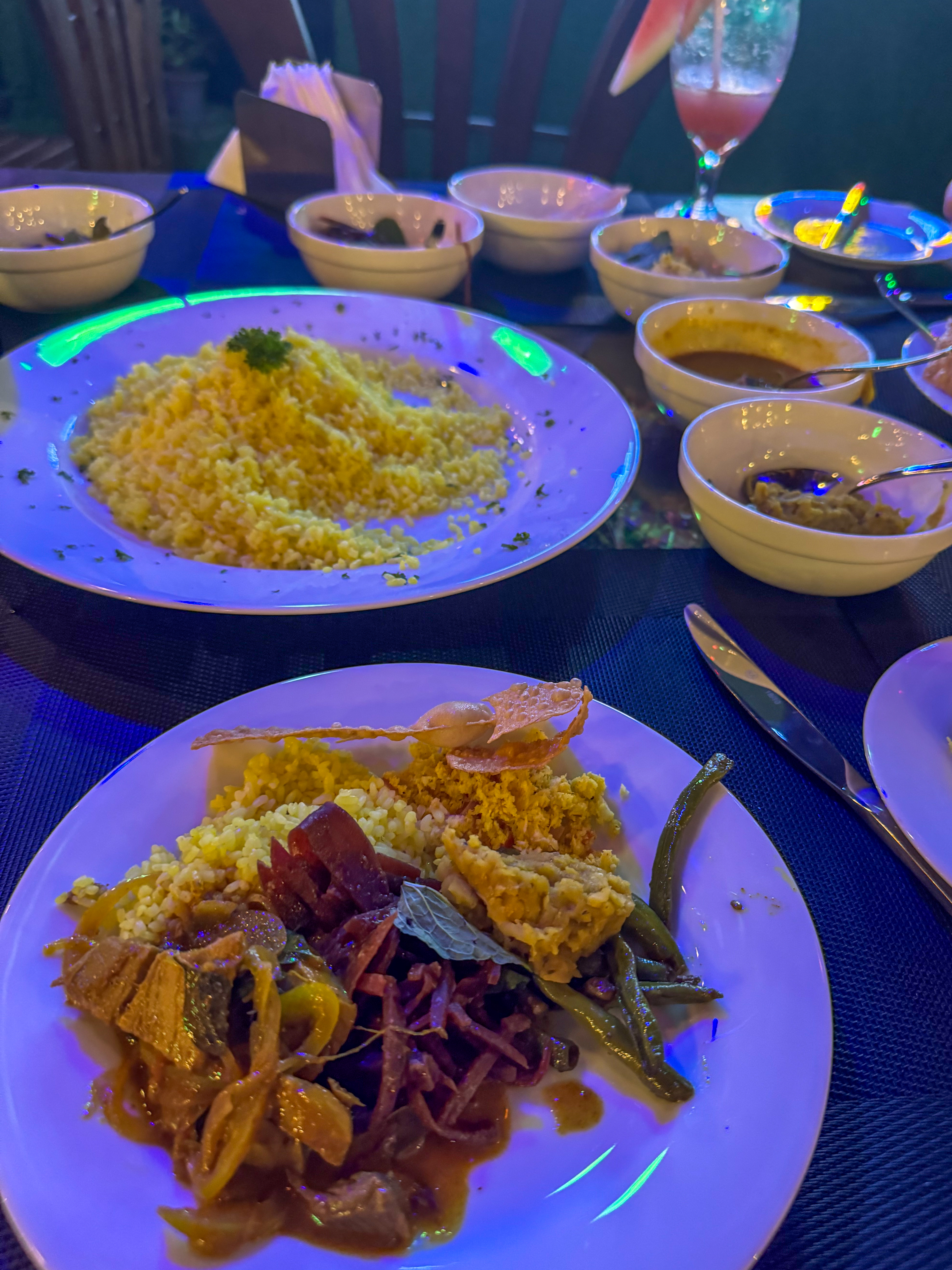 The main road nearby is a busy stretch with constant reminders that ‘cost of living’ pressures mean different things to different people. Sri Lanka is working through some serious economic challenges after many years of political unrest, but does look to be coming out the other side with the election of a new president. This means the streets are getting busier and there are lots of nice restaurants. We had a nice (spicy) fish curry and a chicken kottu dish. Thankfully a little rain came in as we ate and cooled the temperature for our walk back to the hotel.