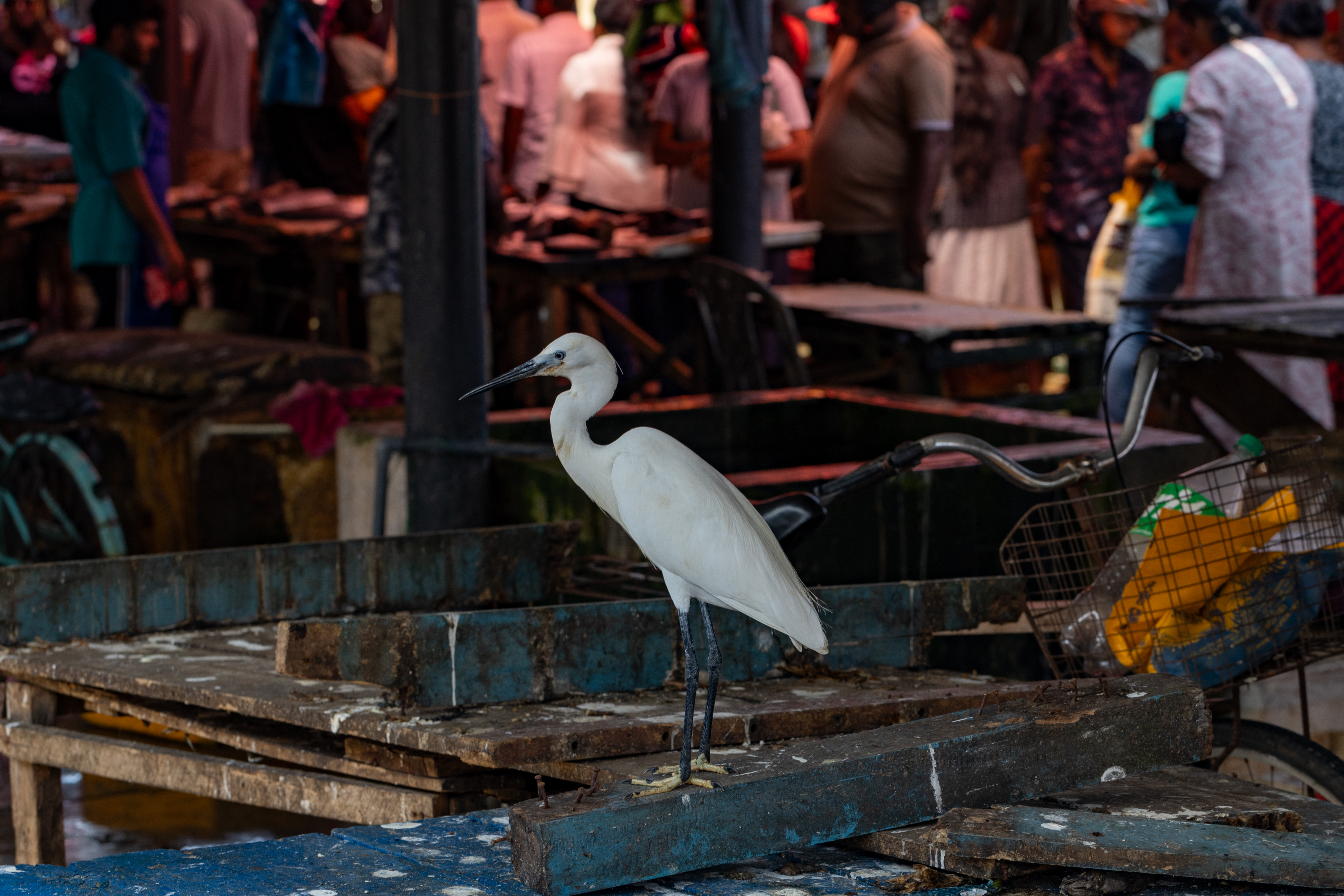 There is also a ‘wet’ market where fresh fish and all sorts of other seafood can be purchased. Once again, I did wonder about the lack of refrigeration and the general ambient temperature affecting the quality of the fish. The egrets and local crows also come in to see what they can scavenge.