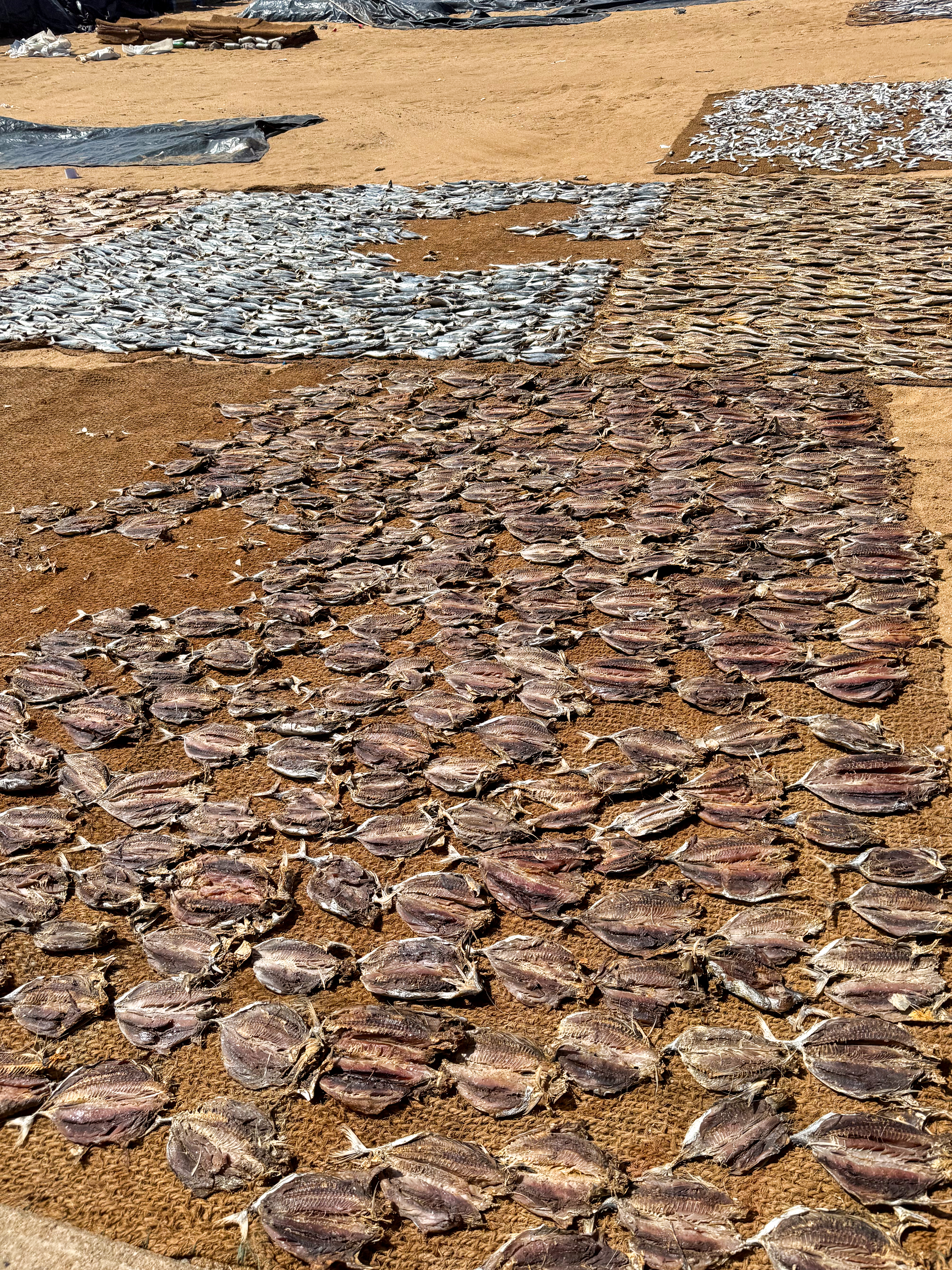 I doubt he’s a fisherman at all and probably makes his money fleecing tourists. Although, I was feeling a little silly, he was a bit helpful in guiding us around the drying process. I hope he spends the money in the local community. The market produces a lot of dried fish which is salted and basically left in the sun to dry.
