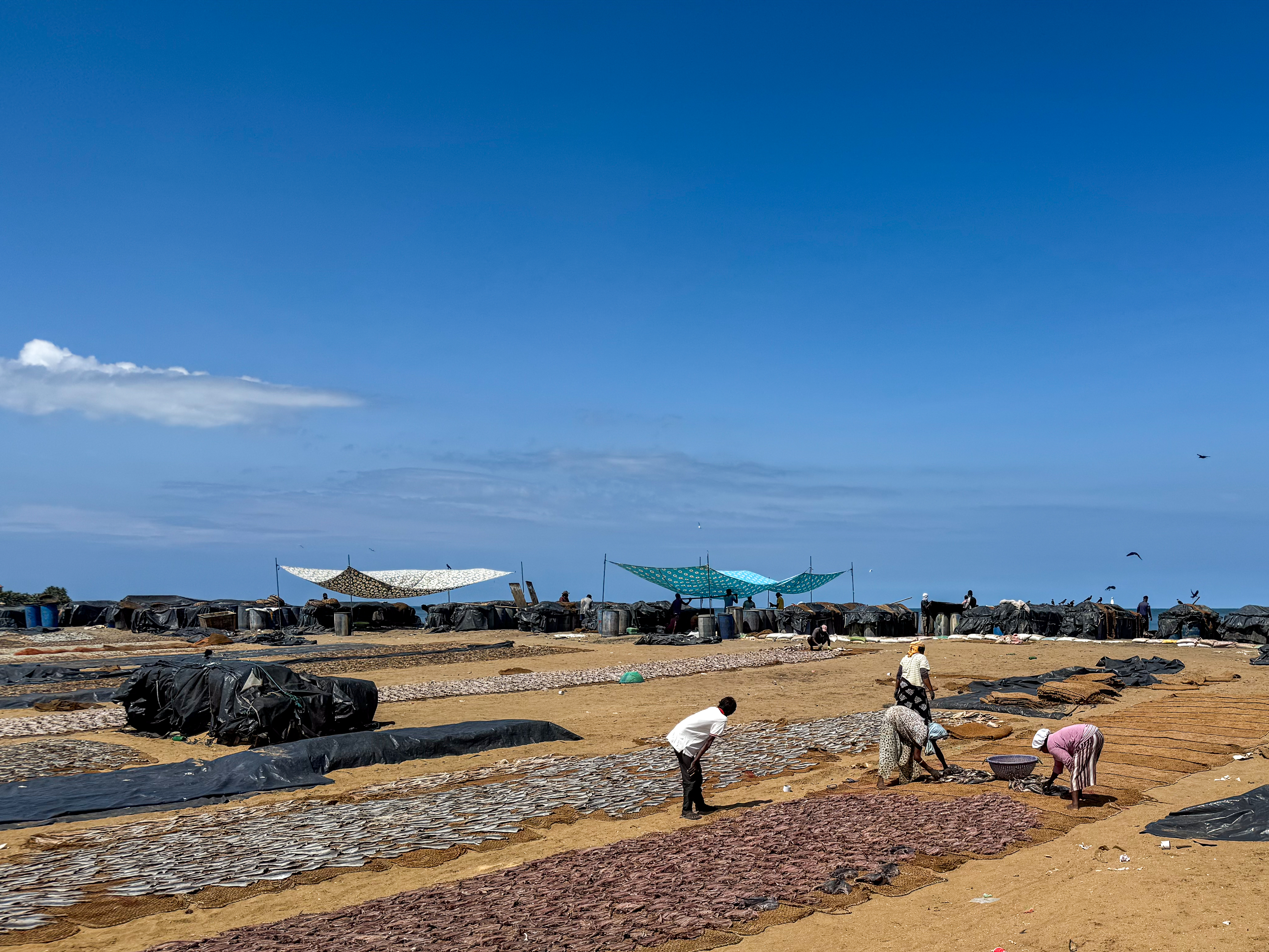 It’s very manual process as the fish are sorted, cut and prepared from drying, so it was quite the hive of activity to observe. From a food safety perspective, there are so many issues with the process. Additionally, as I walked past the fish cutters and the runoff was flowing straight back into the ocean, I did wonder about environmental impact.