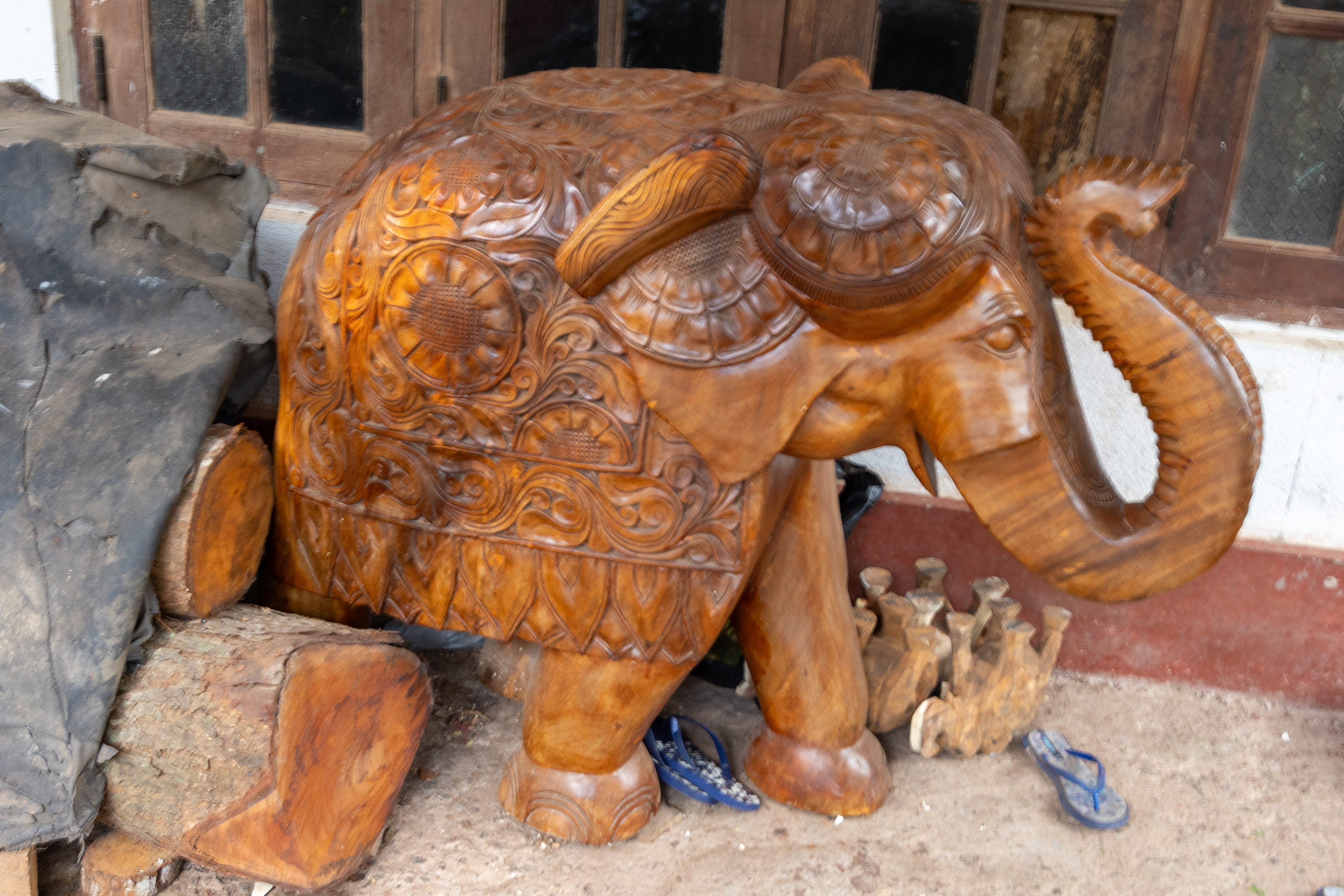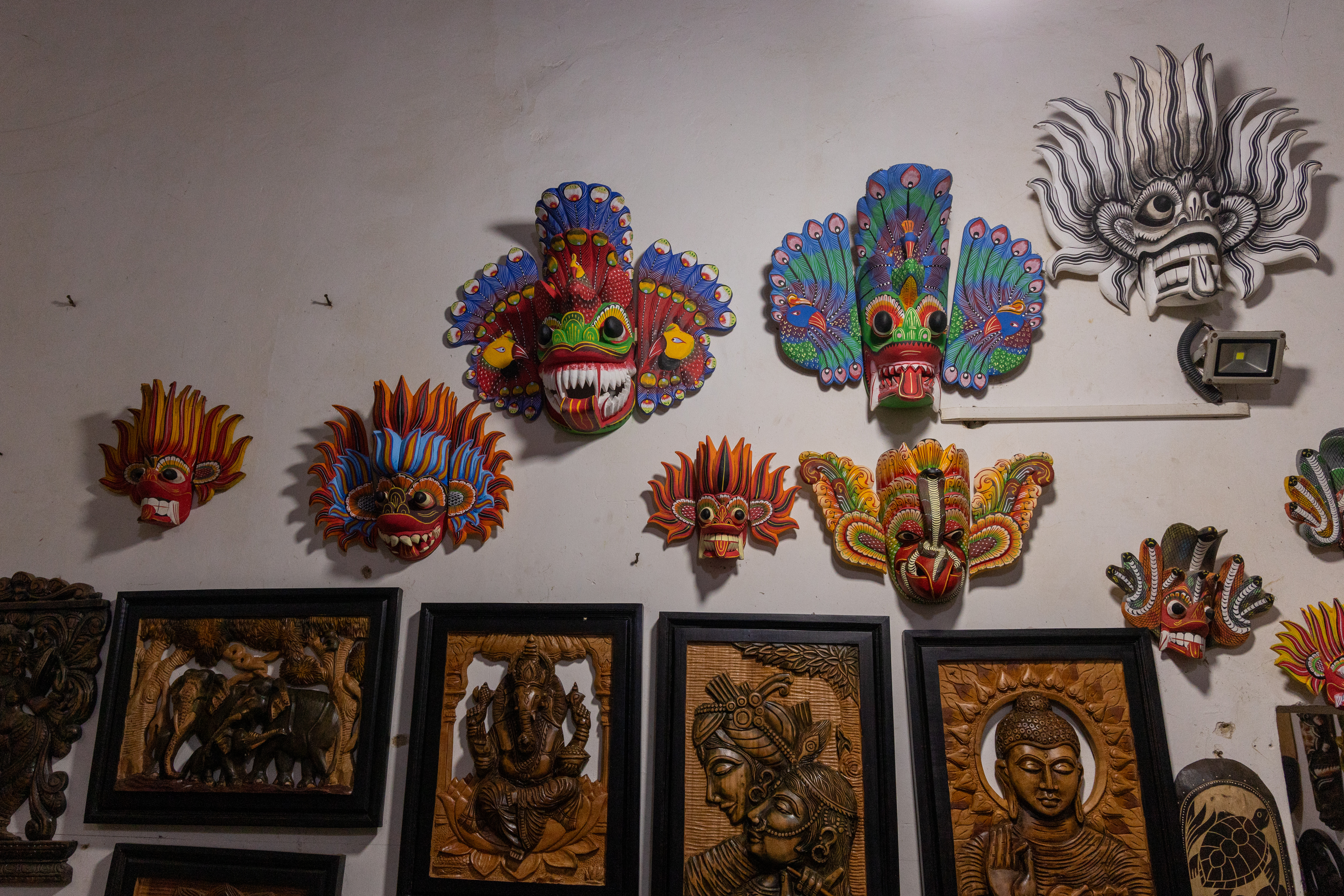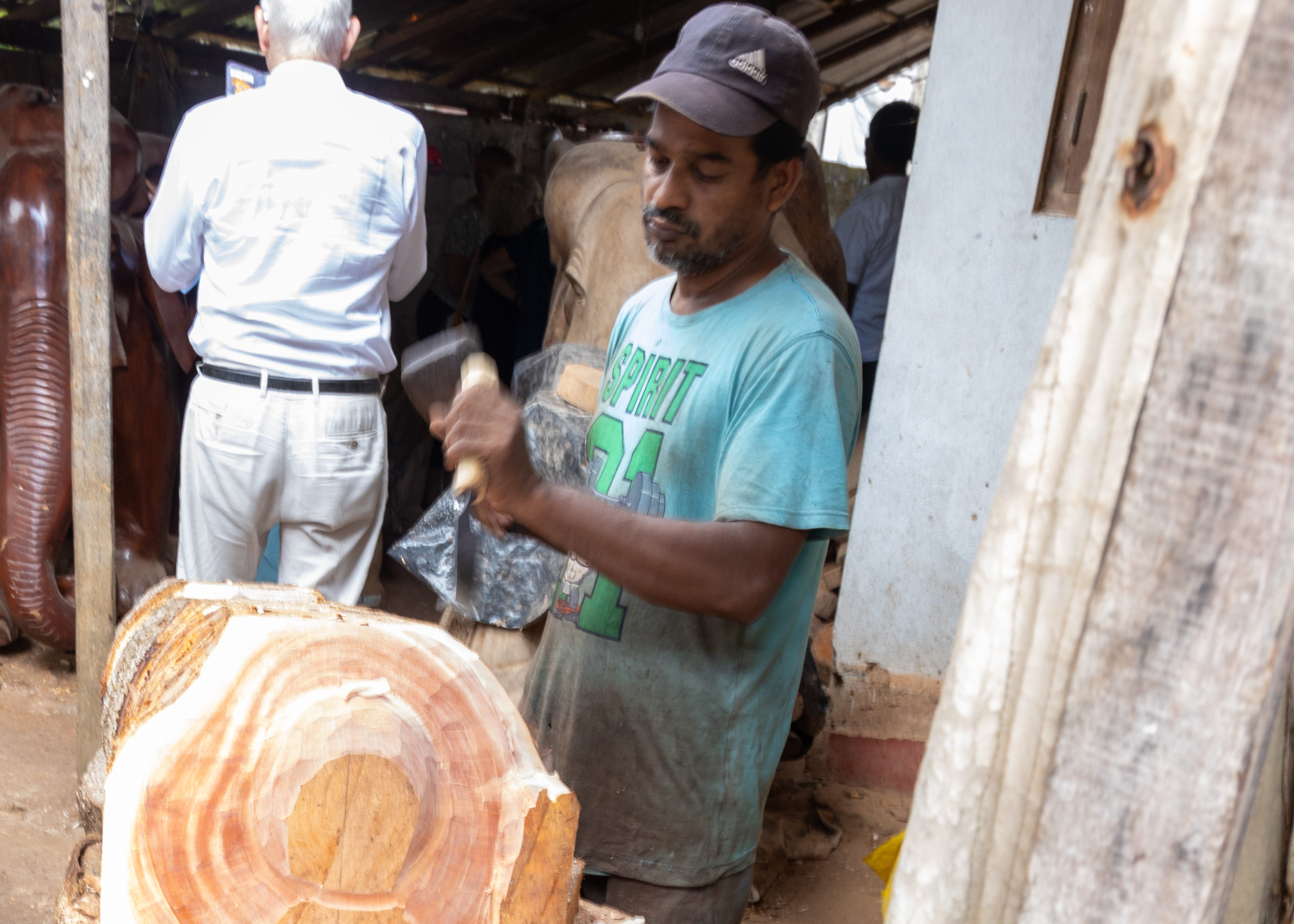 Our first stop today was a woodcarving factory. One thing I’ve learnt on this trip is that Sri Lanka has a lot of ‘home-based’ industry. In reality, we went to a private home that had a number of people performing specific tasks in different areas of the home. It was interesting to understand the different skills that are needed in operations like this. The result is some amazing wood carvings, both objects and frames. They also produce tribal masks which feature some particularly detailed painting . Some of the tour group bought items, but for us, wood products are difficult to import to Australia and New Zealand.