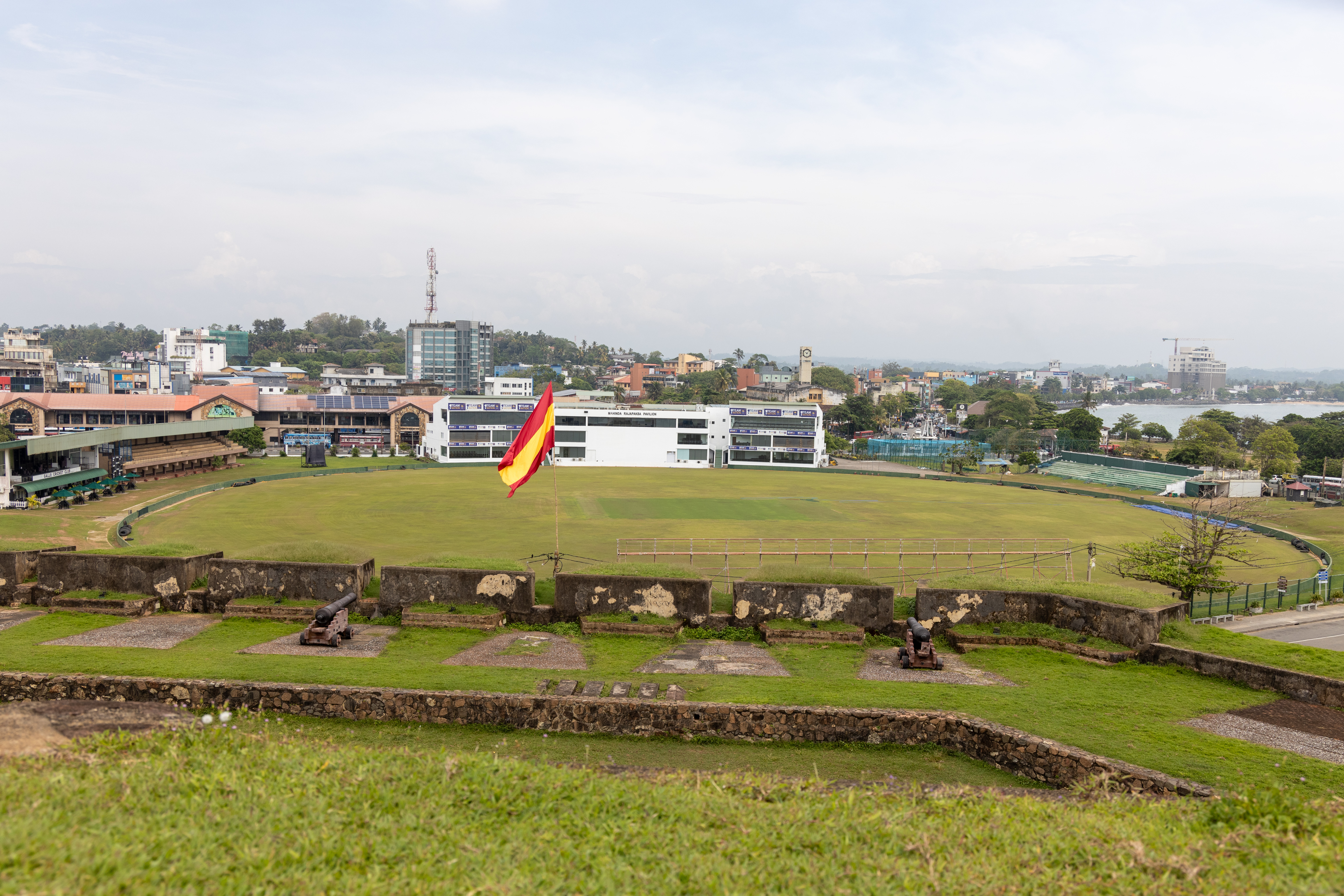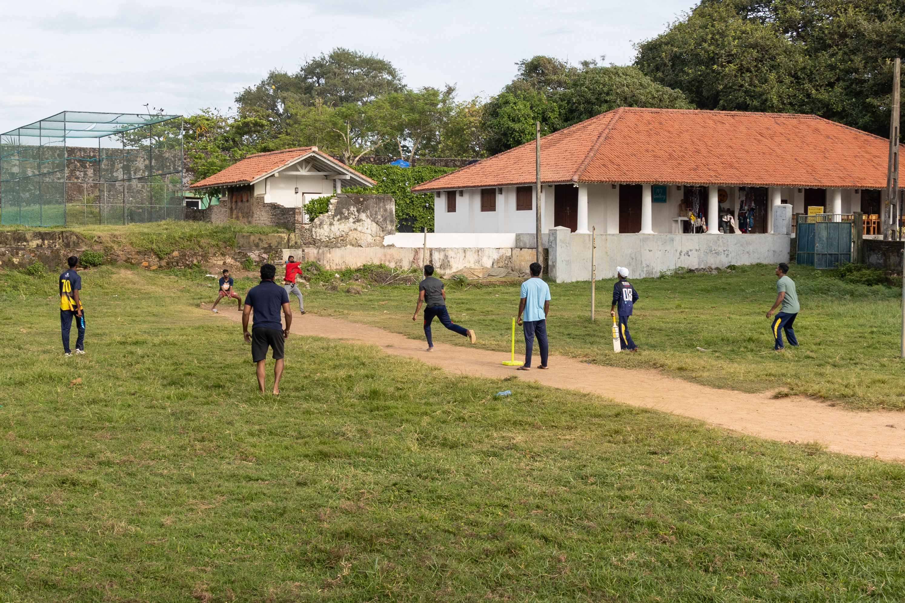 After we toured the ramparts, we were left on our own to discover the rest of the fort. There are lots of interesting shops and the Deborahs and I had a delicious lunch before returning to our explorations. As a cricket fan no visit to Galle would be complete without a snap of the Galle International Cricket Stadium. The stadium which really only has stands on one side can hold 25,000 people. Sri Lanka are a formidable side at this ground. The ground was severely damaged in the 2004 tsunami and the cricket community, spearheaded by Shane Warne raised funds to restore it. On our way to the ground we passed a game of park cricket. The enthusiasm for the game here is something else.
