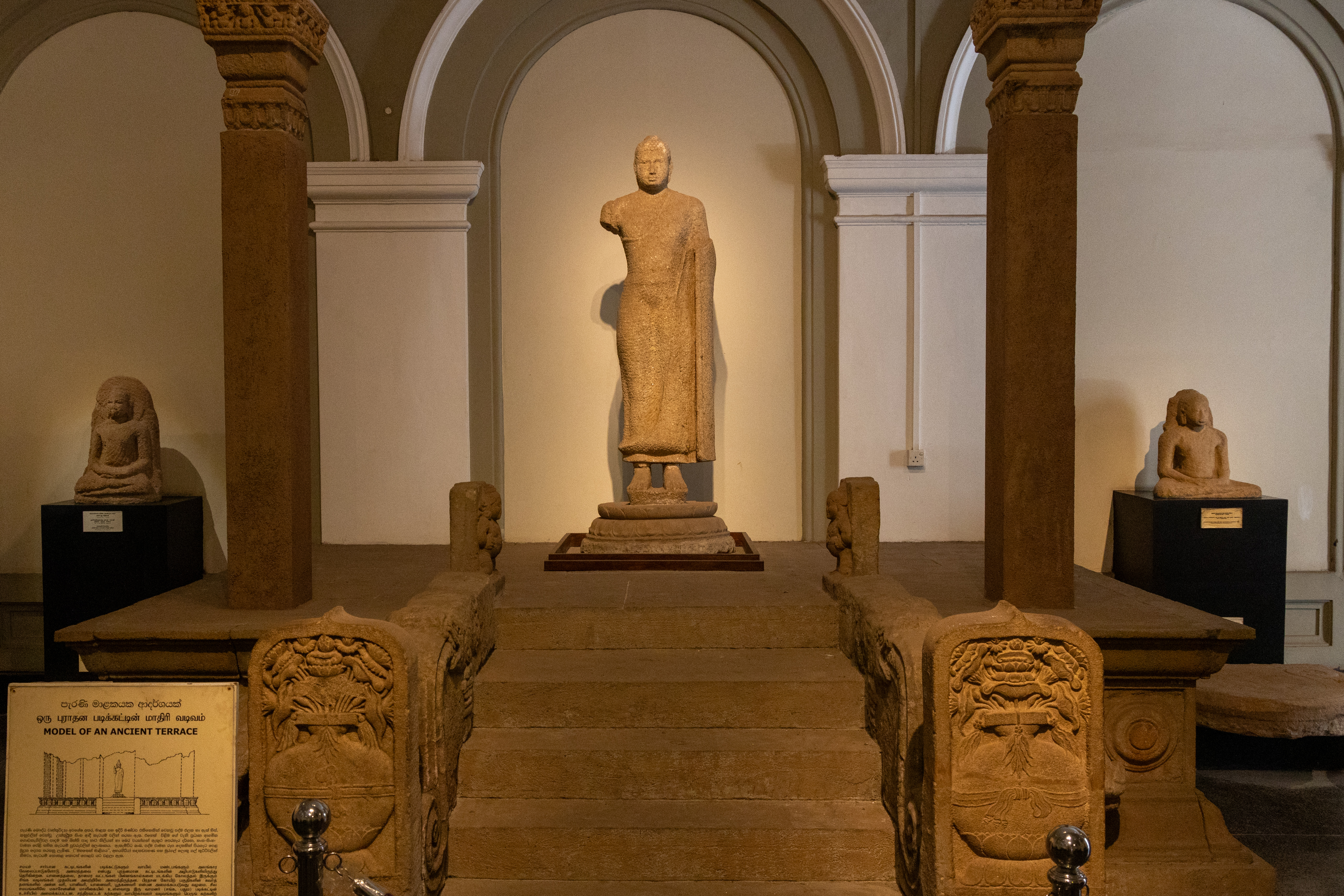 Our next stop was the National Museum of Sri Lanka, which largely showcases the history of the Sri Lankan royal families. Many of the displays were similar to the ones in to old capitals we went to while we were staying in Dambullah. It was good to refresh some of the information we’d received on the tour, but we’d only seen the archaeological site, whereas the museum feature the tools, weapons and cooking equipment used through all the eras. The building that houses the museum is a very british design with arches and bright white external paint.