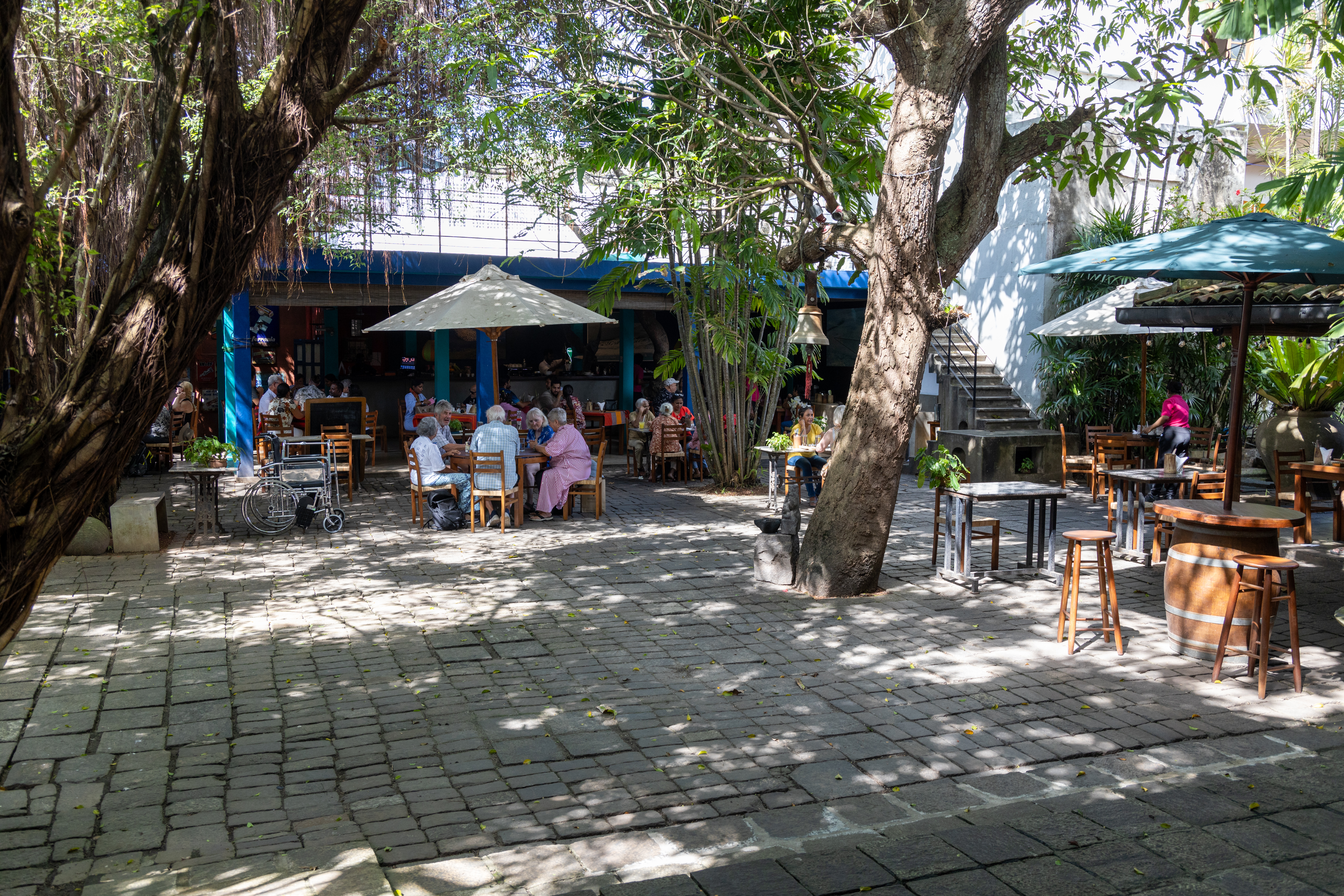 It was getting close to lunch time, so we ask the driver to take us to the Barefoot Gallery, which has a cafe. Lunch was some prawns and rice for Deb and I had some roast chicken and the obligatory Lion Beer. After lunch we wandered through the gallery spaces which are an opportunity for artists, textile makers, card makers and other handicrafts people to display and sell their wares. Deb bought some earings, a cushion cover and a shawl. The earings do not feature any precious stones, so were considerably less expensive that the ones we looked at at the gemstone place in Kandy. Barefoot is a bit of an institution in Colombo and is well worth a visit.
