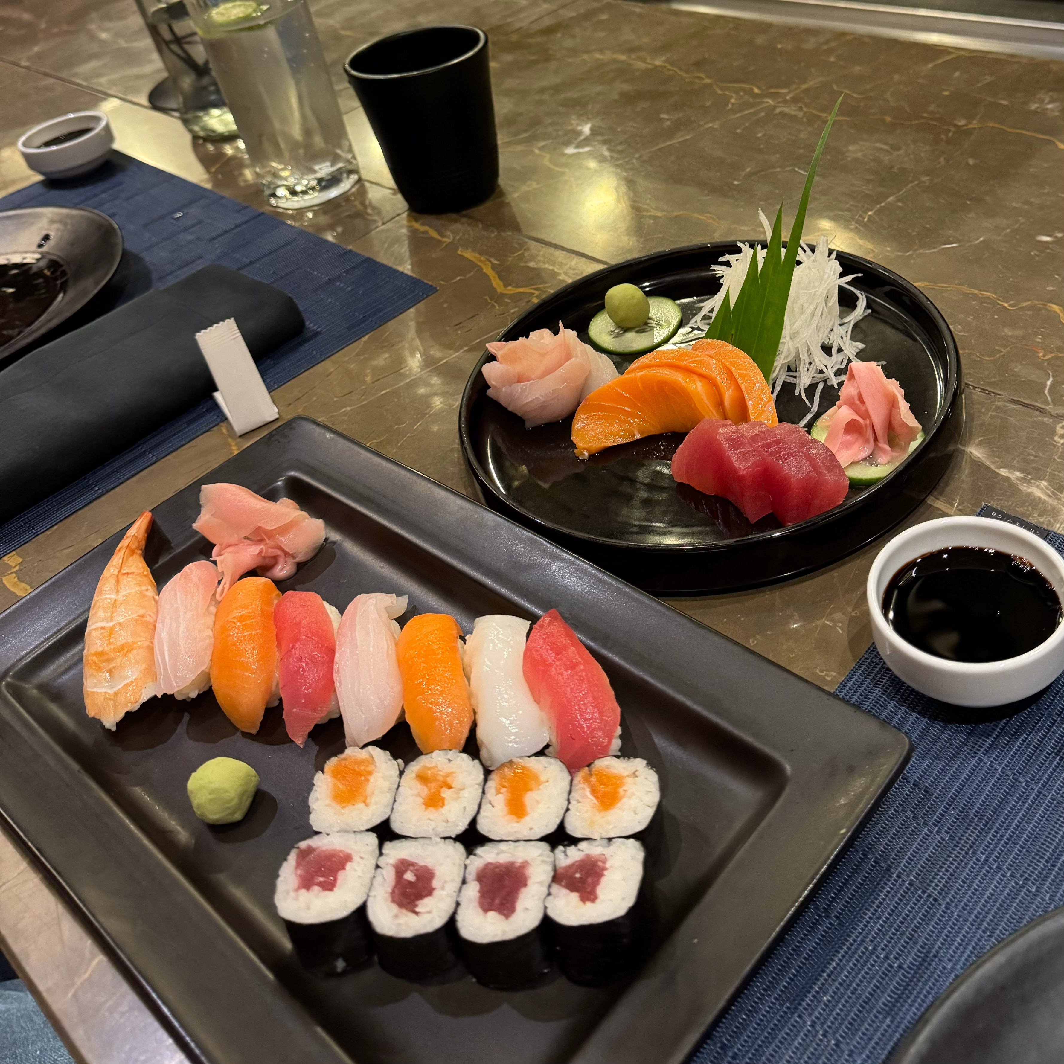 We retired for a bit of a chill in the room. One downside of the hotel is that our room faces the pool and the covers band is quite loud. I’m hoping they will ‘pull up stumps’ soon. We had dinner at one of the hotel restaurants called Tenku which served authentic Japanese food, which was very good. Sushi is always better when it tastes fresh. I had a green tea cake that they called Tiramisu, while Deb had some ice cream for dessert. It was a good meal and not to heavy after our late afternoon cake indulgence.