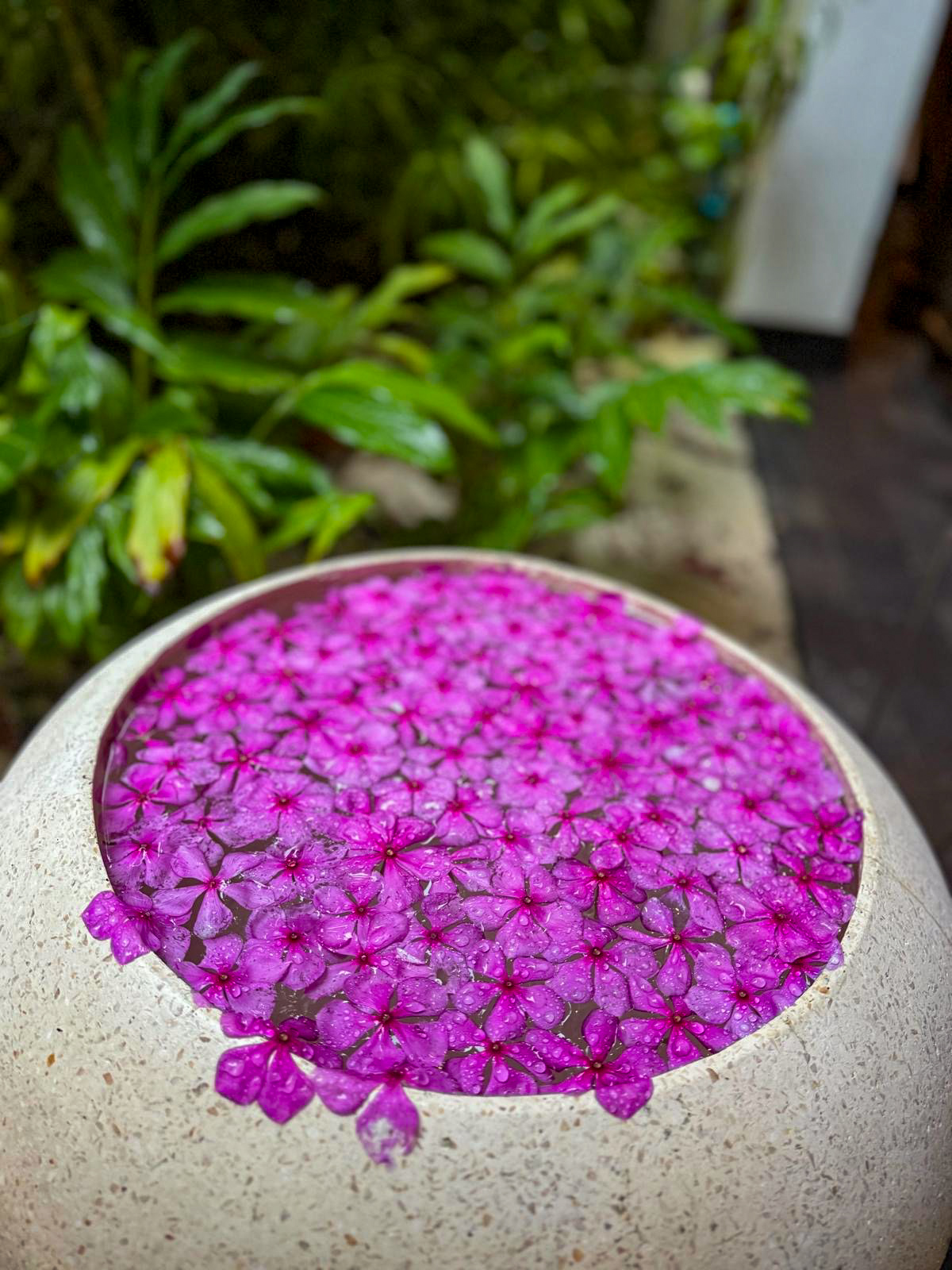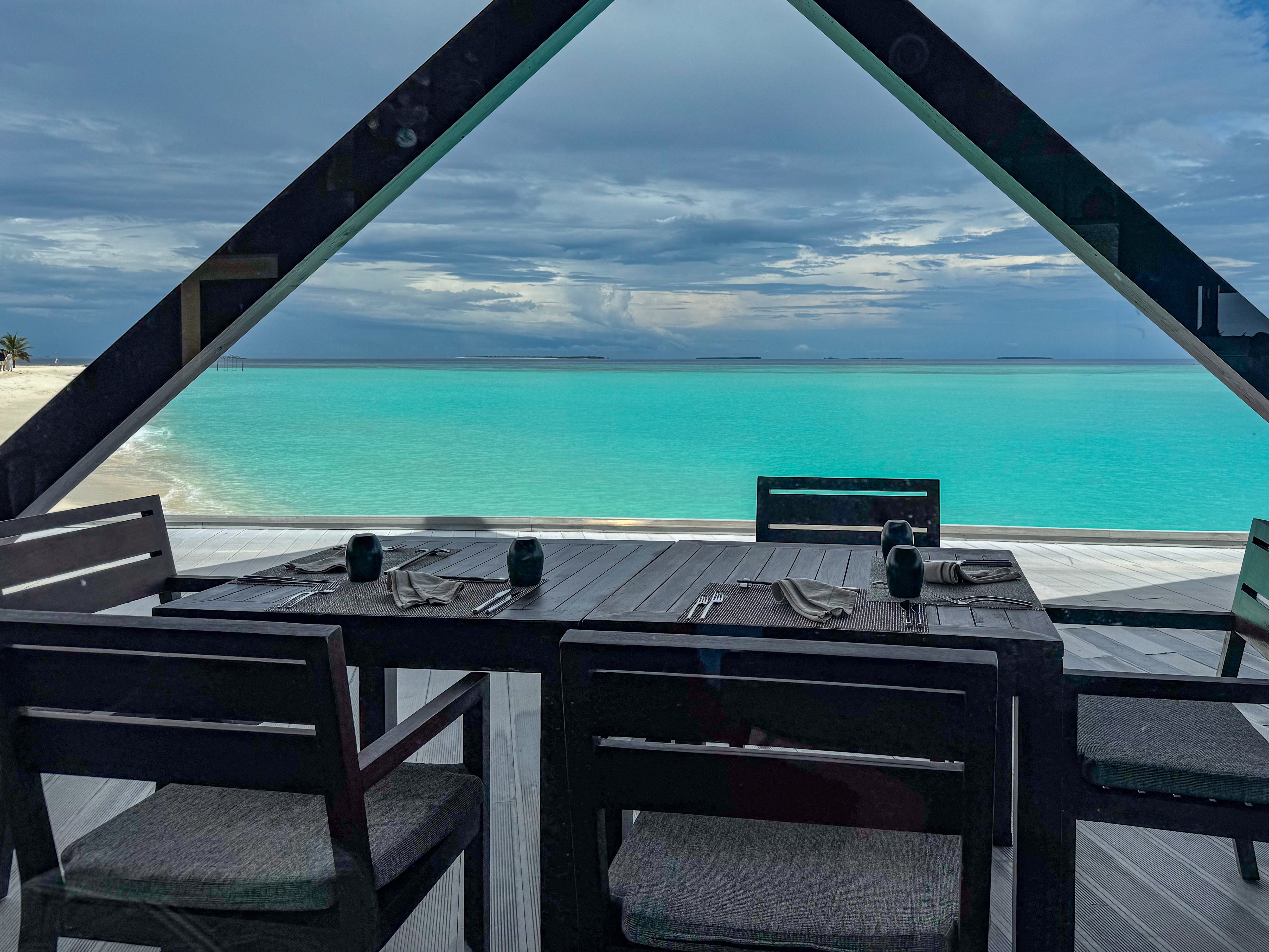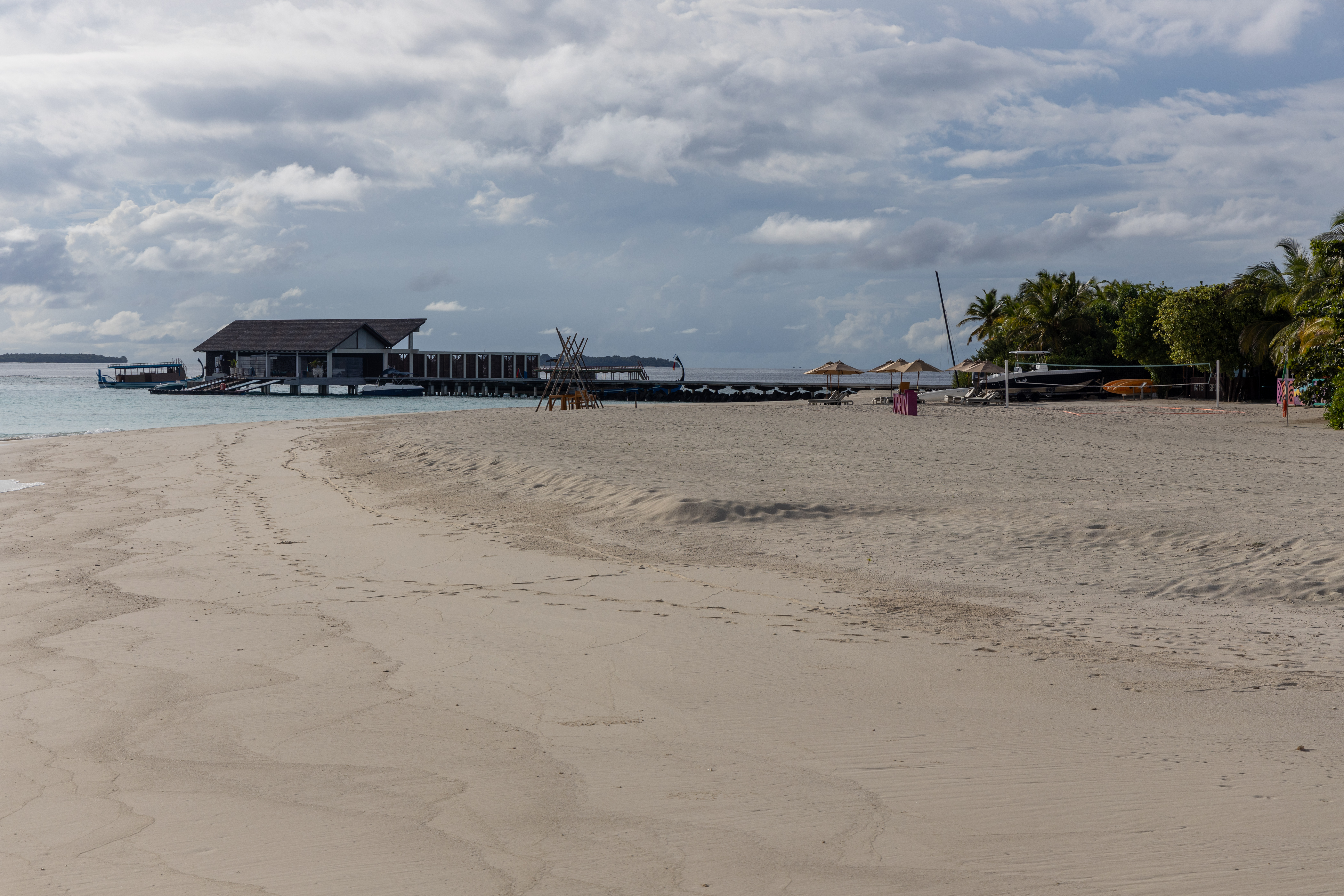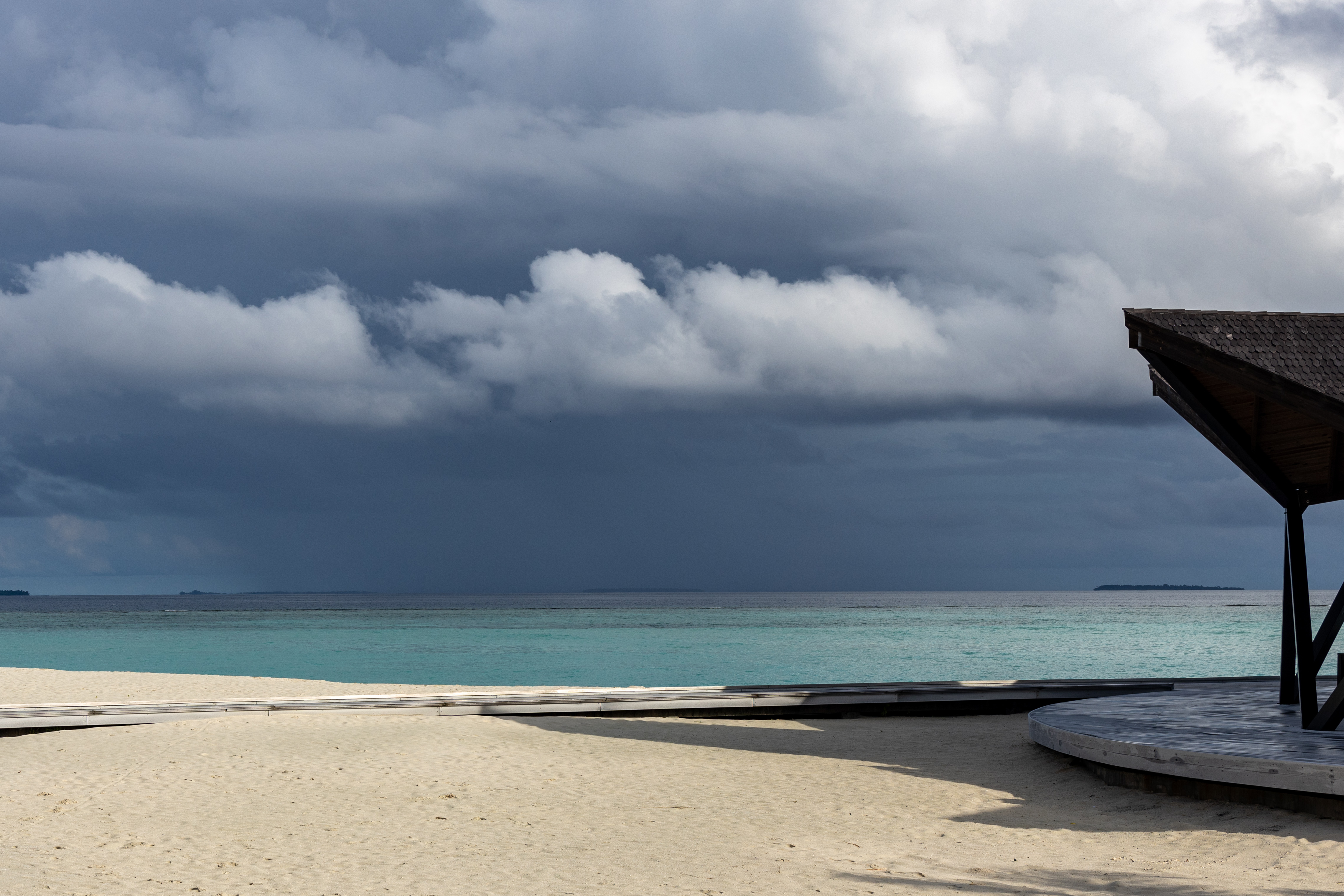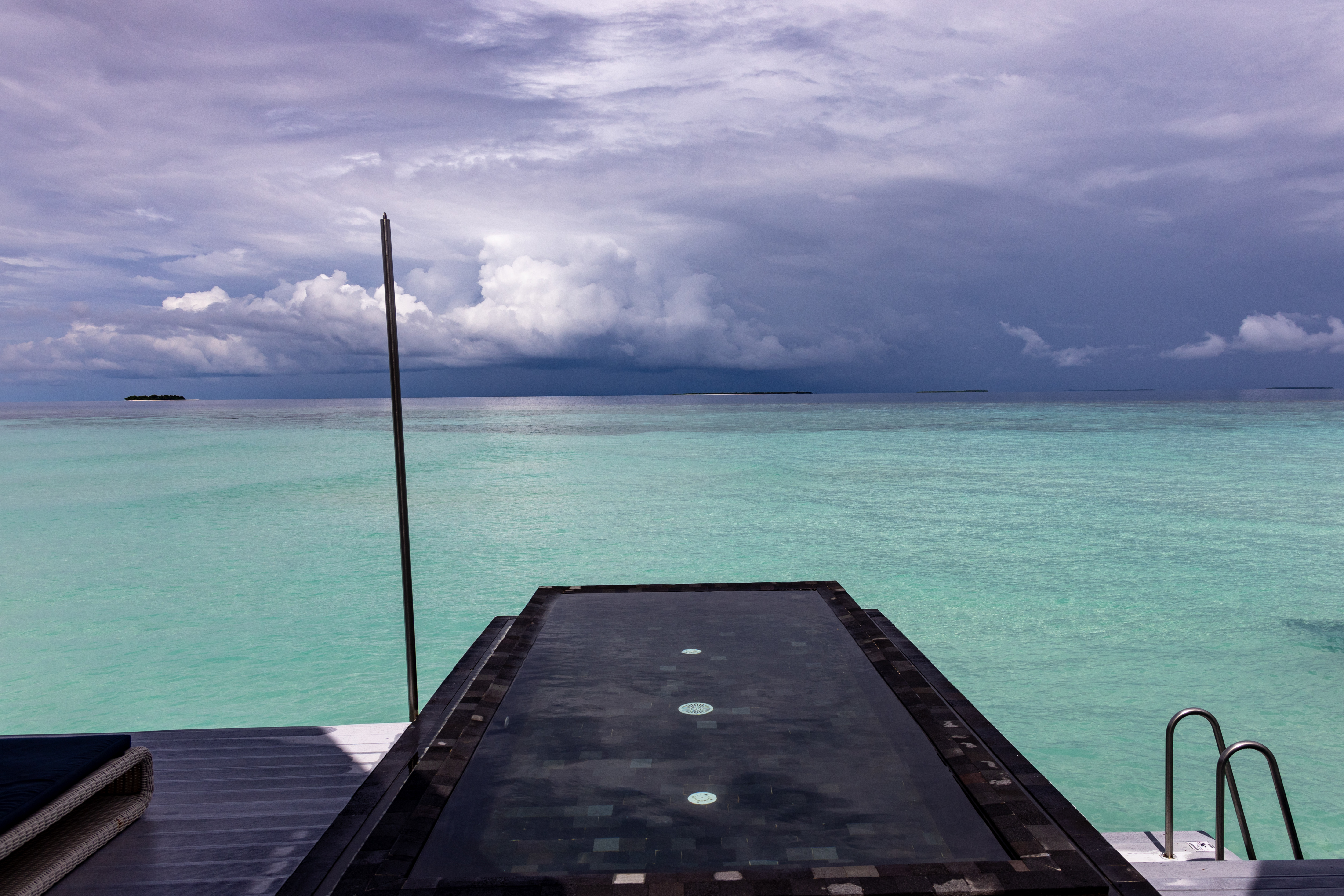 We returned to the villa and decided there would be little harm in getting into the balcony pool. It was a little cool so we climbed down the ladder into the warm Indian Ocean. The water was clear and there is nice sand underfoot. There’s space under the balcony where we were able to escape the rain and enjoy the warm ocean.
