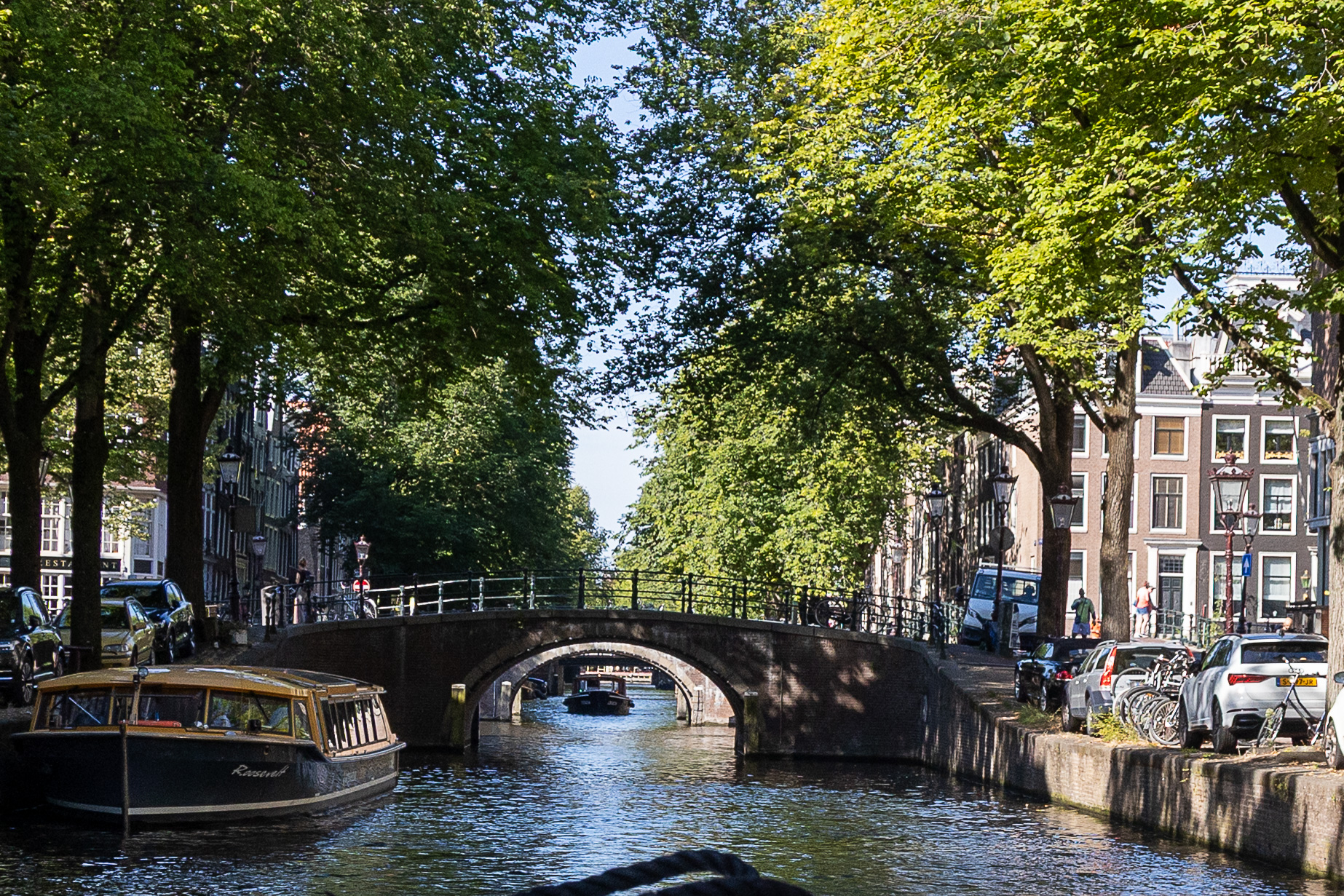 Another short blog today, as we spent a lot of it travelling. It was a slightly early start for us this morning as we needed to be showered, breakfasted and ready by 8 AM to catch a bus to Amsterdam, which was a bit over an hour up the motorway from Rotterdam. It was a cracking day here today, 25 degrees and blue skies. The Amsterdam trip was always going to be a quick detour, so we arrived and walked through Ruyk’s museum and then boarded a canal boat. There seemed to be a lot more modern buildings here since our last visit, but the combination of bridges, bicycles and canals still has a magic feel to it. We toured the canals for an hour or so, returning to the starting point via the harbour.