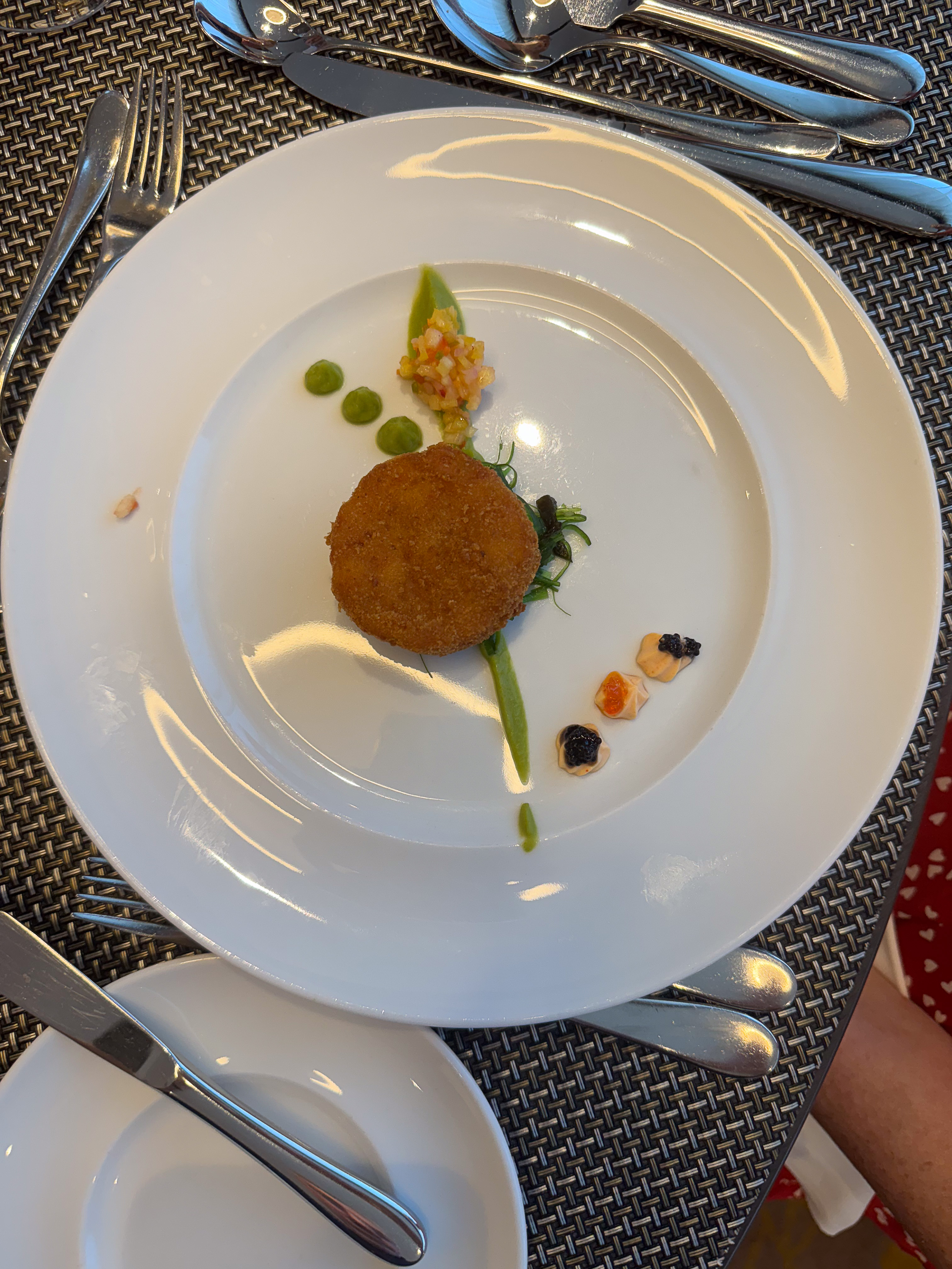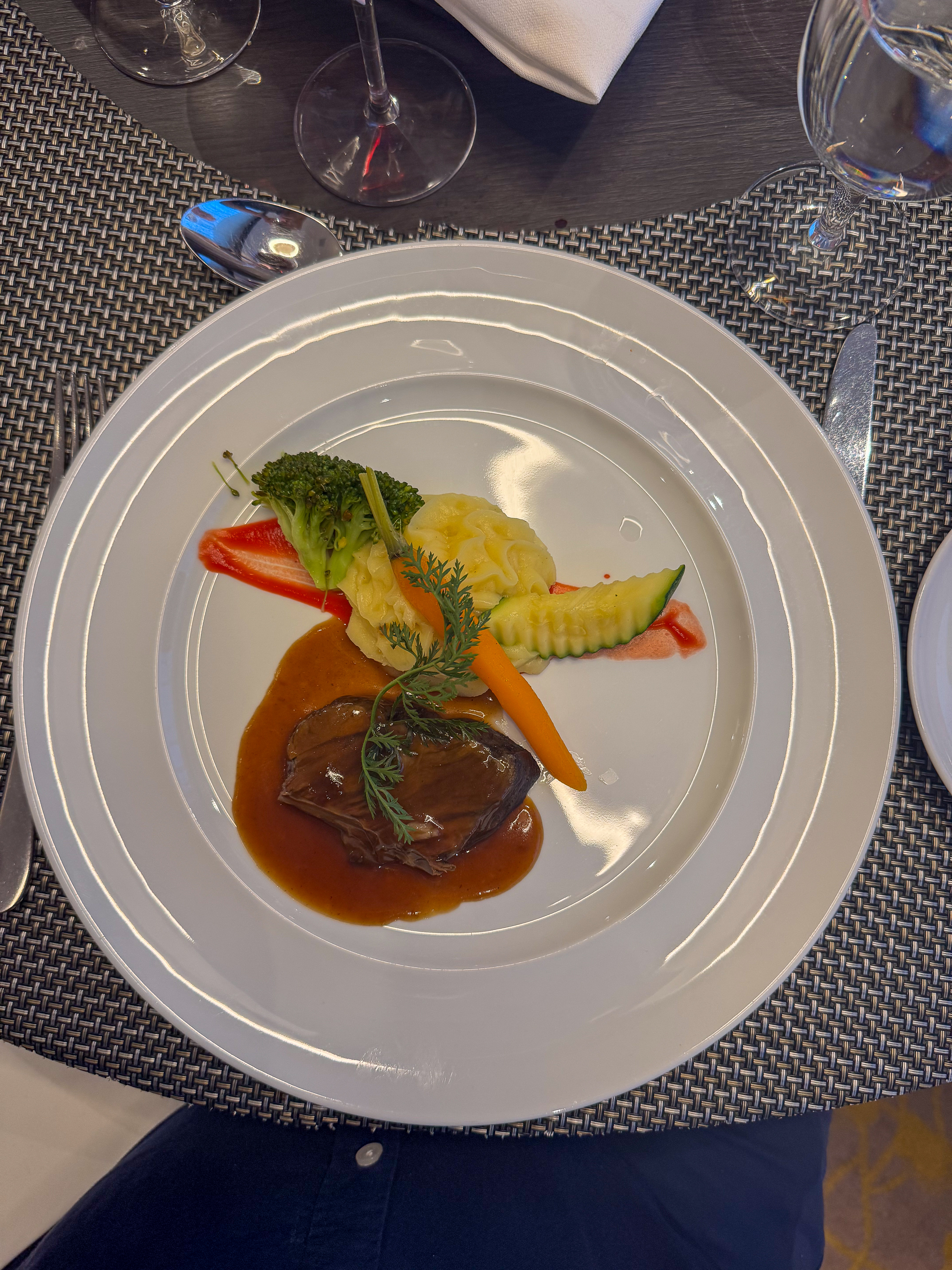 The afternoon and evening was spent on the boat sailing down the river. We will sail all night and arrive in Cologne in the morning. Dinner was another good meal starting with a seafood cake, followed with soup and a slow cooked beef rib.