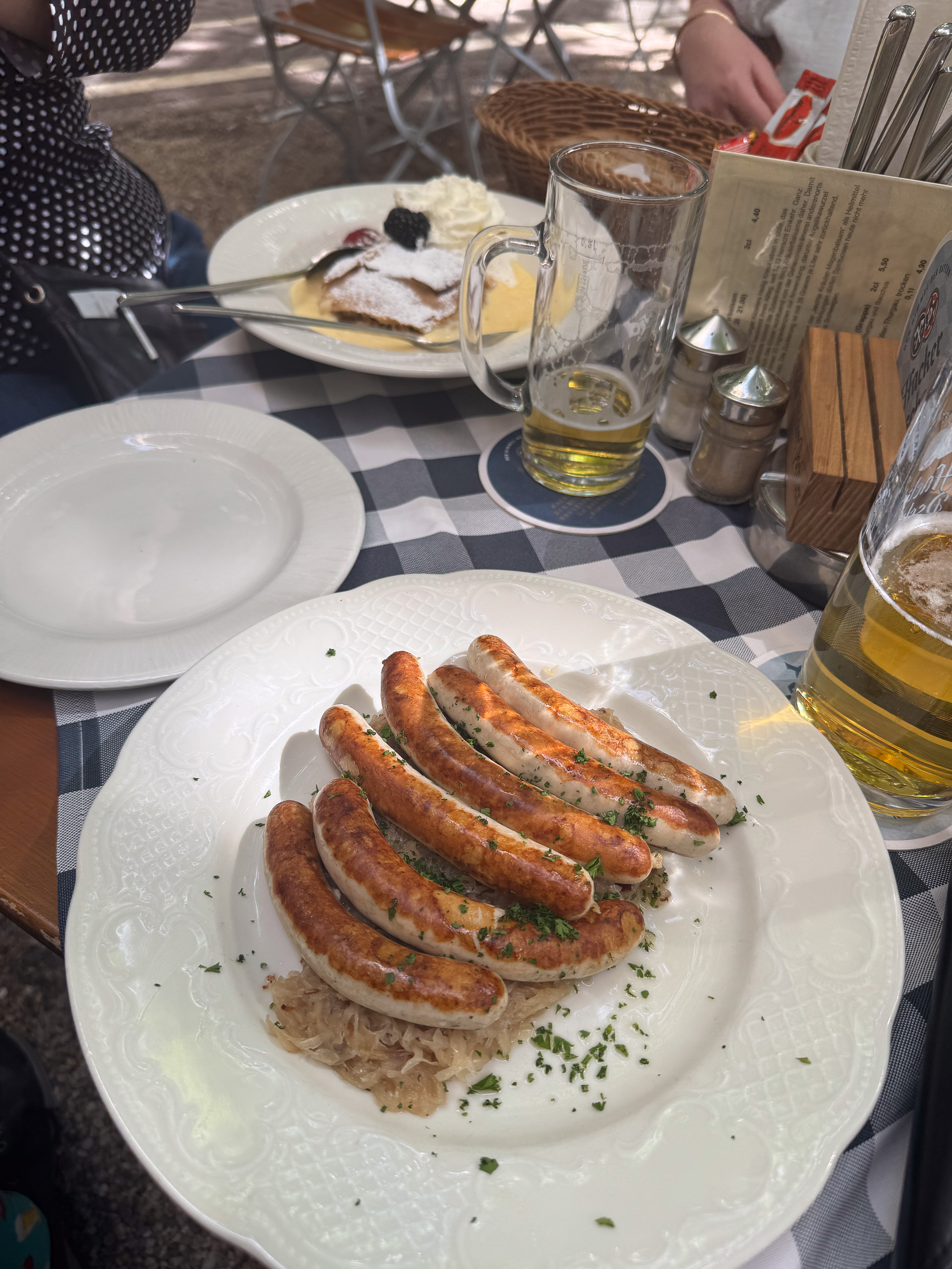 Regensburg is a city in eastern Bavaria situated at the Danube’s northernmost point. With more than 150,000 inhabitants, Regensburg is the fourth largest city in the State of Bavaria. From its foundation as an imperial Roman river fort, the city has been the political, economic and cultural centre of the surrounding region. It is famous for it’s stone bridge that is the oldest bridge still in use in Germany, dating back some 900 years. We had about 2 hours to explore, so we located the cathedral and a few other sights before finding a beer garden to enjoy a bratwurst followed by an apple strudel.