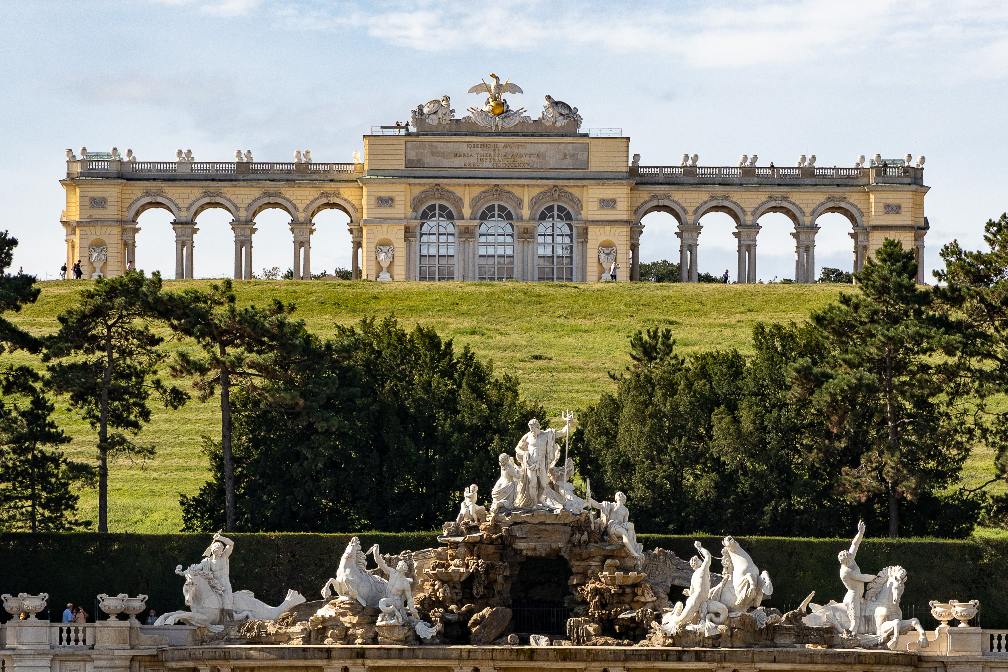 This morning, we wrapped up our time to Vienna with a visit to the Schönbrunn Palace which was the main summer residence of the Habsburg rulers. It is a 1,441-room Baroque palace and is one of the most important architectural, cultural, and historic monuments in the country. The history of the palace and its vast gardens spans over 300 years, reflecting the changing tastes, interests, and aspirations of successive Habsburg monarchs. It owes much of its design elements to Versailles in France.
