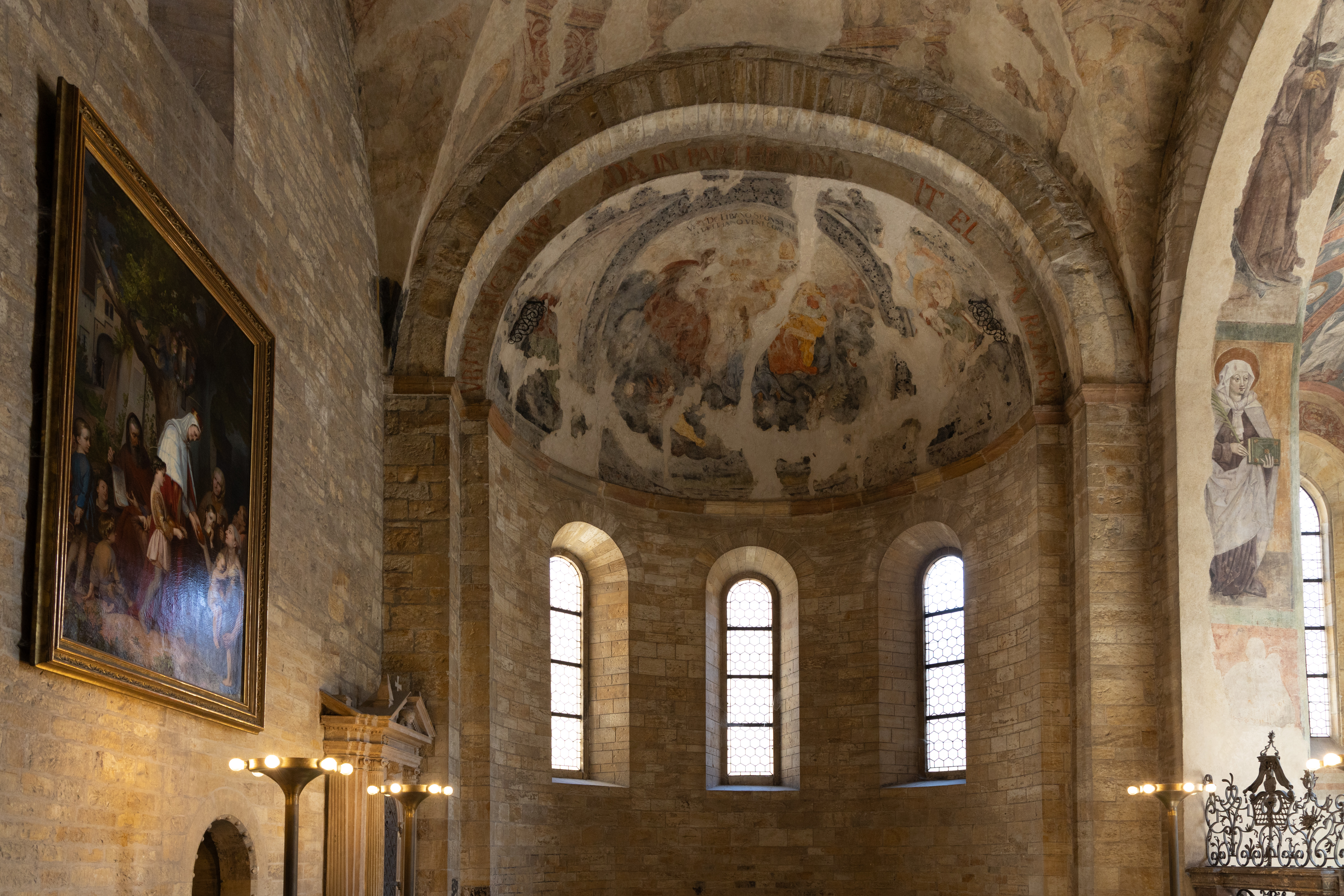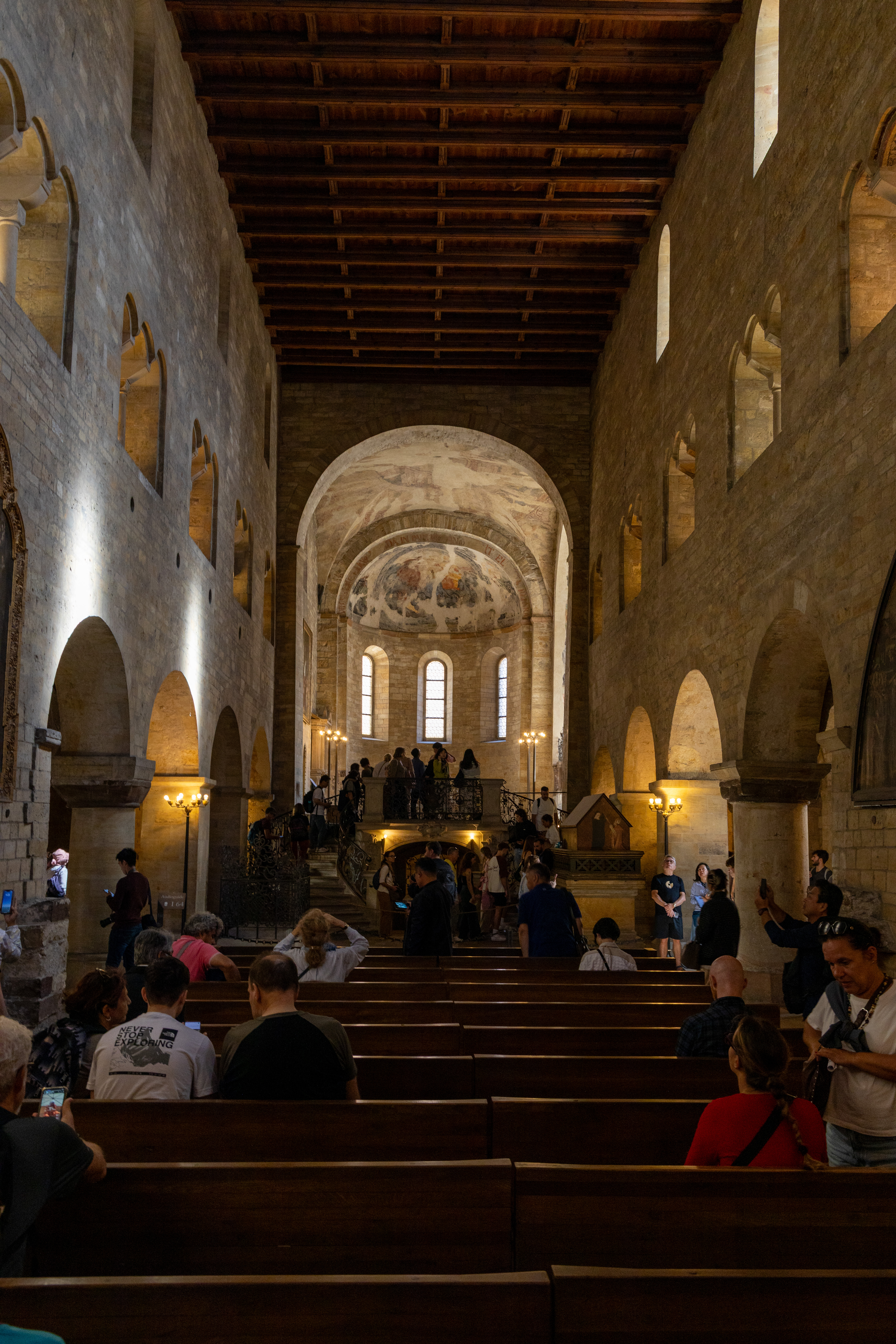 With the ceremony over we entered the palace grounds. The palace itself was being renovated inside so most of our focus was on the two churches that dominate the grounds. The first we looked at was St Georges Basilica, which is the oldest surviving church building within Prague Castle, and was founded by Vratislaus I of Bohemia in 920. It is dedicated to Saint George and is primarily Romanesque in style and quite austere.