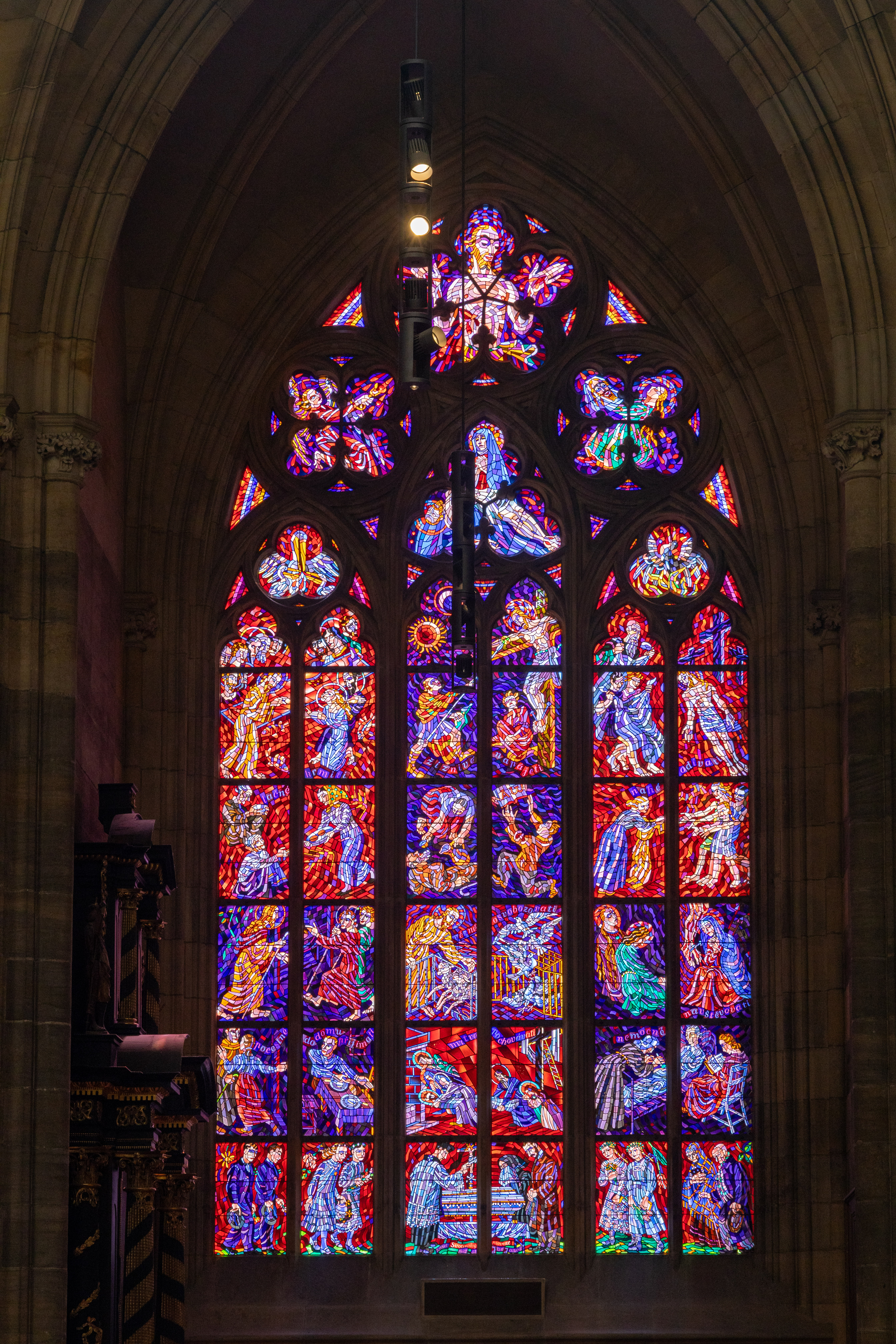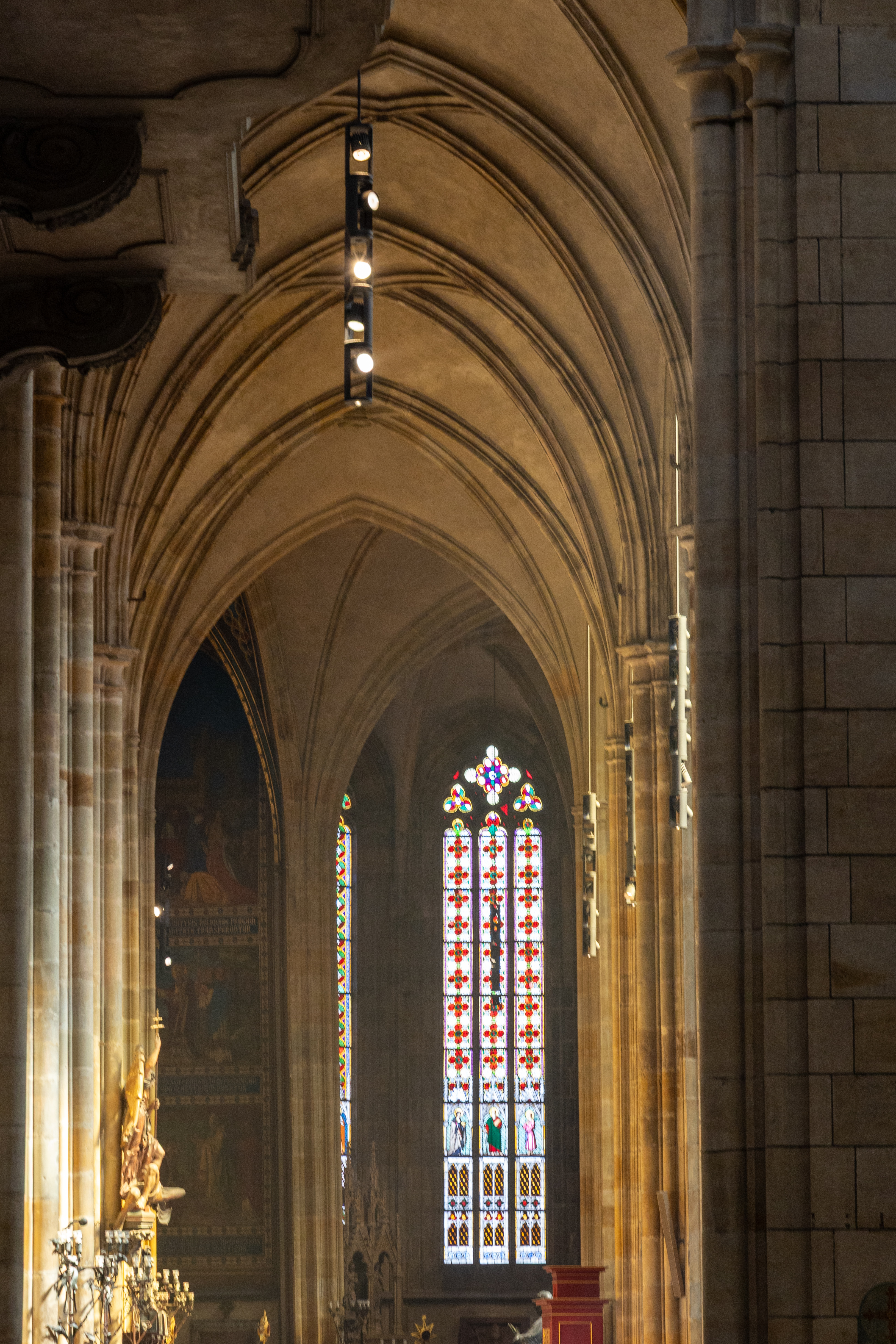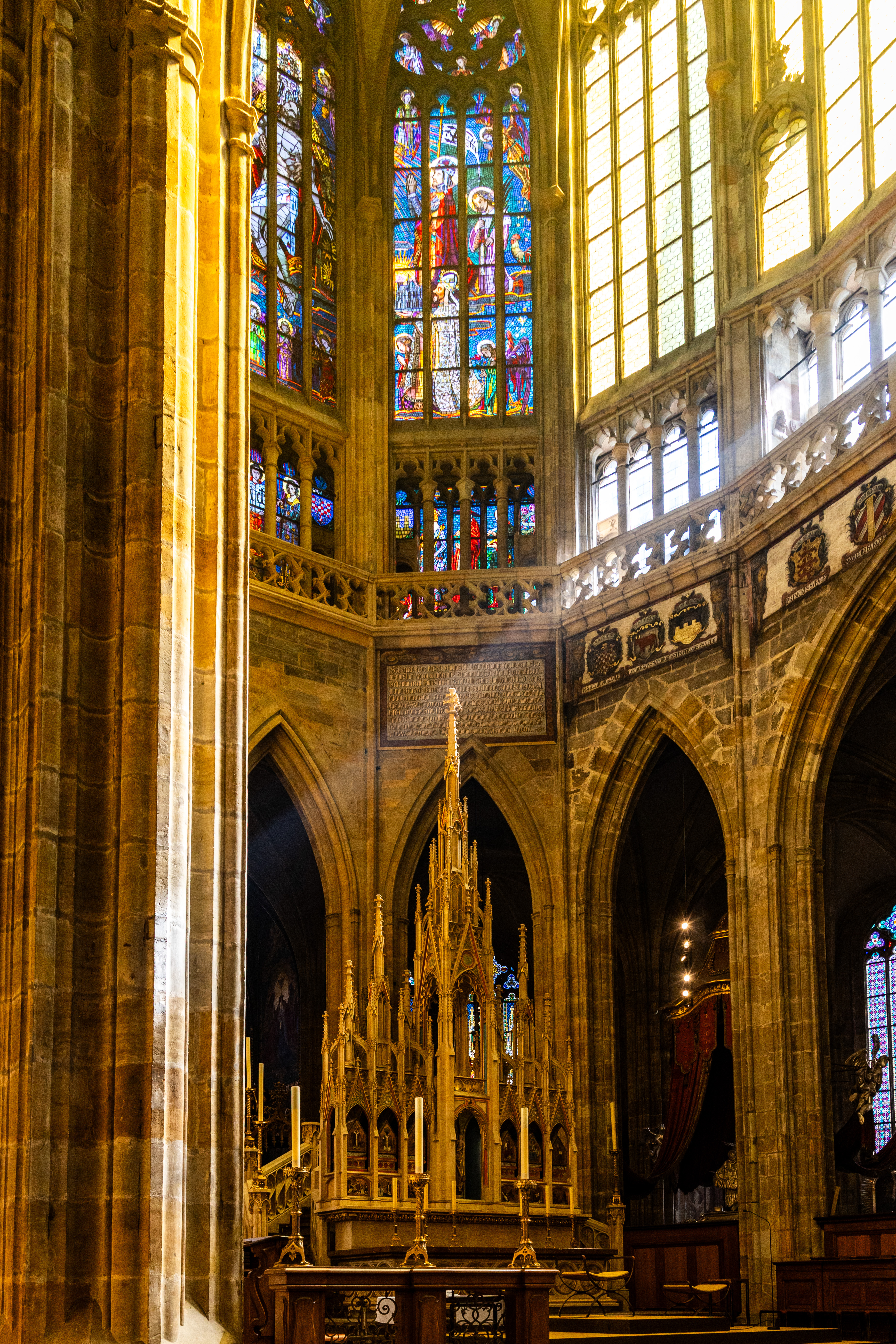 The other cathedral here is the St Vitus Cathedral which is the seat of the Archbishop of Prague. This cathedral is a prominent example of Gothic architecture, and is the largest and most important church in the country. Located within Prague Castle and containing the tombs of many Bohemian kings and Holy Roman Emperors, the cathedral is under the ownership of the Czech government as part of the Prague Castle complex. We had to queue to enter once Sunday services were complete, but the wait was definitely worth it. The stained glass is incredible and there are many stories told in the artworks. Construction of the present-day Gothic cathedral began in 1344, when the seat of Prague was elevated to an archbishop.